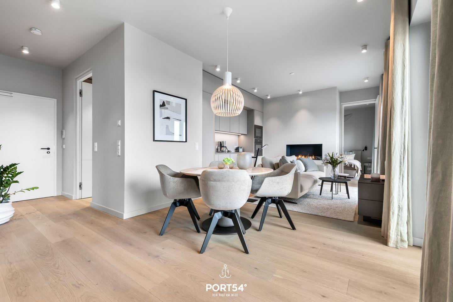 Das Herzstück der Wohnung ist der offene Wohnbereich, der mit einer hochwertigen SieMatic Küche und einem stilvollen Essbereich ausgestattet ist. Hier kannst du kulinarische Köstlichkeiten zubereiten und gemeinsam am Esstisch genießen. Der gemütliche Wohnbereich mit Sofa, Smart TV und Ethanol Kamin lädt dazu ein, entspannte Abende zu verbringen. Genieße die Wärme des Kamins und lass den Tag Revue passieren.