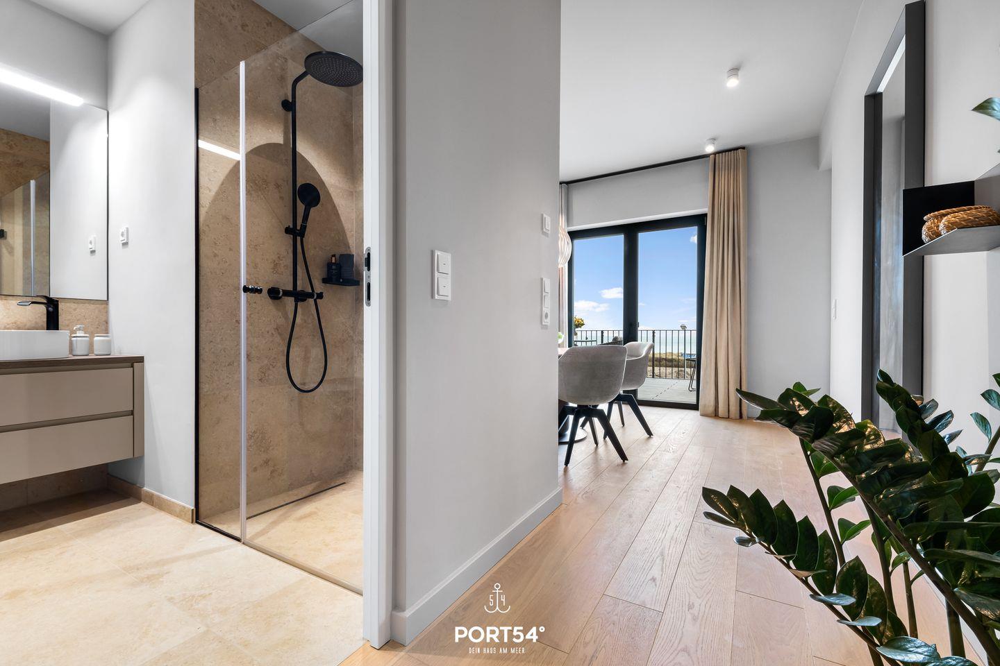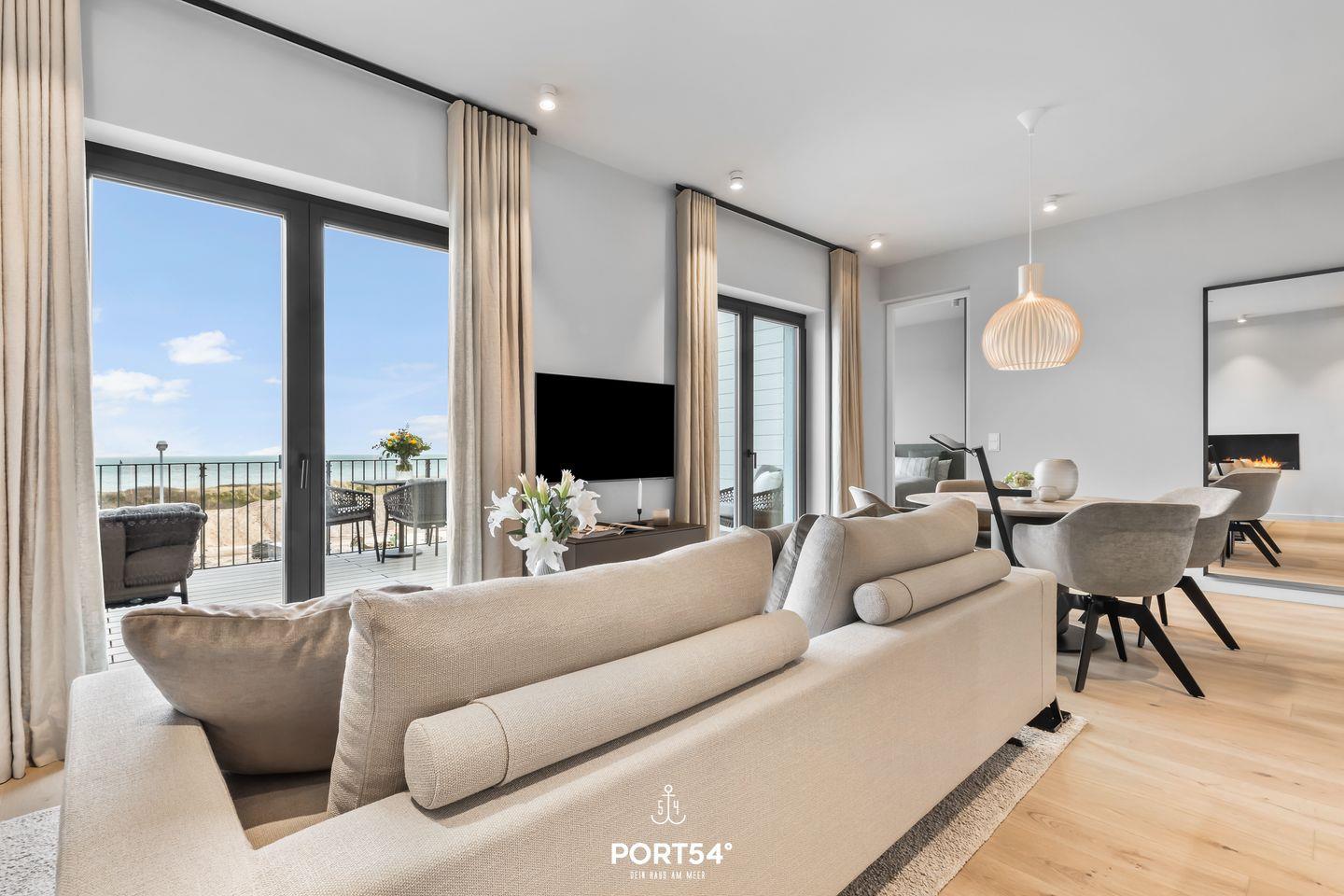 Luxuriöse Waterfront Suite in List auf Sylt mit Meerblick, Dachterrasse und Ethanol-Kamin für erholsamen Urlaub.
