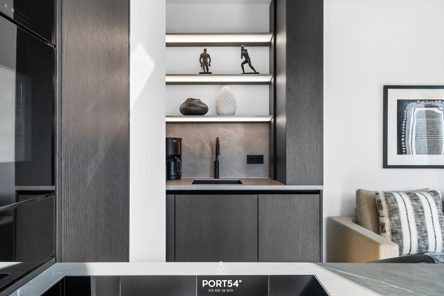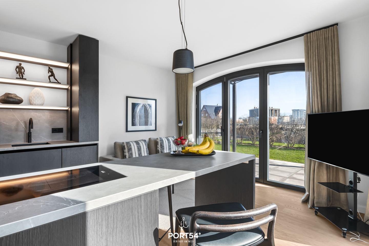 Die Harlem Hill Suite ist mit einem hellen und freundlichen Wohnzimmer ausgestattet, das nahtlos in die offene SieMatic-Küche übergeht. Hier findest du alles, was du benötigst, um köstliche Mahlzeiten zuzubereiten: einen modernen Induktionsherd, einen Backofen, eine Spülmaschine sowie einen Kühlschrank mit Gefrierfach. Die Küche ist außerdem mit einem Quooker ausgestattet, damit lässt sich problemlos heißes Wasser sowie Sprudelwasser erzeugen. Das elegante Ambiente wird durch eine Fußbodenheizung unterstrichen, die für angenehme Wärme sorgt.