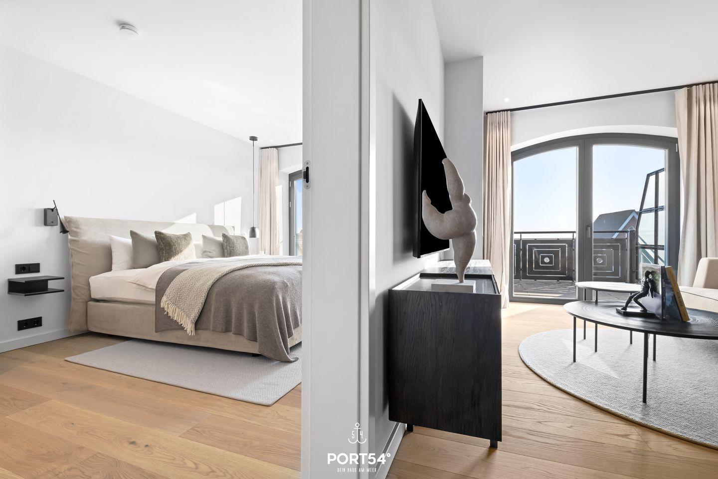 Luxuriöse East Village Suite in List auf Sylt mit Balkon, Ethanol-Kamin und Infrarotdusche, nur 500 m vom Strand entfernt.