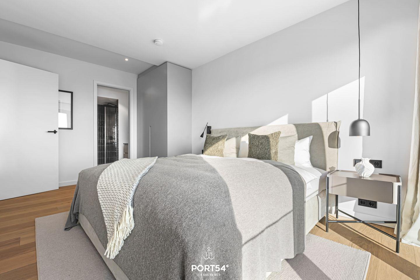 Das moderne Schlafzimmer bietet dir mit einem 180x200cm großen Doppelbett optimalen Schlafkomfort.