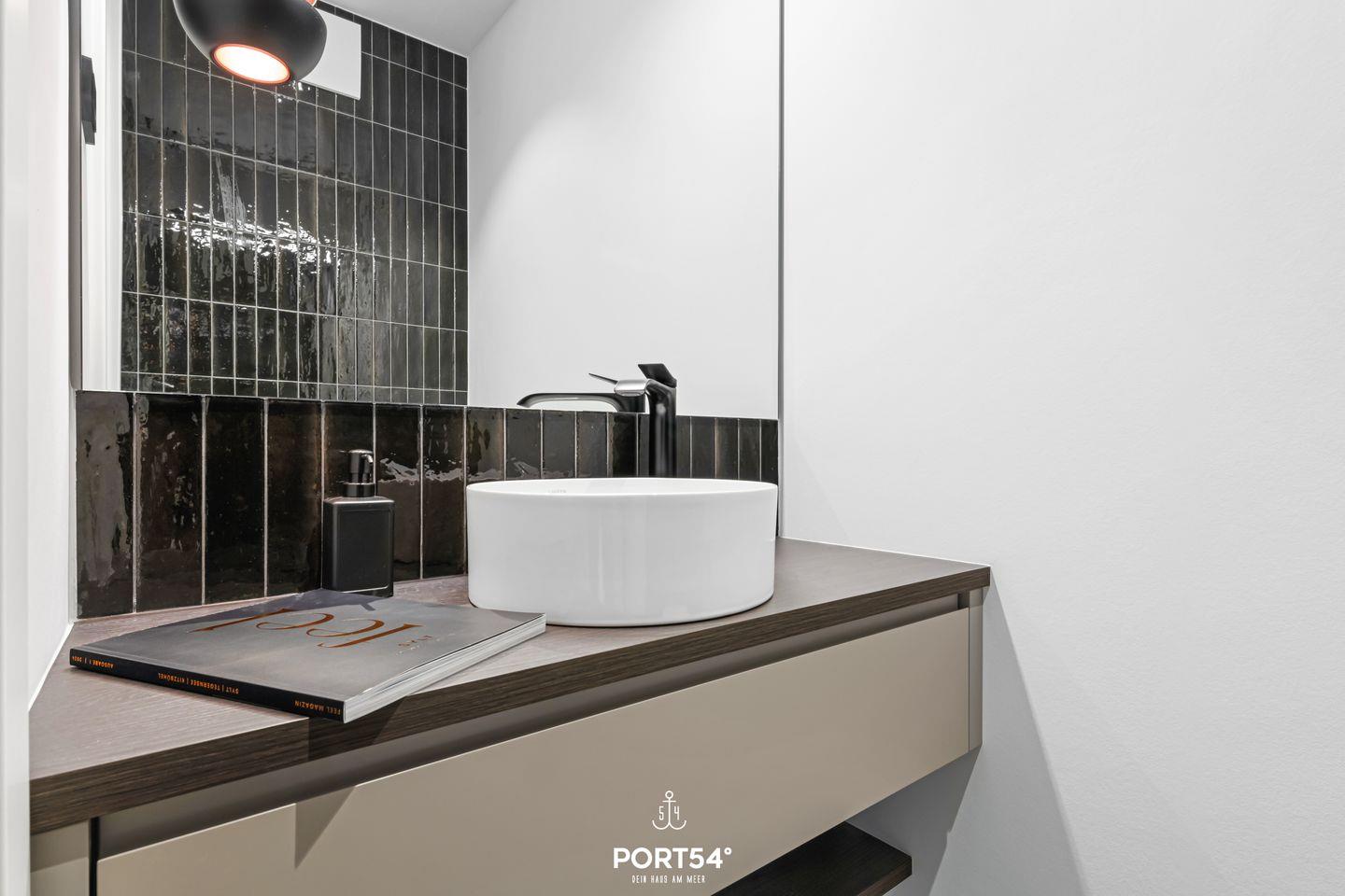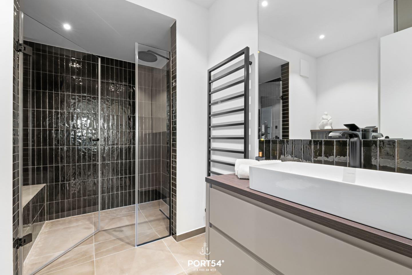 Das Badezimmer ist mit einer bodengleichen Dusche ausgestattet und bietet dir höchsten Komfort und einen Hauch von Luxus. Hier kannst du dich perfekt entspannen, bevor du die Schönheit von Sylt erkundest. In der Dusche ist eine Infrarotsauna integriert, perfekt, um nach einem Spaziergang zu entspannen. Genauso kannst du es dir natürlich vor dem Ethanol-Kamin gemütlich machen. Außerdem bietet ein separates Gäste-WC zusätzlichen Komfort.