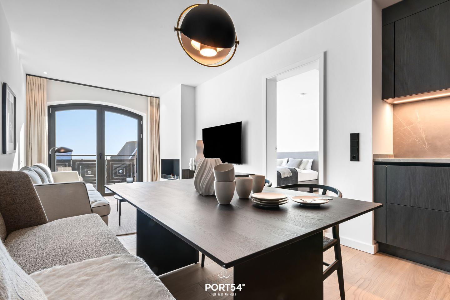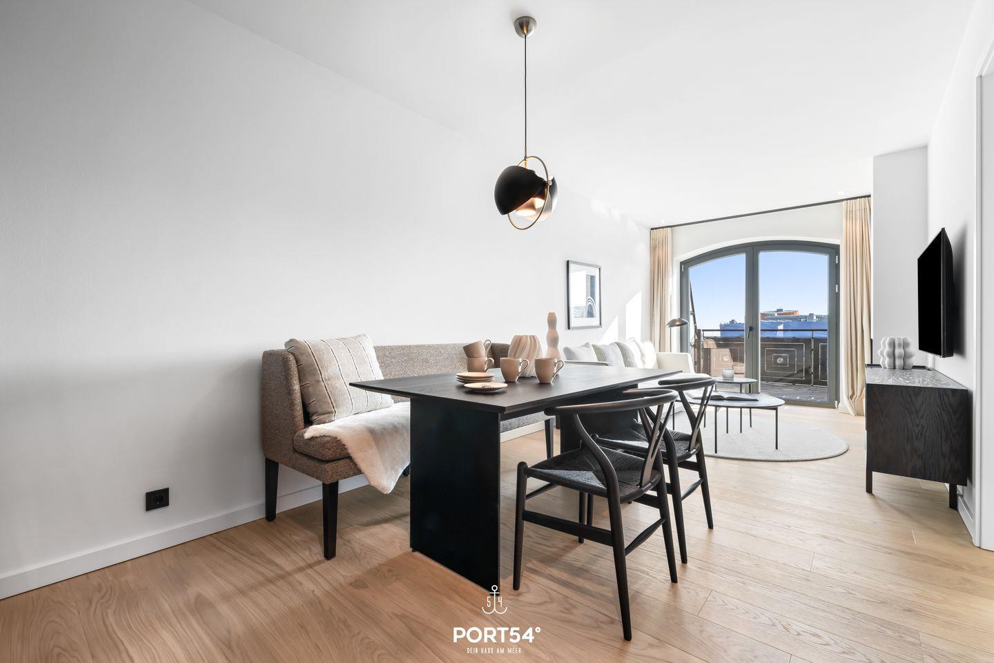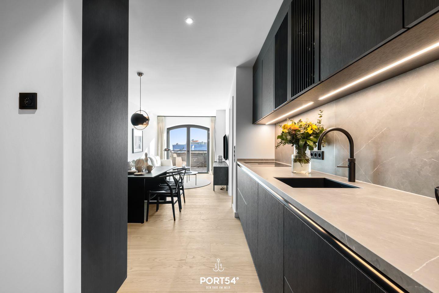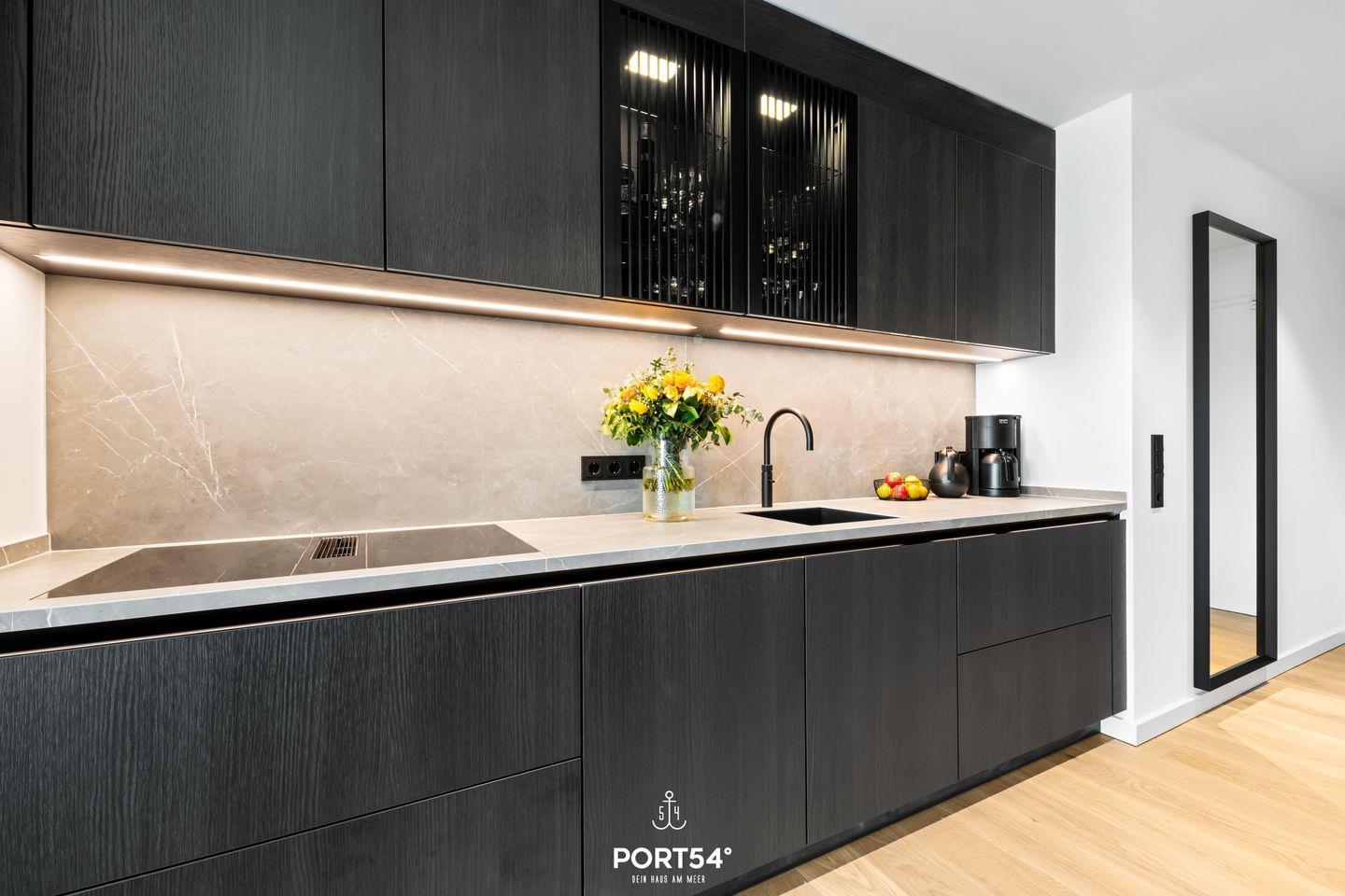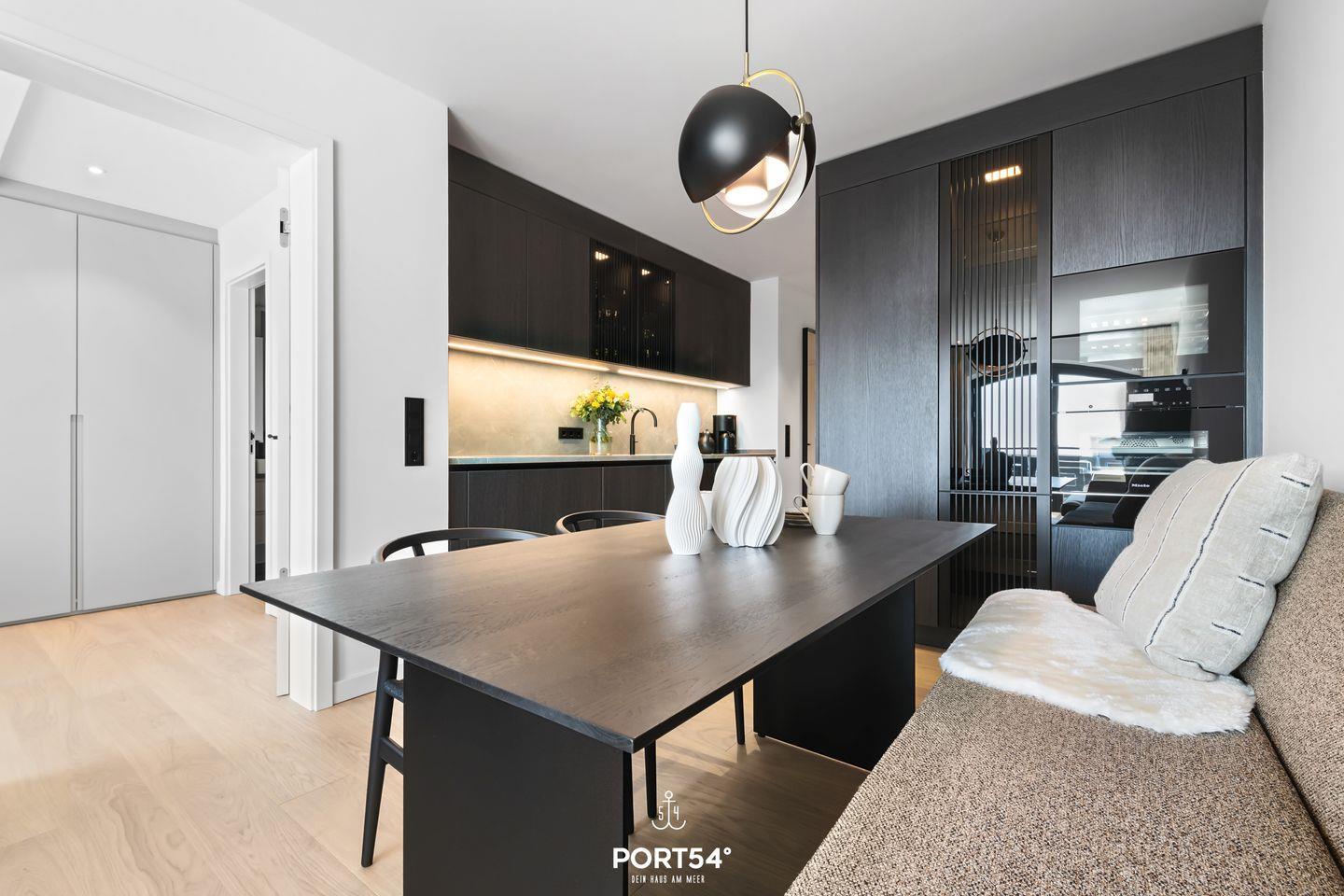Die Ferienwohnung befindet sich im zweiten Stock und ist bequem über einen Aufzug erreichbar. Ein großzügiger Wohnraum mit einer offenen Küche von von SieMatic lädt dazu ein, kulinarische Köstlichkeiten zuzubereiten und gesellige Abende zu verbringen. Die hochmodernen Küchengeräte, einschließlich einer Spülmaschine, Elektrobackofen und einem Quokker, damit lässt sich problemlos heißes Wasser, sowie Sprudelwasser erzeugen, lassen keine Wünsche offen und ermöglichen es Ihnen, sich wie zu Hause zu fühlen. Der Esstisch bietet genügend Platz, um gemeinsam zu speisen und schöne Erinnerungen zu schaffen.