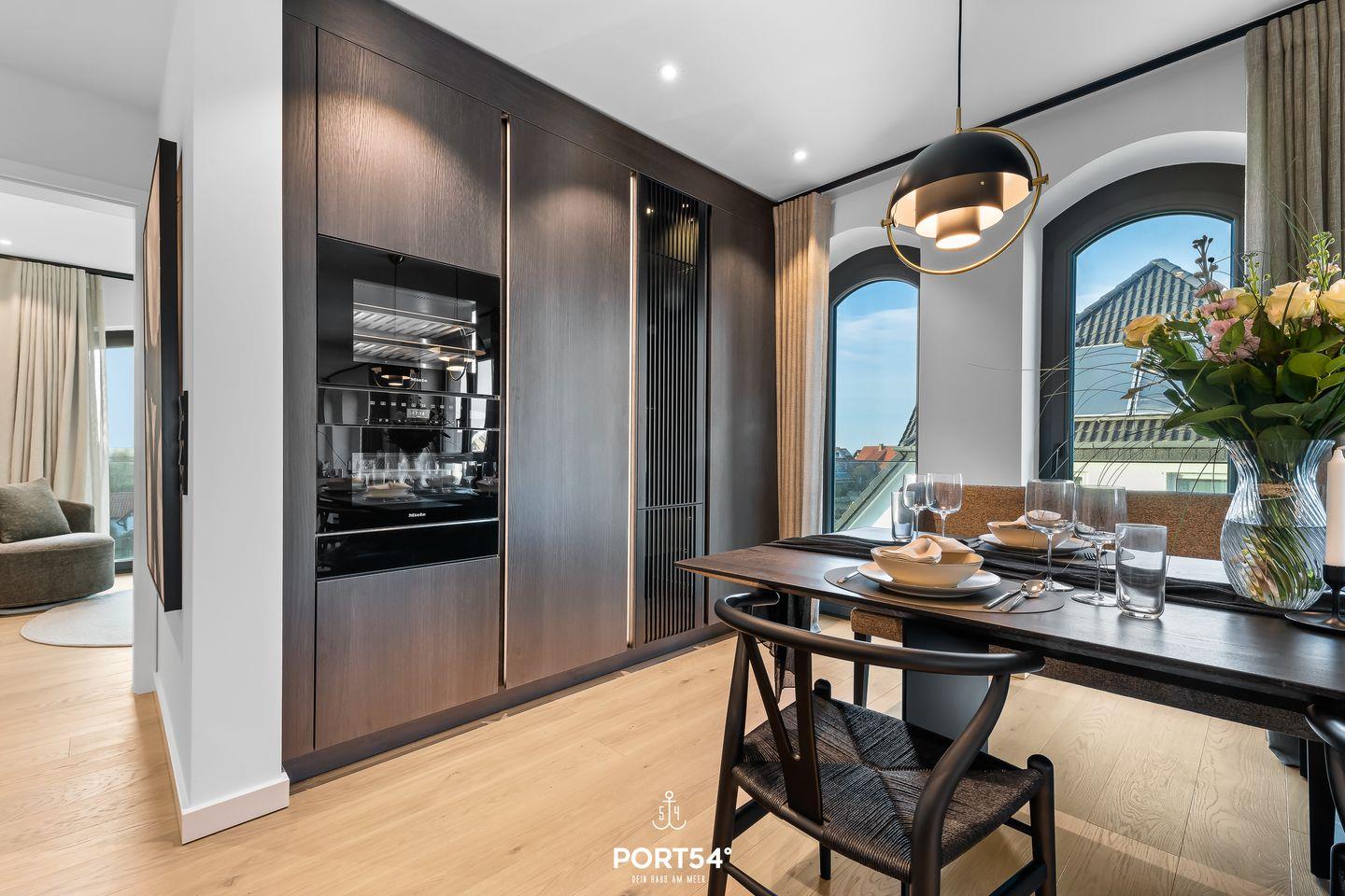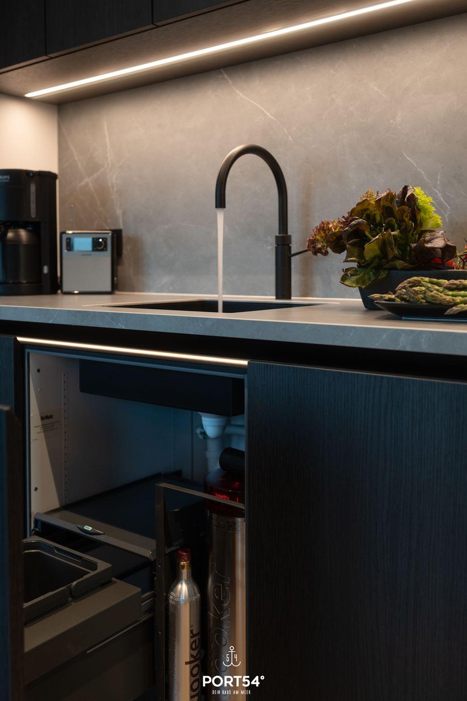Die Yorkville Suite begeistert mit ihrer einladenden Atmosphäre und einem durchdachten Raumkonzept. Sie verfügt über ein komfortables Schlafzimmer, ein elegantes Badezimmer mit bodengleicher Dusche und eine offene Küche, die zum lichtdurchfluteten Wohnbereich übergeht. In der voll ausgestatteten Küche von SieMatic stehen dir moderne Geräte zur Verfügung, darunter ein Induktionsherd, Geschirrspüler, Backofen und Kühlschrank mit Gefrierfach. Hier kannst du deine kulinarischen Fähigkeiten entfalten und gemeinsam ein köstliches Frühstück oder Abendessen zubereiten. Die Küche ist außerdem mit einem Quooker ausgestattet, sodass du problemlos heißes Wasser sowie Sprudelwasser erzeugen kannst.