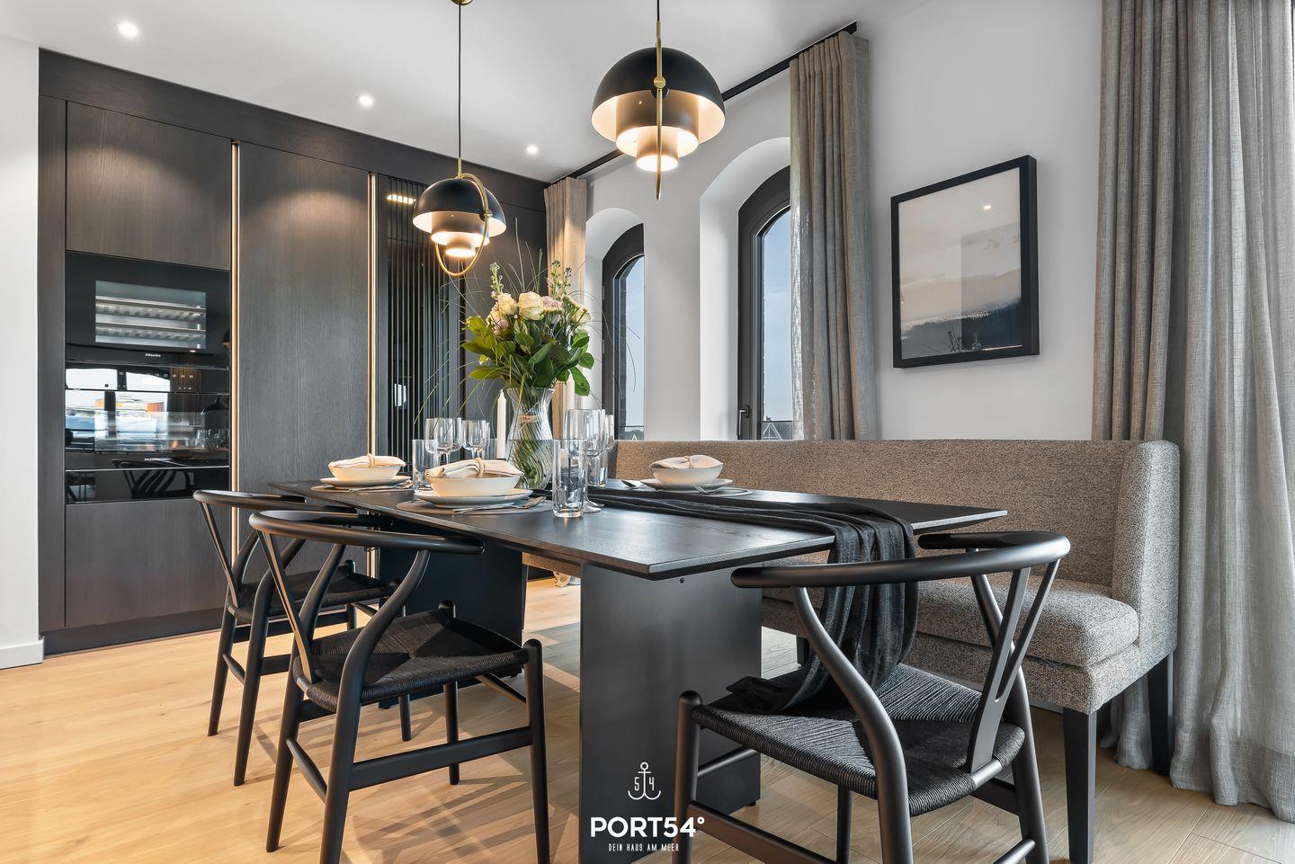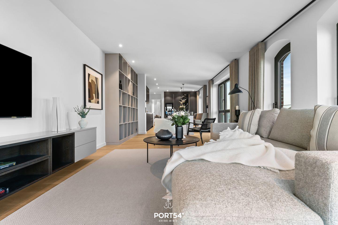 Viele Möbel der hochwertigen Einrichtung stammen aus dem Hause der Bornhold Manufaktur in Hamburg und wurden nach Maß angefertigt. Die 180x200 cm großen Betten von Schramm sowie Möbel von Marken wie ASCO, Jacaranda, Christine Knöcke und VIPP stehen für den Anspruch und die Qualität in dieser Ferienwohnung.