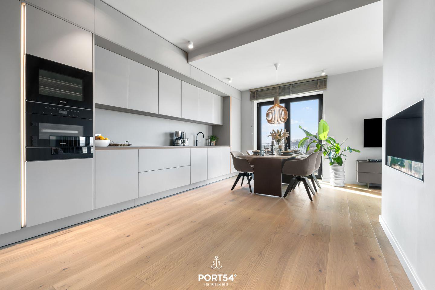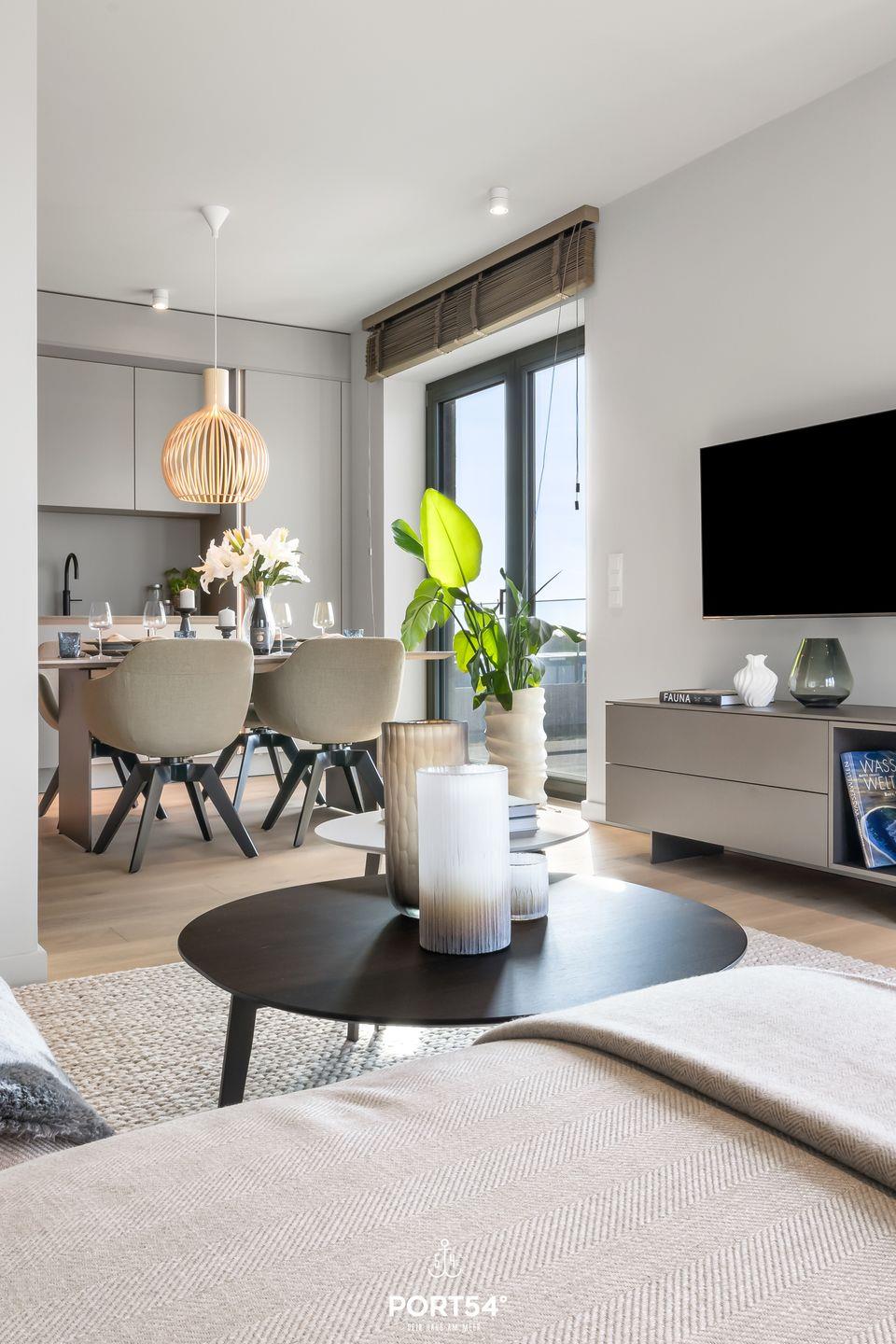 Mit zwei gemütlichen Schlafzimmern, eines ausgestattet mit einem Doppelboxspringbett der Marke Schramm (180x200cm), das andere mit einem Schlafsofa (160x200cm), einem stilvollen Wohnzimmer und einer offenen Küche erlebst du hier ein harmonisches Wohngefühl. Die offenen Räume schaffen eine einladende Atmosphäre, während der Essbereich ideal für gesellige Abende mit Freunden oder der Familie ist. Genieße die Vorteile einer tollen SieMatic Küche, die mit einem Induktionsherd, Backofen, Geschirrspüler und Weinkühlschrank ausgestattet ist. Außerdem findest du in der Küche einen Quooker, mit dem sich problemlos heißes Wasser sowie Sprudelwasser erzeugen lässt.