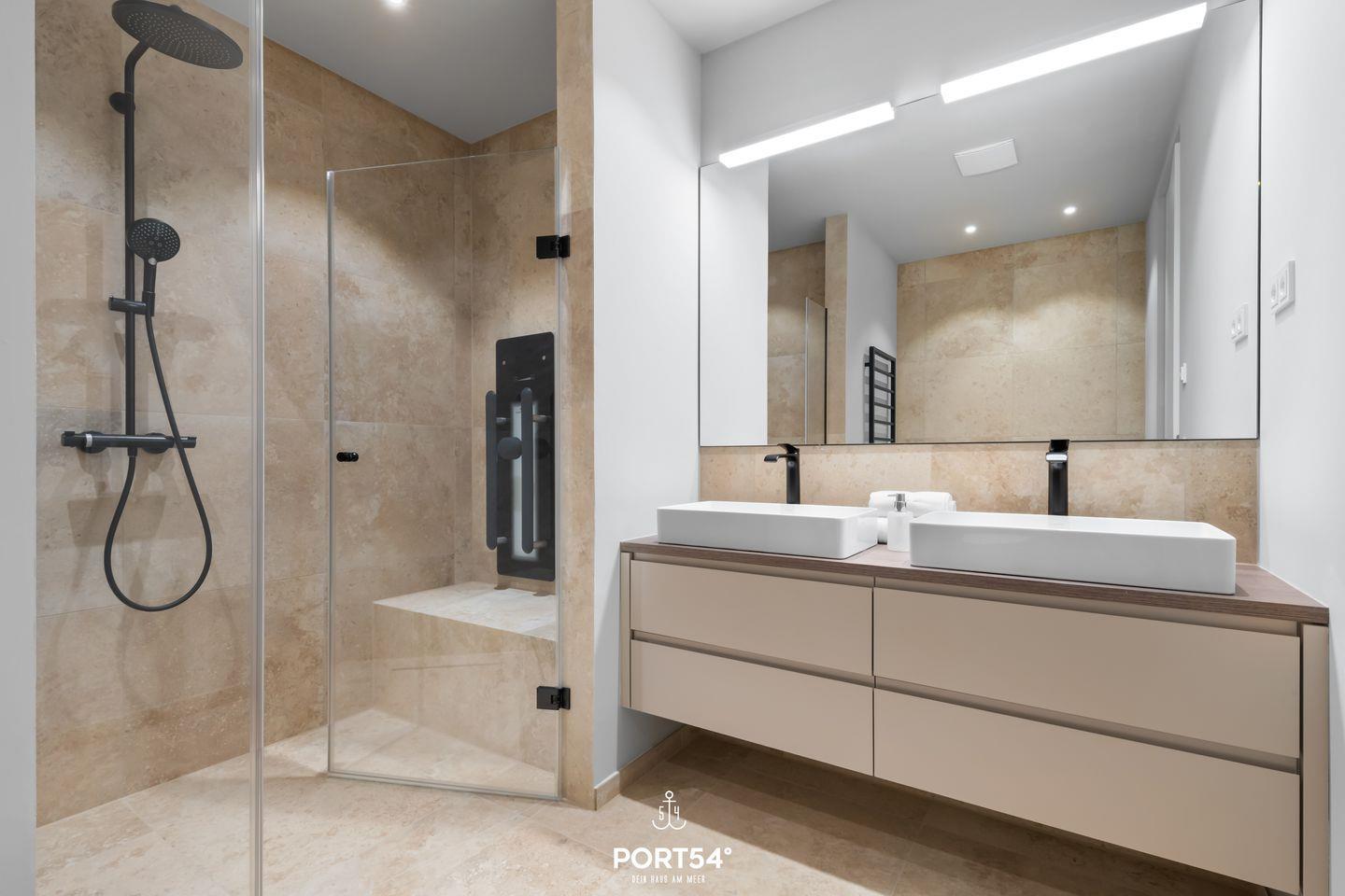 Die moderne Unterkunft umfasst zwei stilvoll eingerichtete Schlafzimmer mit je einem Doppelboxspringbett der Marke Schramm (180x200cm). Die große Fensterfront in der Suite sorgt für reichlich Tageslicht und einen einladenden Blick auf die Umgebung. Zur Ausstattung gehört ein luxuriöses Badezimmer mit bodengleicher Dusche und integriertem Infrarotpaneel, welche nach einem erlebnisreichen Tag für eine wohltuende Entspannung sorgt. Ein zusätzliches Gäste-WC sorgt für zusätzlichen Komfort, sowie ein Waschtrockner.