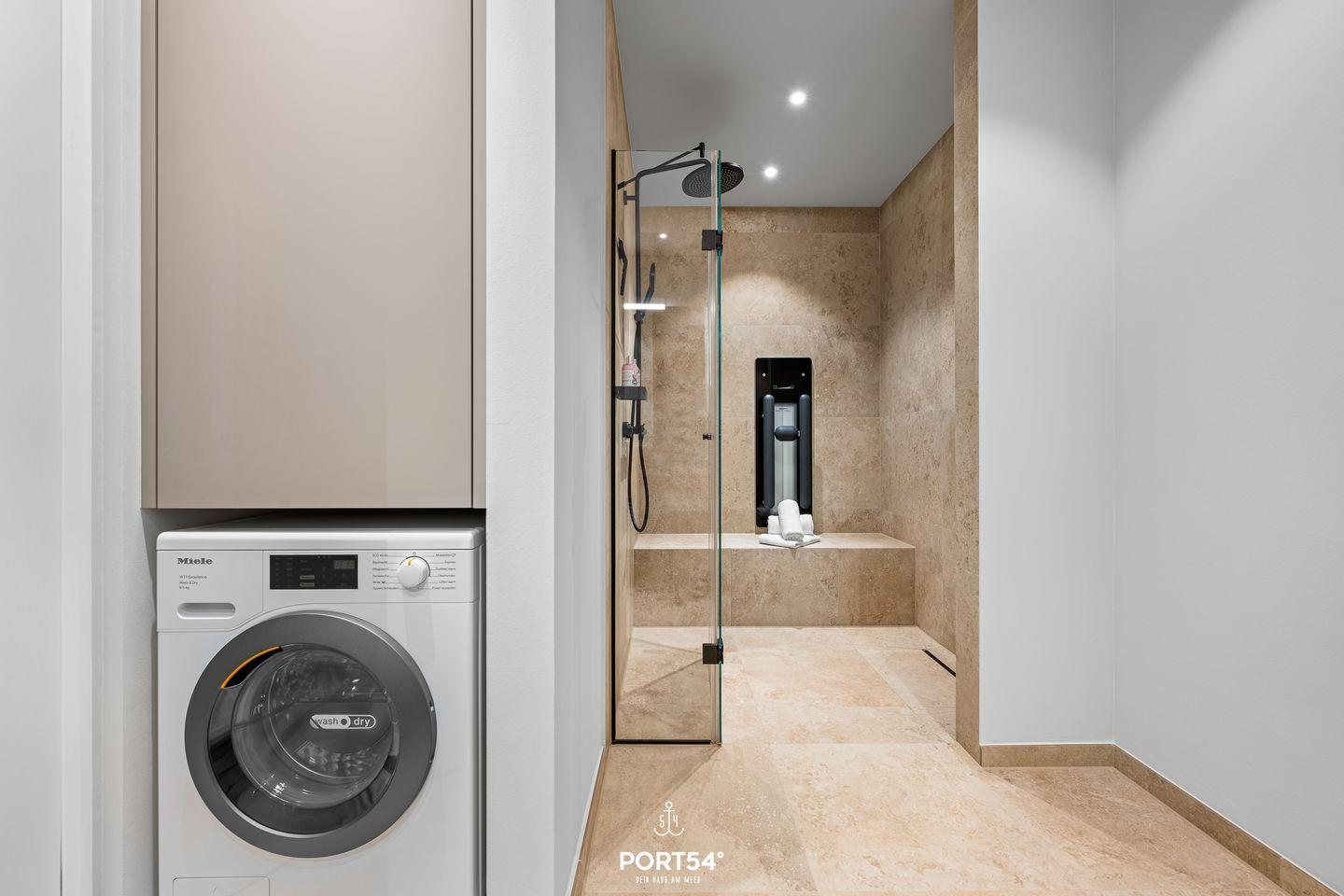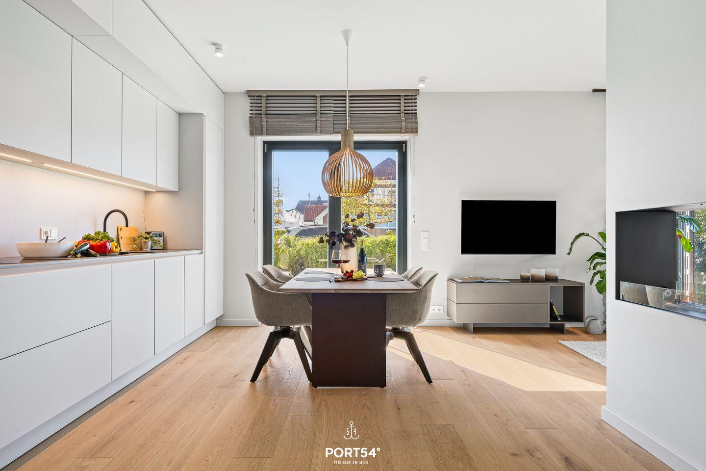 Mit zwei gemütlichen Schlafzimmern, eins ausgestattet mit einem Doppelboxspringbett der Marke Schramm (180x200cm), das andere mit einem Schlafsofa (160x200cm), einem stilvollen Wohnzimmer und einer offenen Küche erleben Sie hier ein harmonisches Wohngefühl. Die offenen Räume schaffen eine einladende Atmosphäre, während der Essbereich ideal für gesellige Abende mit Freunden oder der Familie ist. Genießen Sie die Vorteile einer tollen SieMatic Küche, die mit einem Induktionsherd, Backofen, Geschirrspüler und Weinkühlschrank ausgestattet ist. Außerdem finden Sie in der Küche einen Quooker, damit lässt sich problemlos heißes Wasser, sowie Sprudelwasser erzeugen.