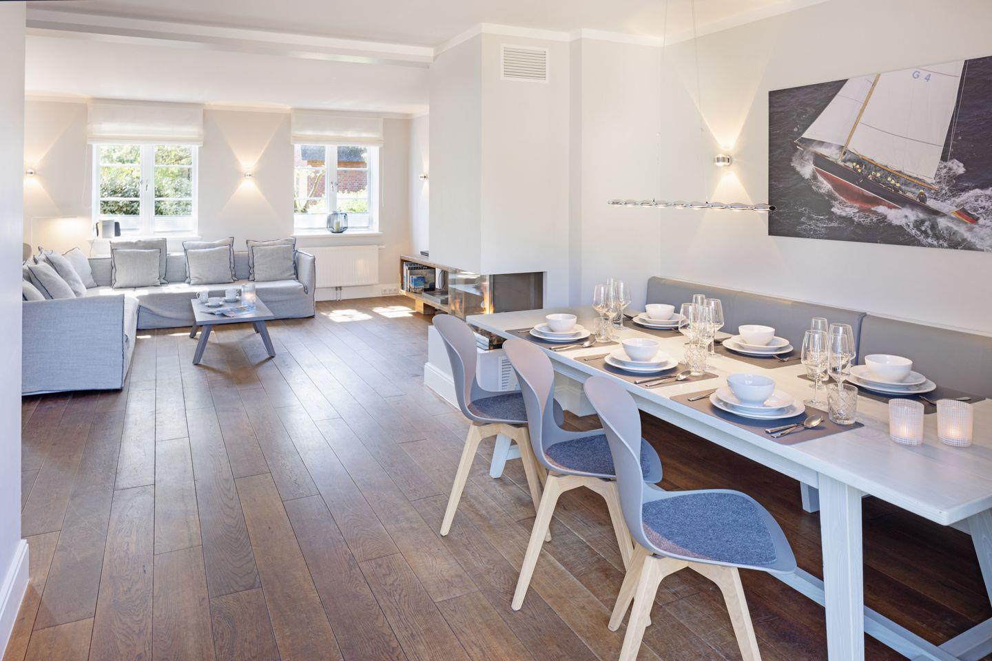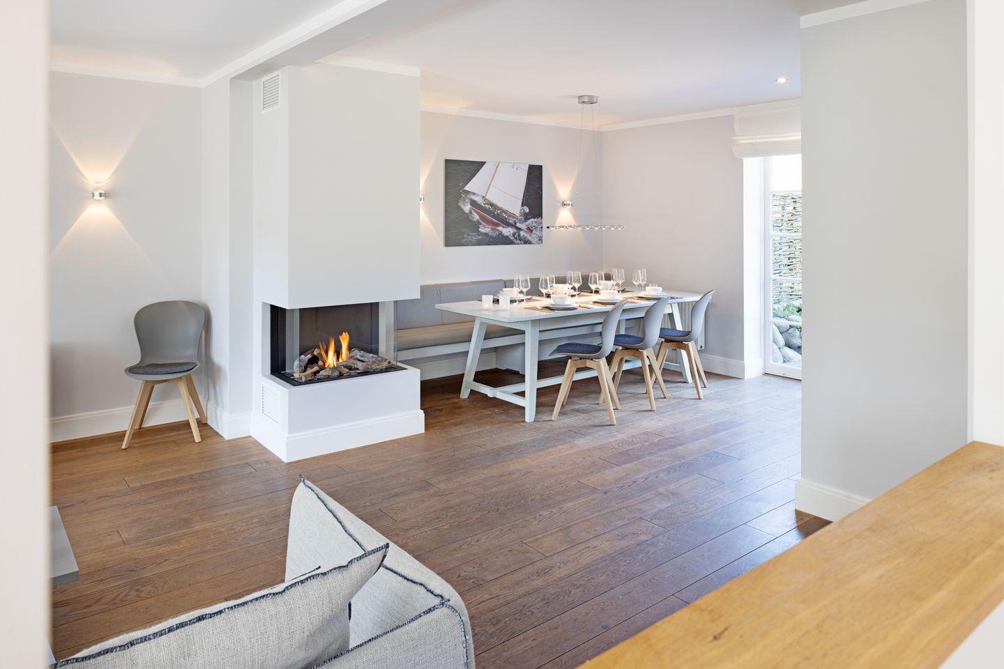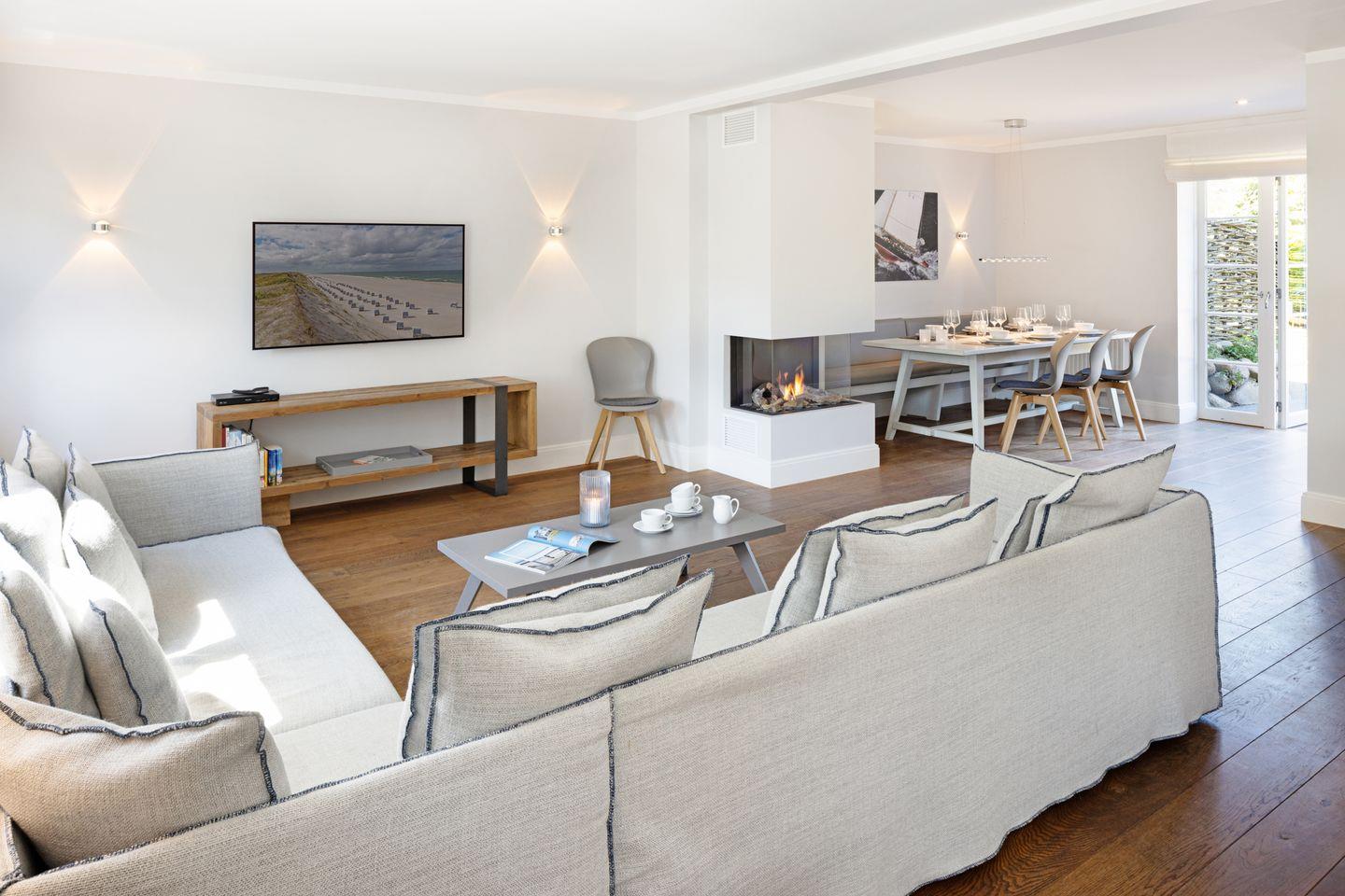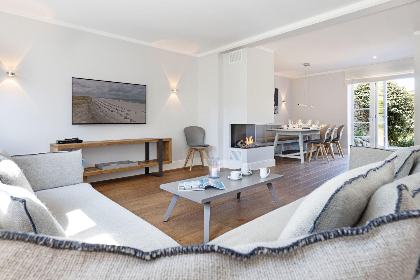Das mit maritimen Einrichtungsdetails versehene Haus "Newport" befindet sich in einer der beliebtesten Straßen von List, direkt angrenzend an die schöne Lister Dünenlandschaft. Der großzügige Wohn-, Essbereich sowie die offene Küche mit Kochinsel sind modern und hochwertig ausgestattet, es steht eine Bosestation sowie ein Smart TV zur Verfügung. Der von allen Bereichen einsehbare Gaskamin schafft eine gemütliche Atmosphäre auf Knopfdruck.