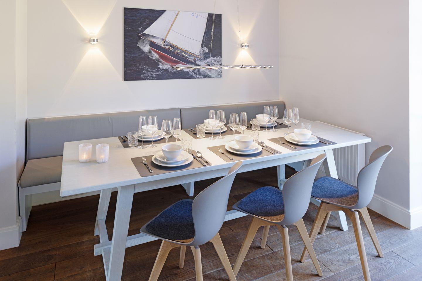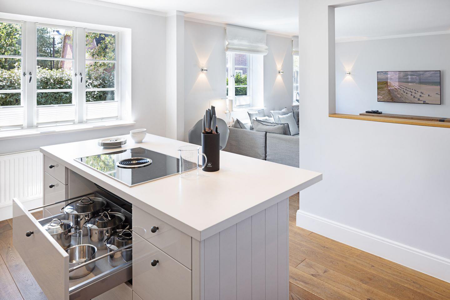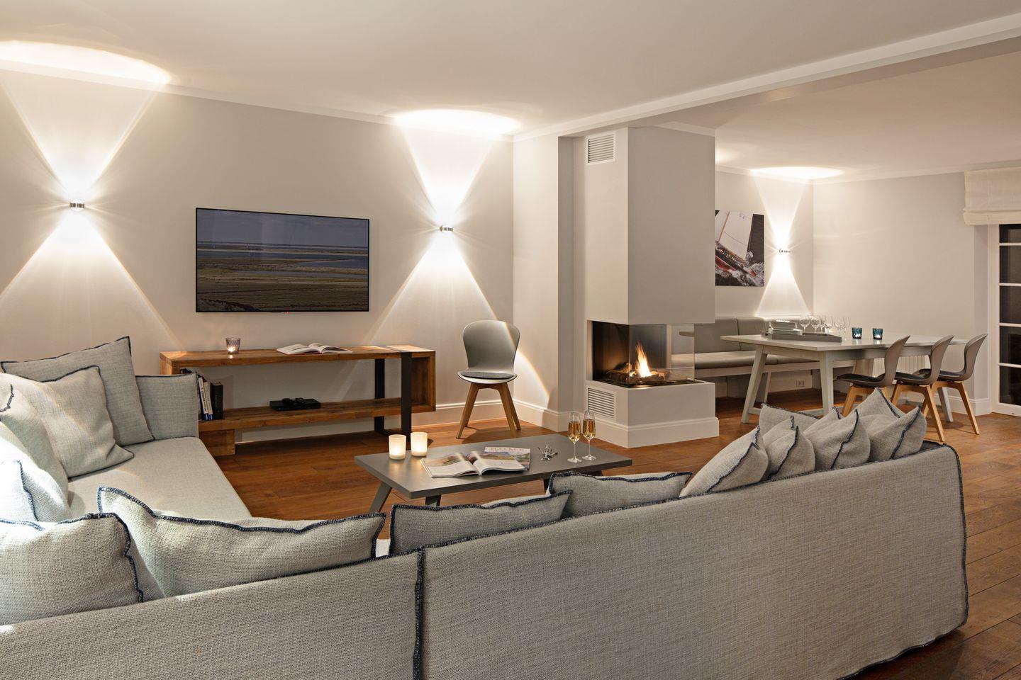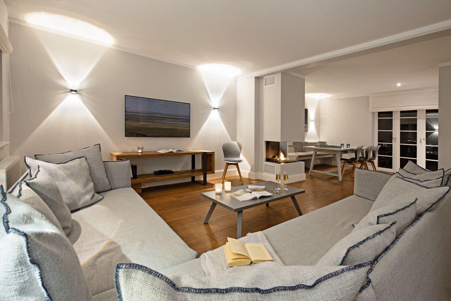 Das mit maritimen Einrichtungsdetails versehene Haus "Newport" befindet sich in einer der beliebtesten Straßen von List, direkt angrenzend an die schöne Lister Dünenlandschaft. Der großzügige Wohn-, Essbereich sowie die offene Küche mit Kochinsel sind modern und hochwertig ausgestattet, es steht eine Bosestation sowie ein Smart TV zur Verfügung. Der von allen Bereichen einsehbare Gaskamin schafft eine gemütliche Atmosphäre auf Knopfdruck.