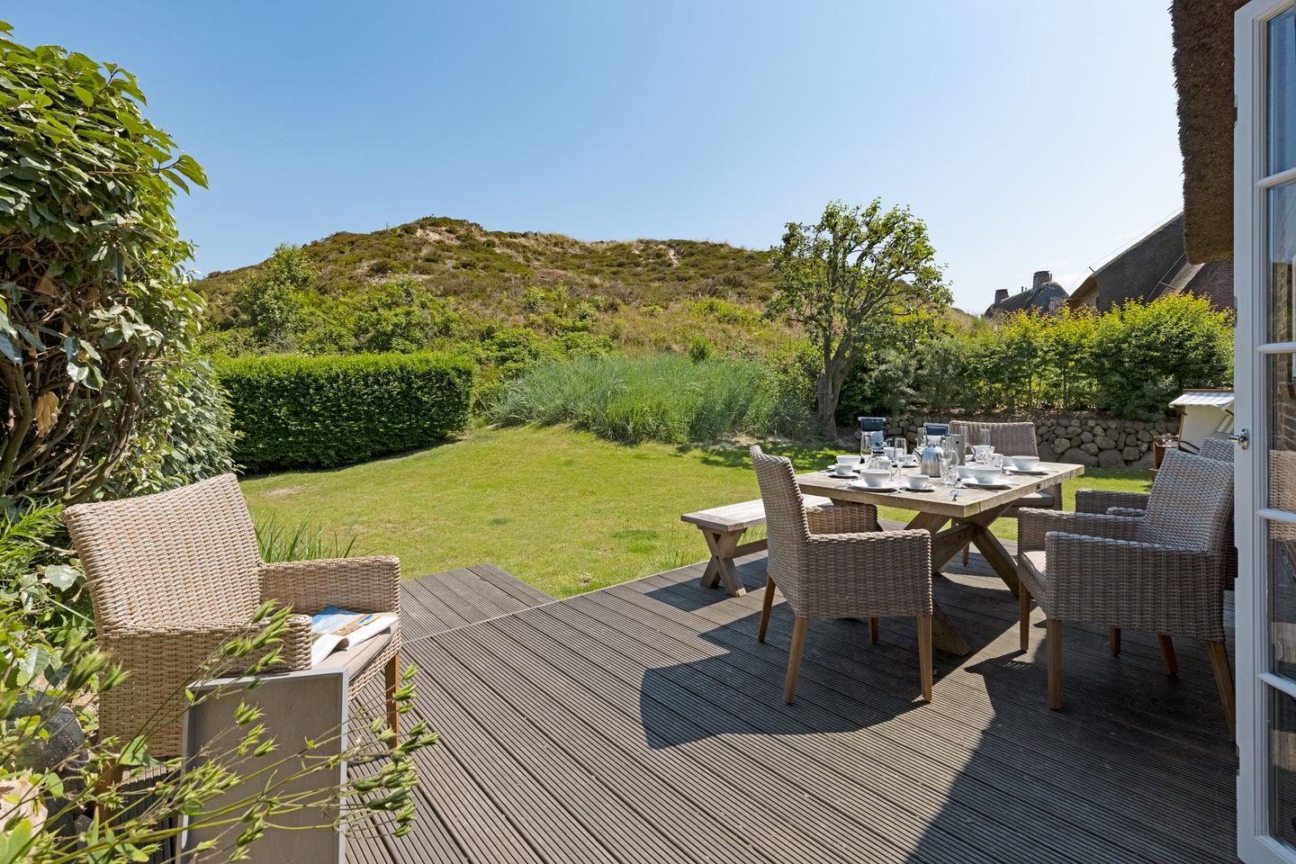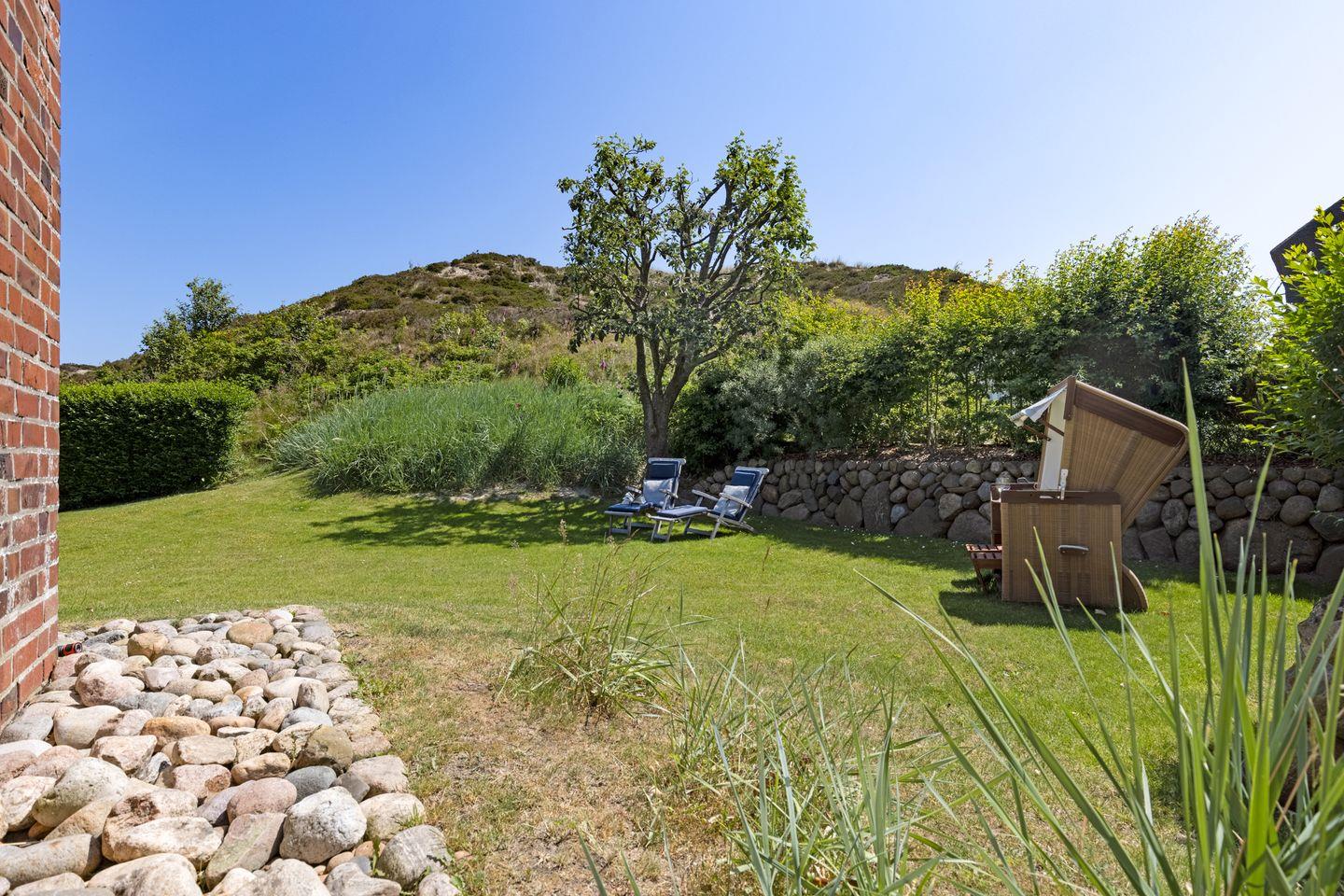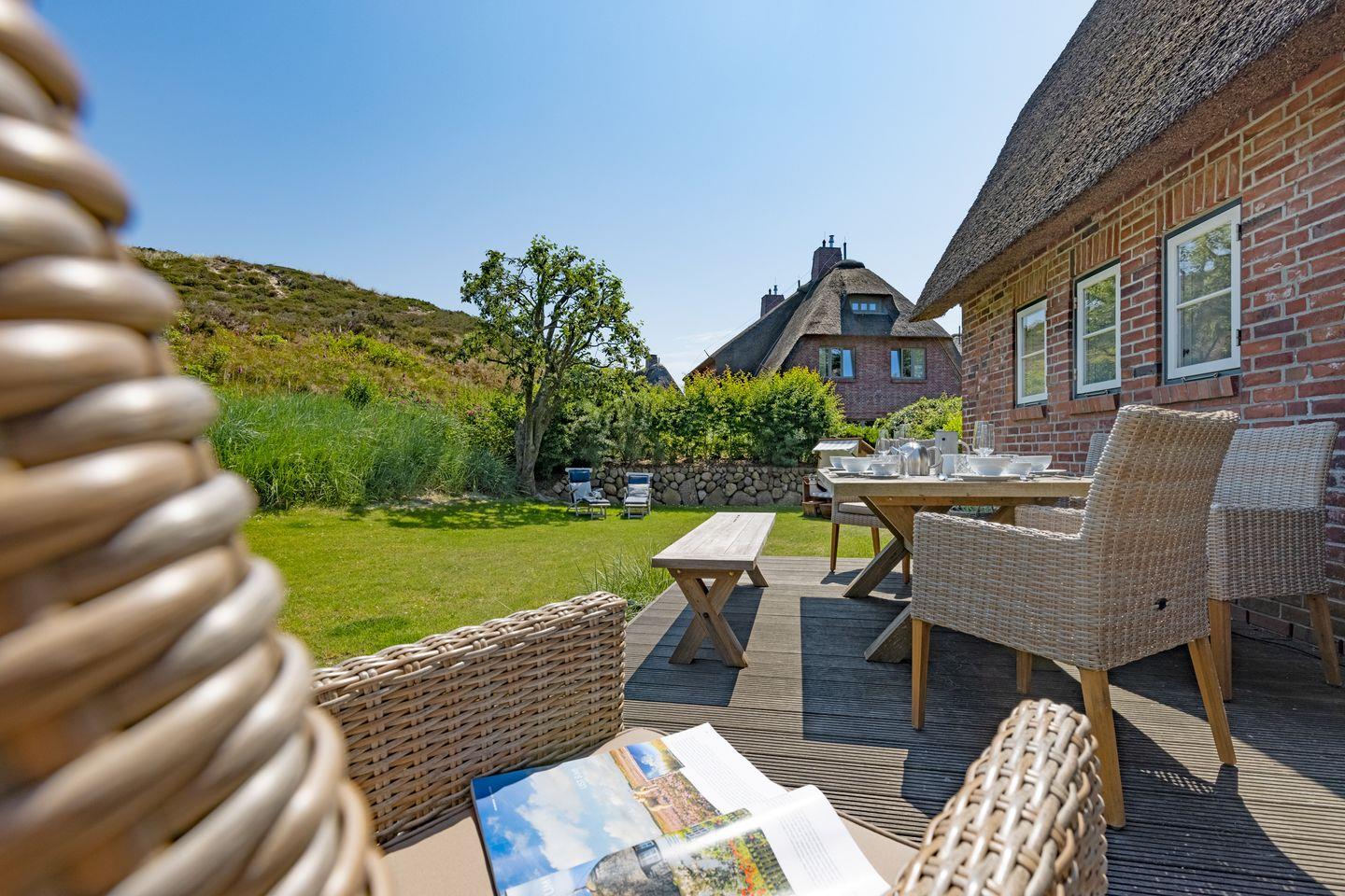 Maritimes Ferienhaus Newport in List mit Sauna, Gaskamin und direktem Zugang zur Lister Dünenlandschaft.