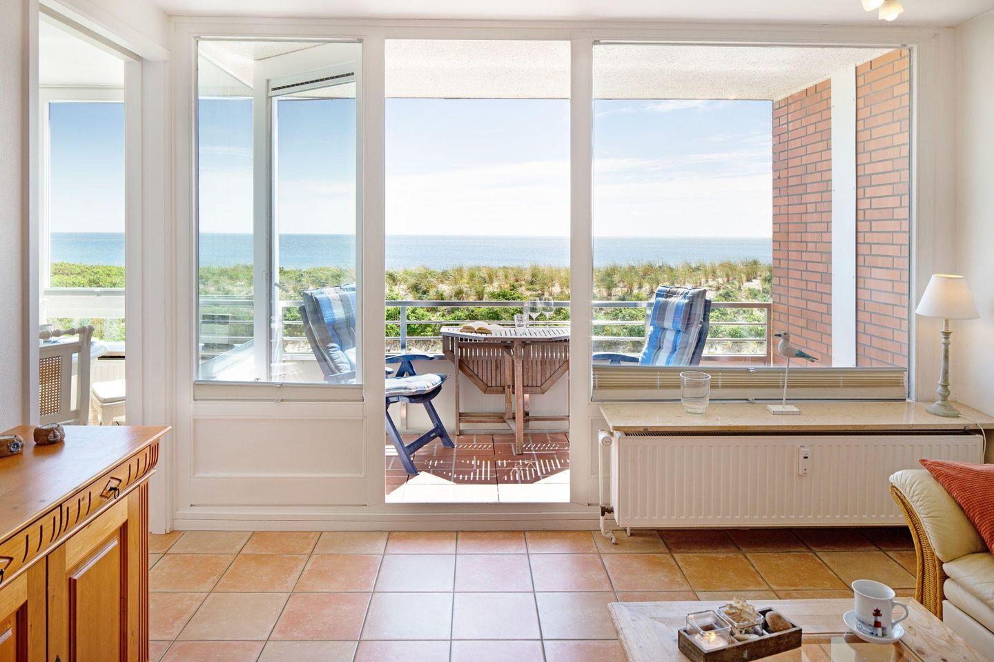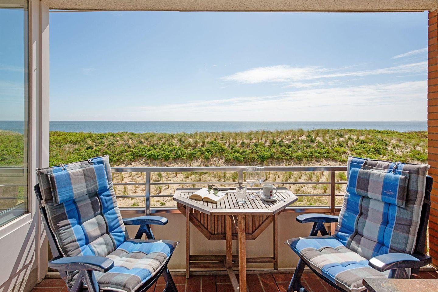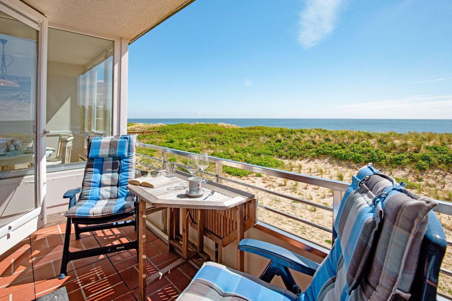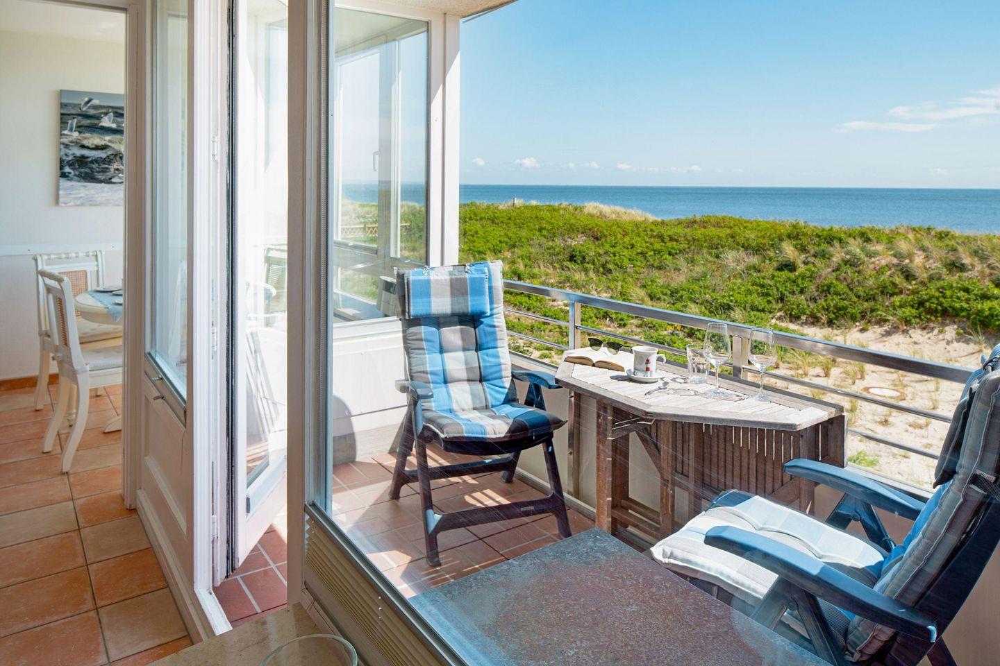 Gemütliches Appartement Strandnest mit Balkon und direktem 180°-Blick auf die Nordsee für erholsamen Urlaub auf Sylt.