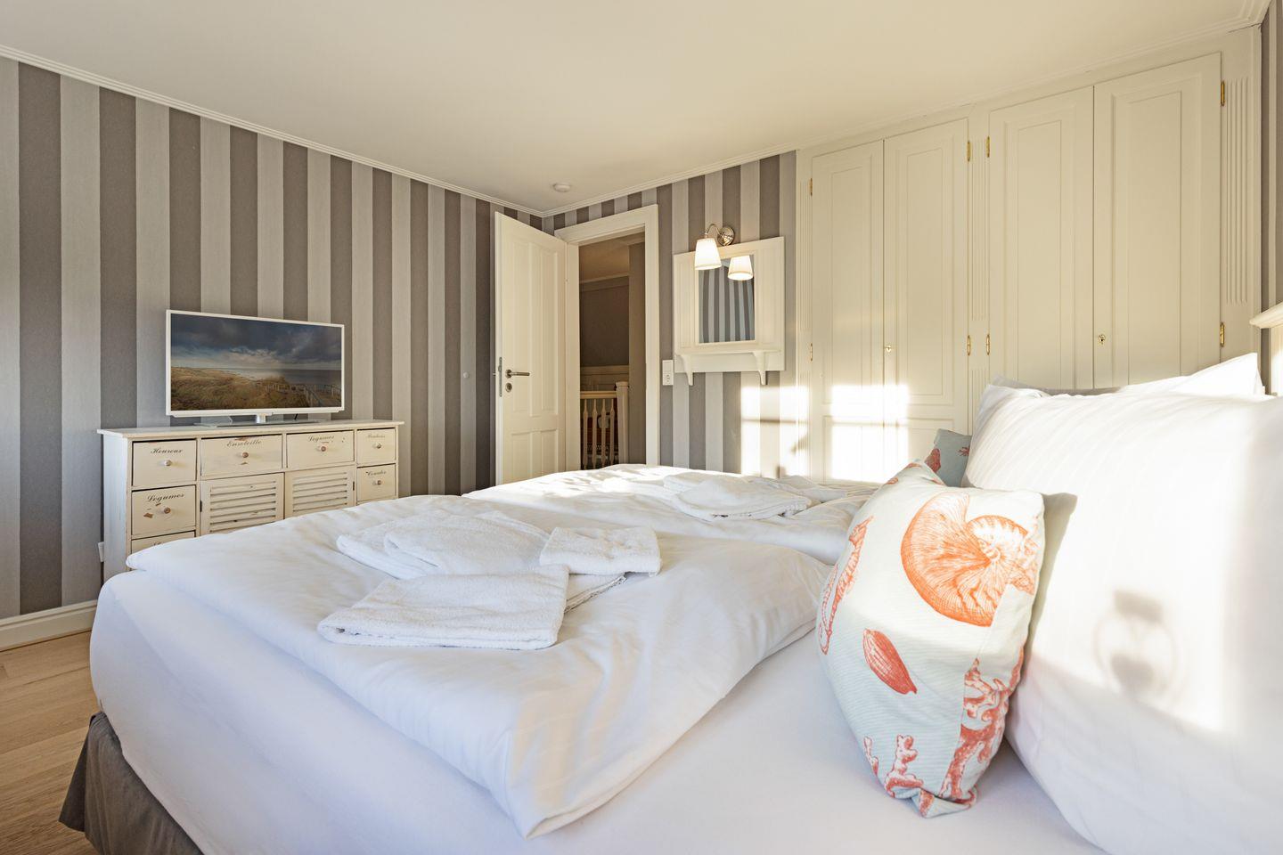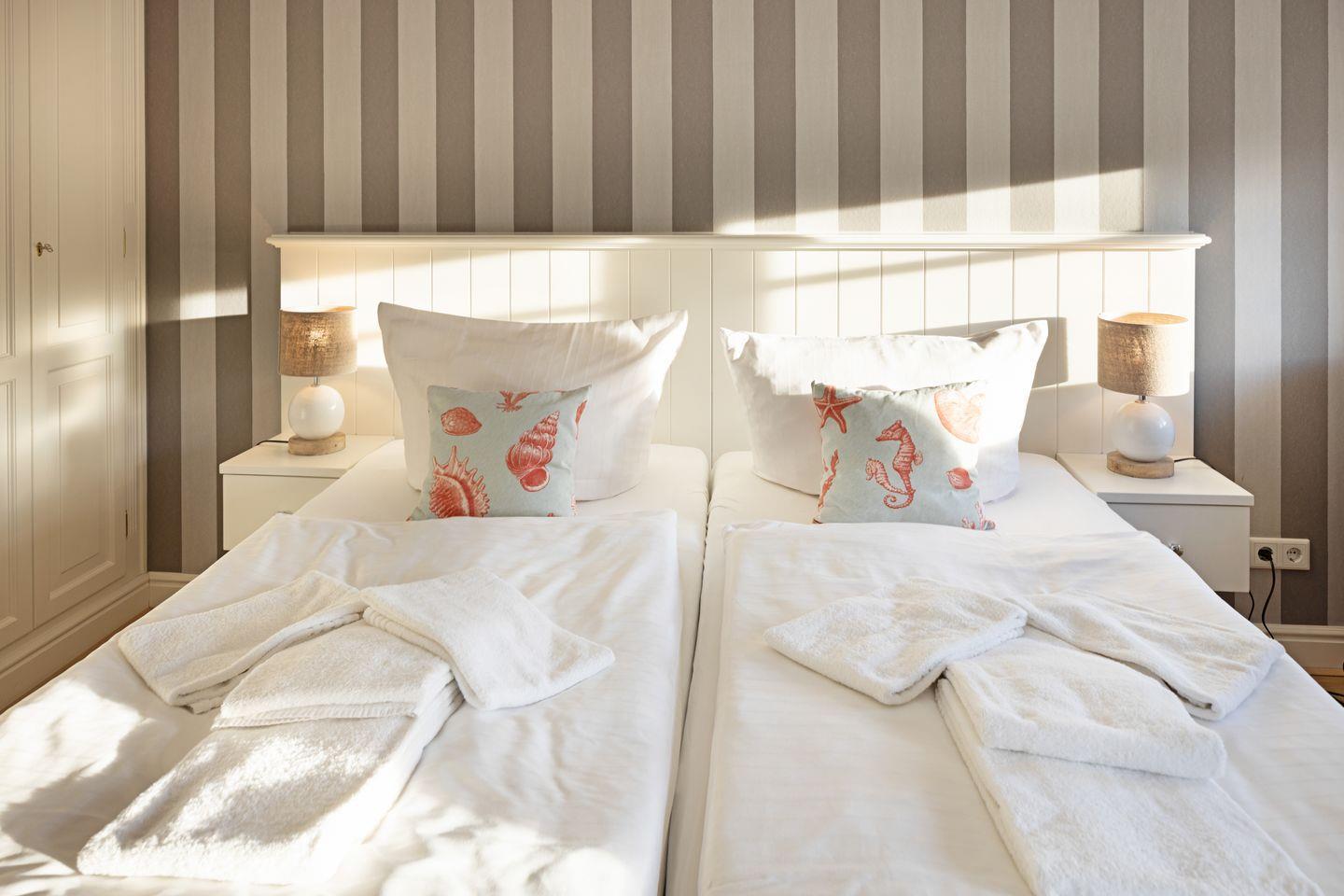 Ihr Haus "Kapitänshaus" verfügt auf 160 m² über zwei Badezimmer und im 1. Stock über zwei Schlafzimmer mit Doppelbetten.