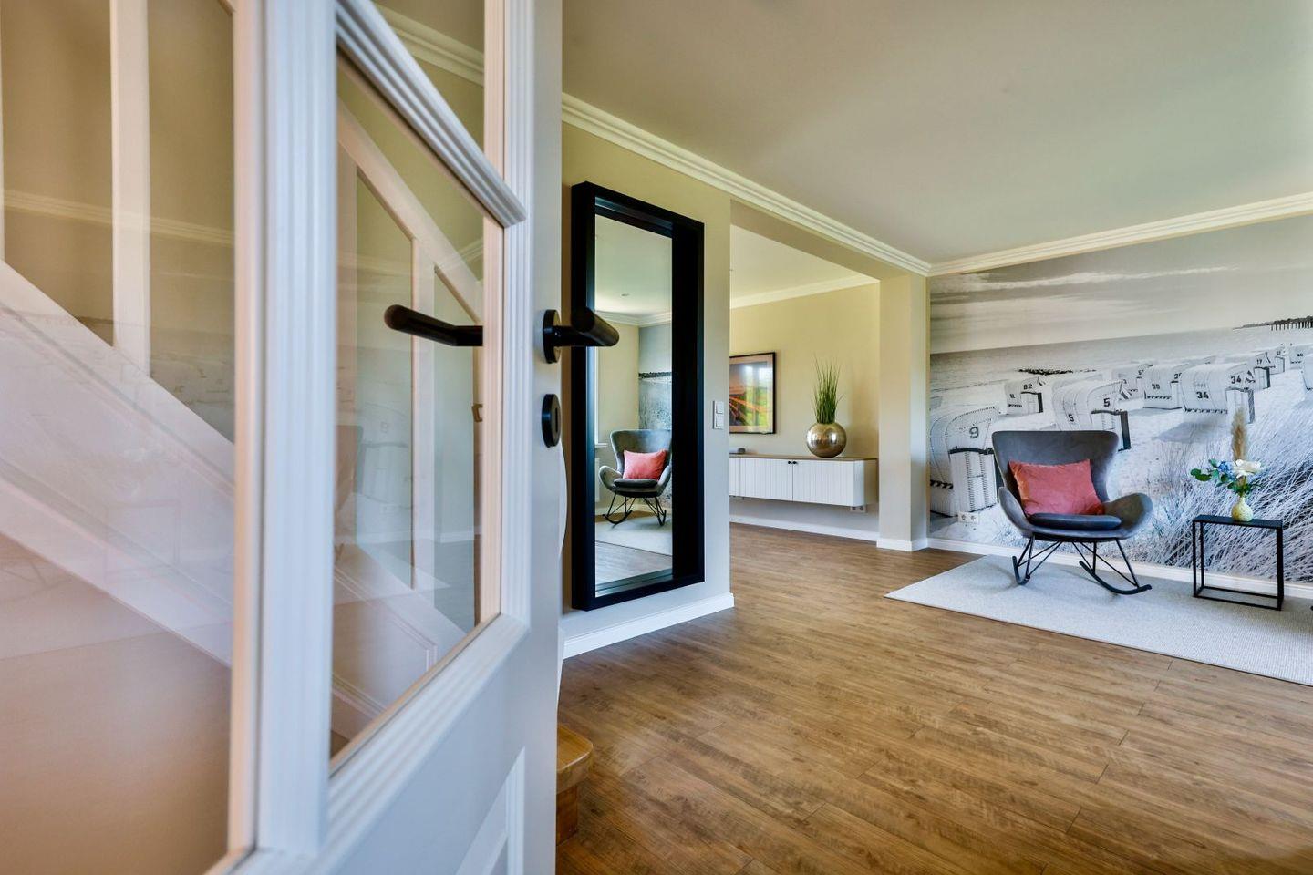 Modernes familienfreundliches Feriendoppelhaus für bis zu sechs Personen in Strandnähe mit Sauna und Garten.