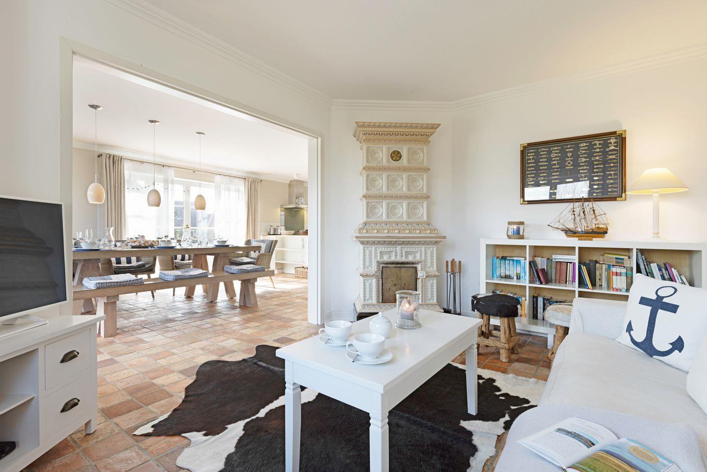 Im Flur im 1. Stock befindet sich ein weiteres Bad. Ein lauschiger Garten ermöglicht Spiel und Spaß. Hier können Sie Ihre Seele baumeln lassen. Das Haus bietet Platz für bis zu acht Personen (180 m²) und ist ideal für Gäste mit gehobenen Ansprüchen. Die Wohnküche bietet viel Platz um in großer oder kleiner Runde beisammen zu sitzen. Gemütliche Stunden zum Entspannen verspricht das bezaubernde Kaminzimmer (Mylin Kamin).