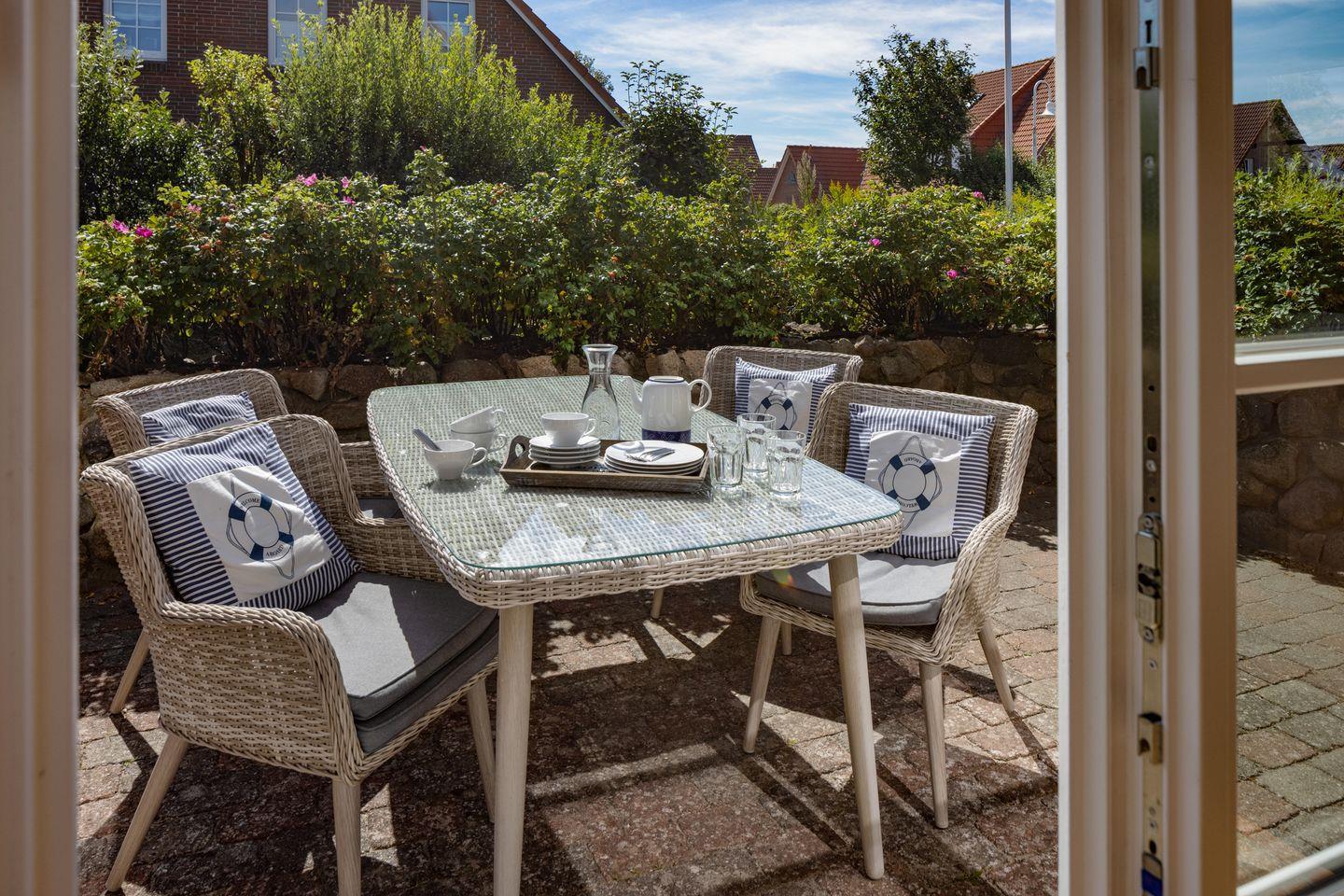 Gartenmöbel und ein Strandkorb stehen Ihnen saisonal begrenzt zur Verfügung.