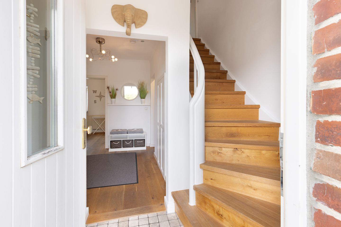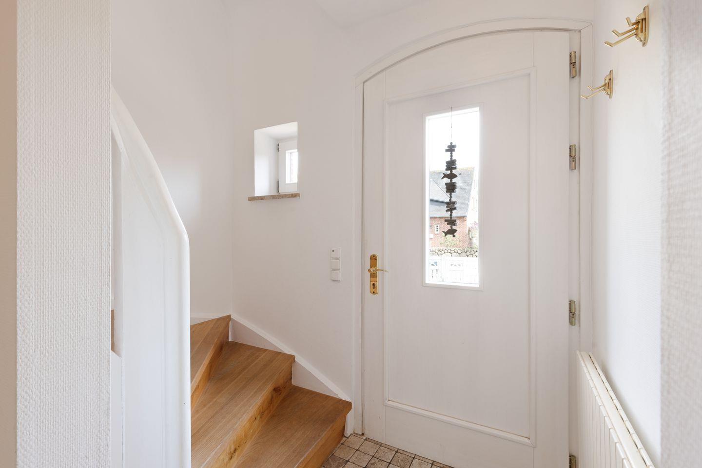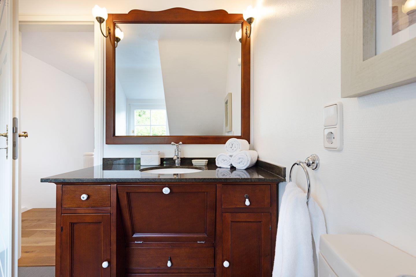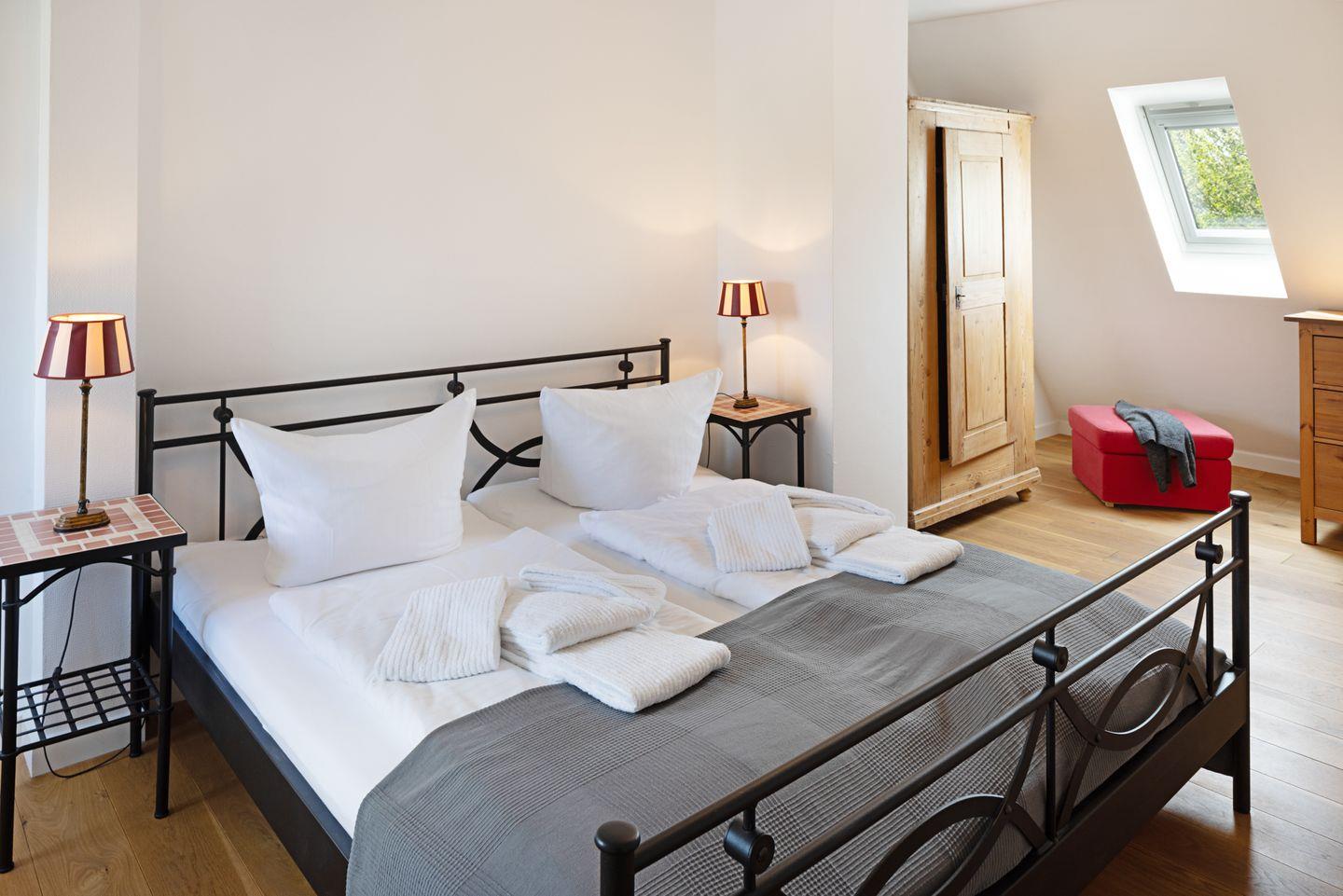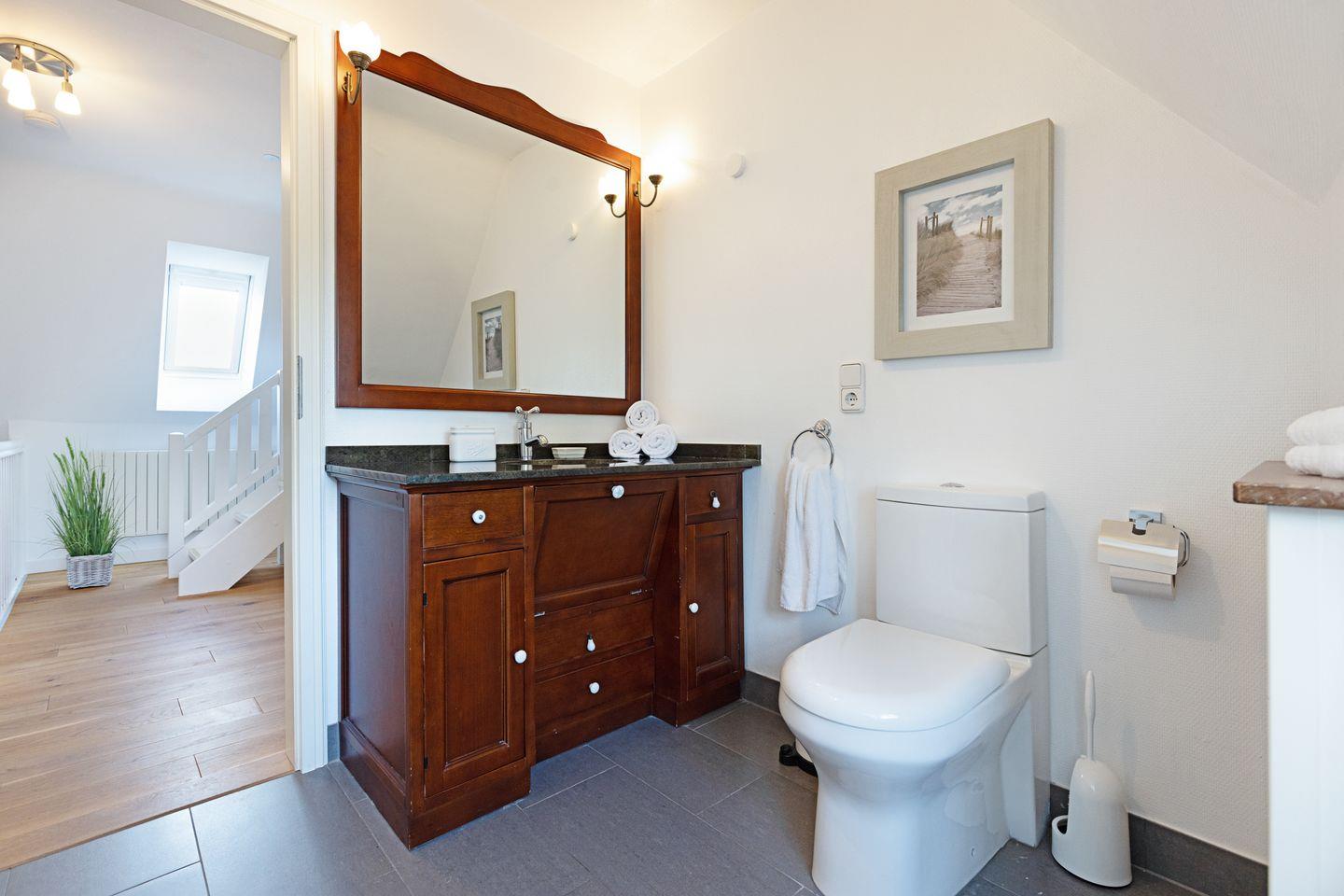 Es verfügt im 1. Stock über zwei Schlafzimmer mit Doppelbetten und Bad mit Wanne und im EG ein Schlafzimmer mit Etagenbett