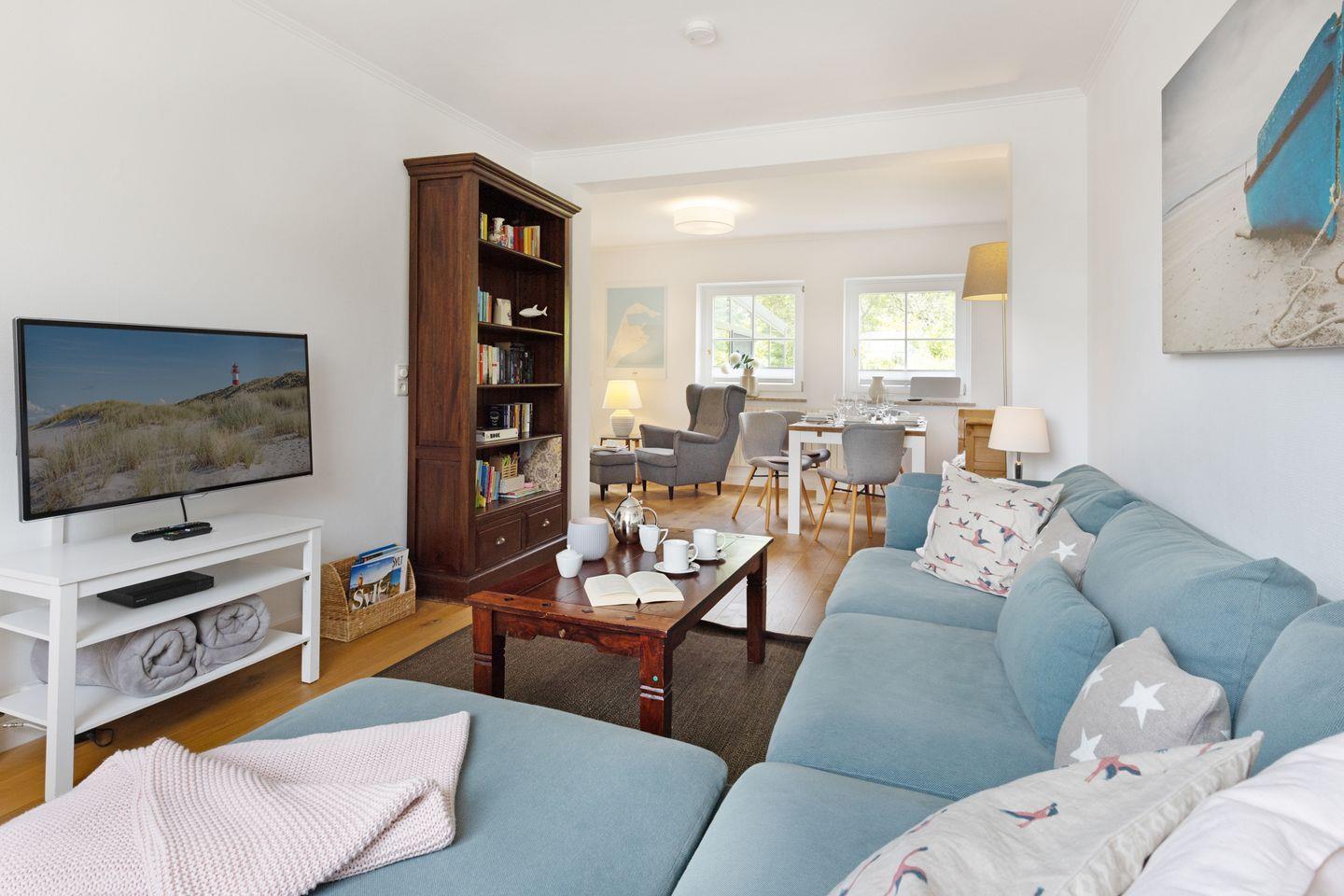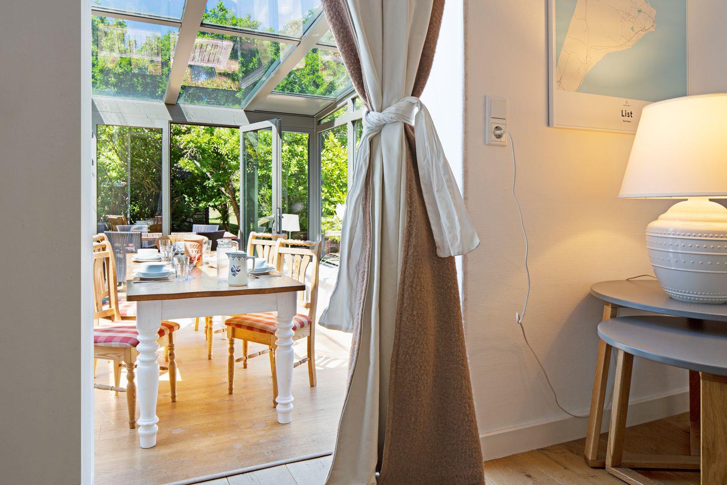 Das Ferienhaus Amur in List bietet familienfreundlichen Komfort mit Wintergarten und Garten inklusive Strandkorb.