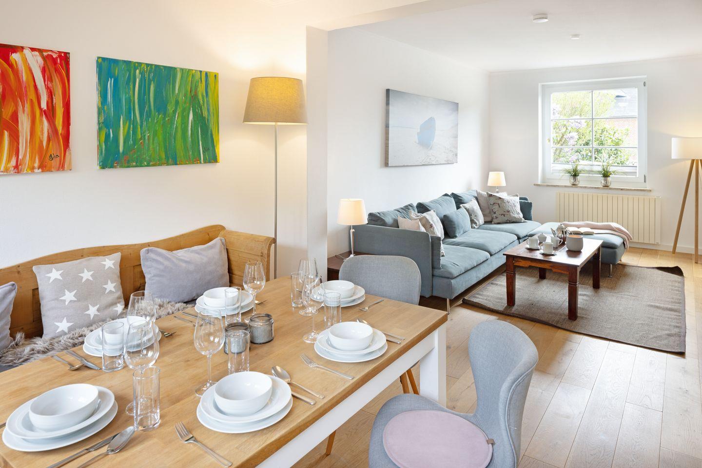 Genießen Sie die Sonne im Strandkorb im kleinen Garten vor dem Haus und freuen Sie sich auf ein reichhaltiges Service-Angebot, welches wir Ihnen optional gerne anbieten.