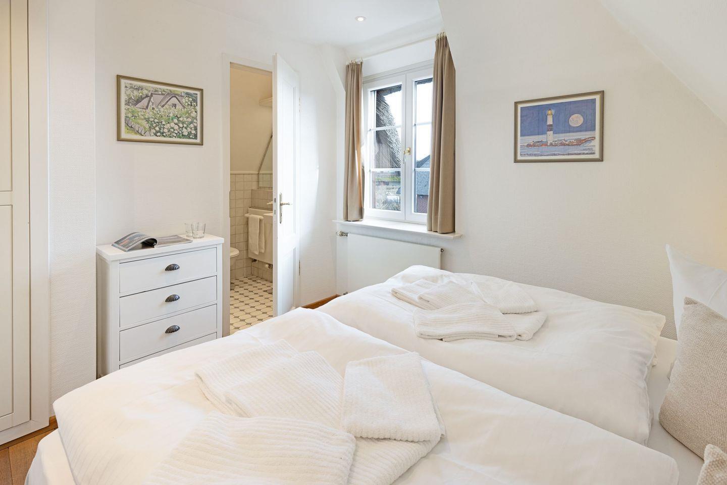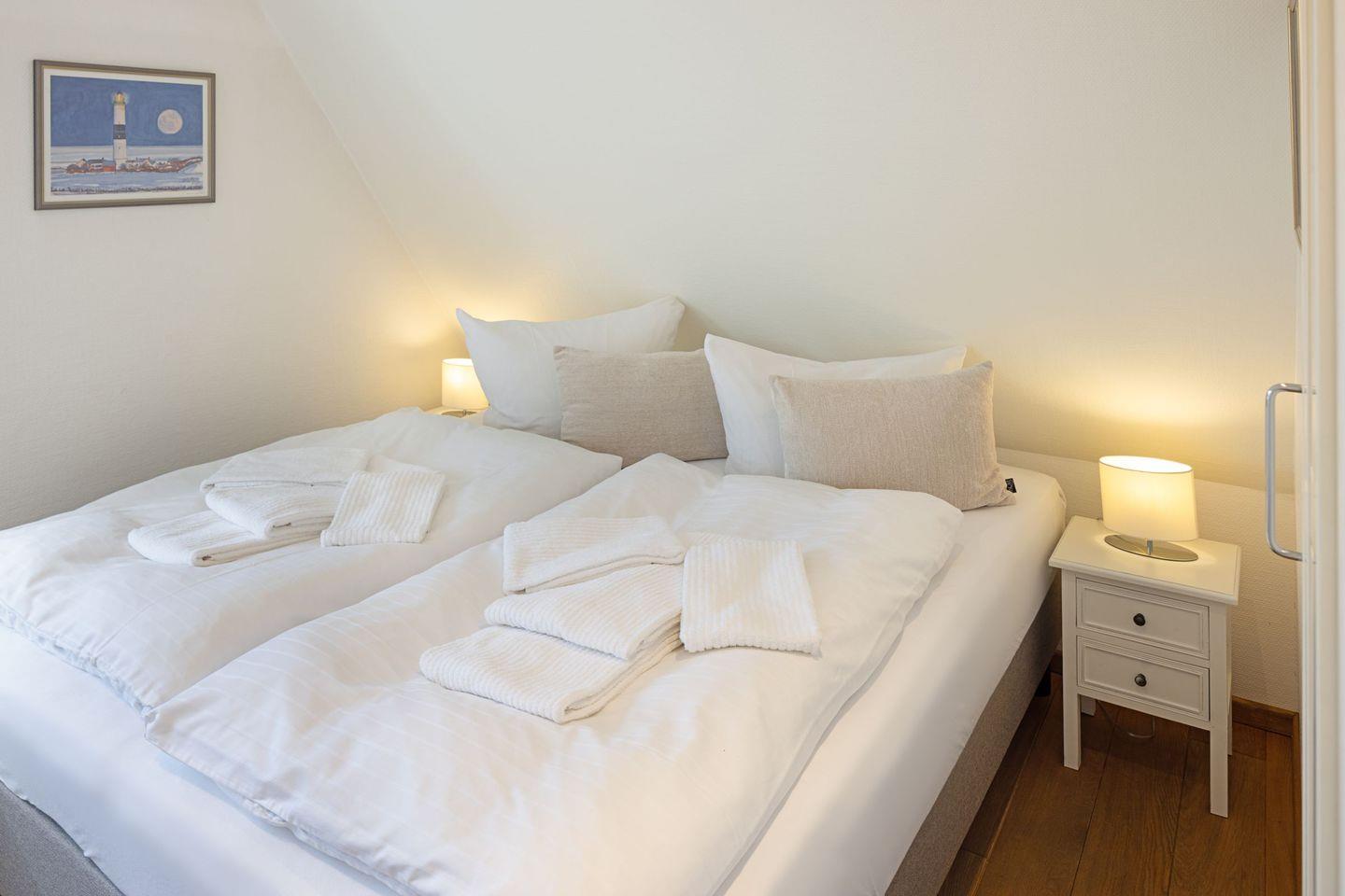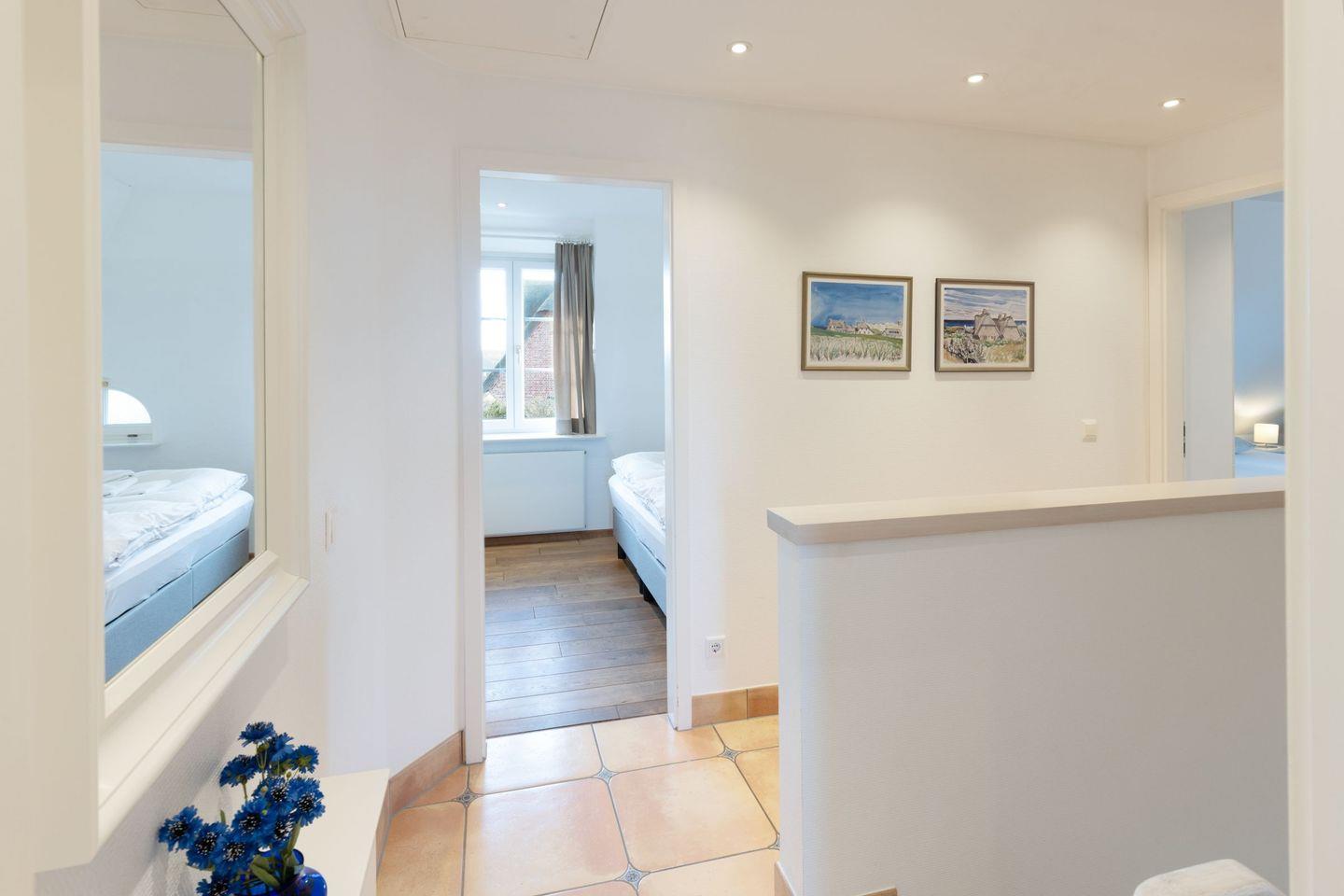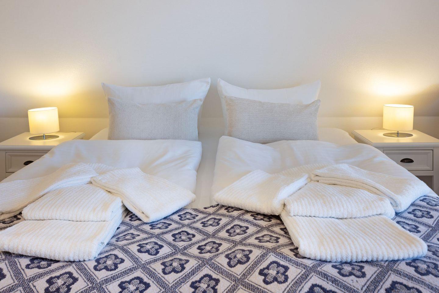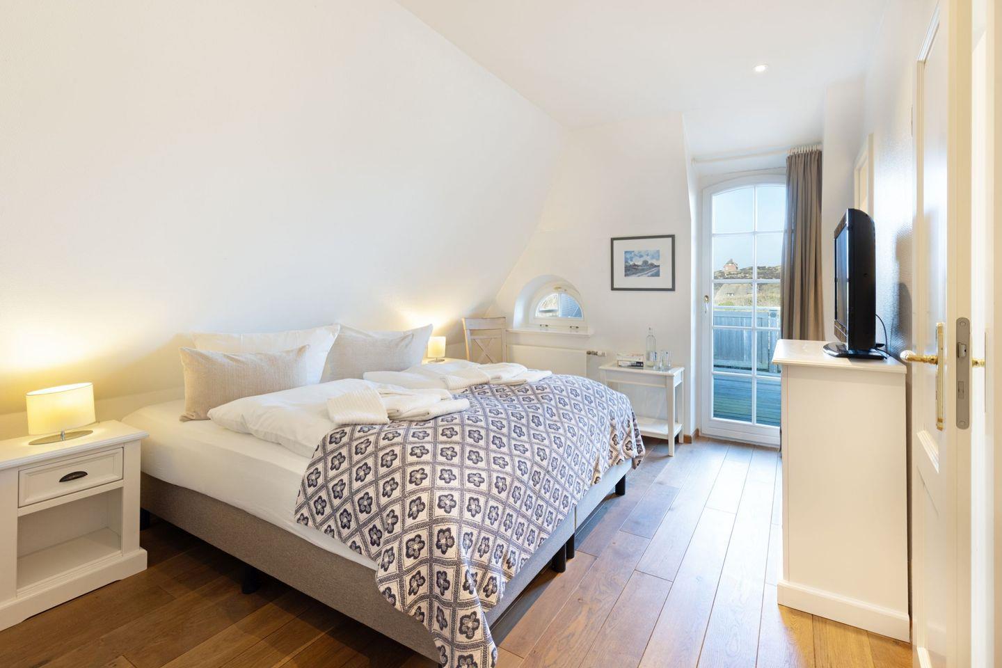Im Obergeschoss befinden sich Ihre Schlafzimmer. Alle Schlafzimmer sind mit Bad en Suite. Das große Schlafzimmer im ersten Stock hat eine zusätzliche Sonnenterrasse mit Strandkorb.