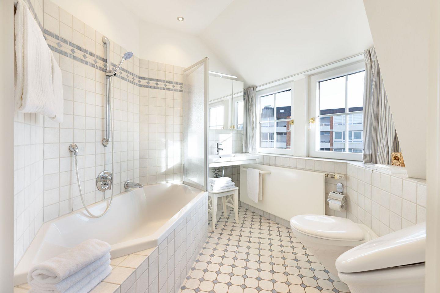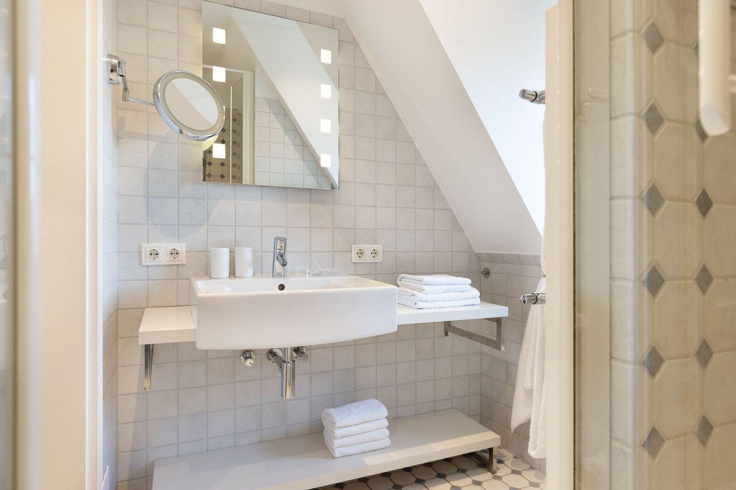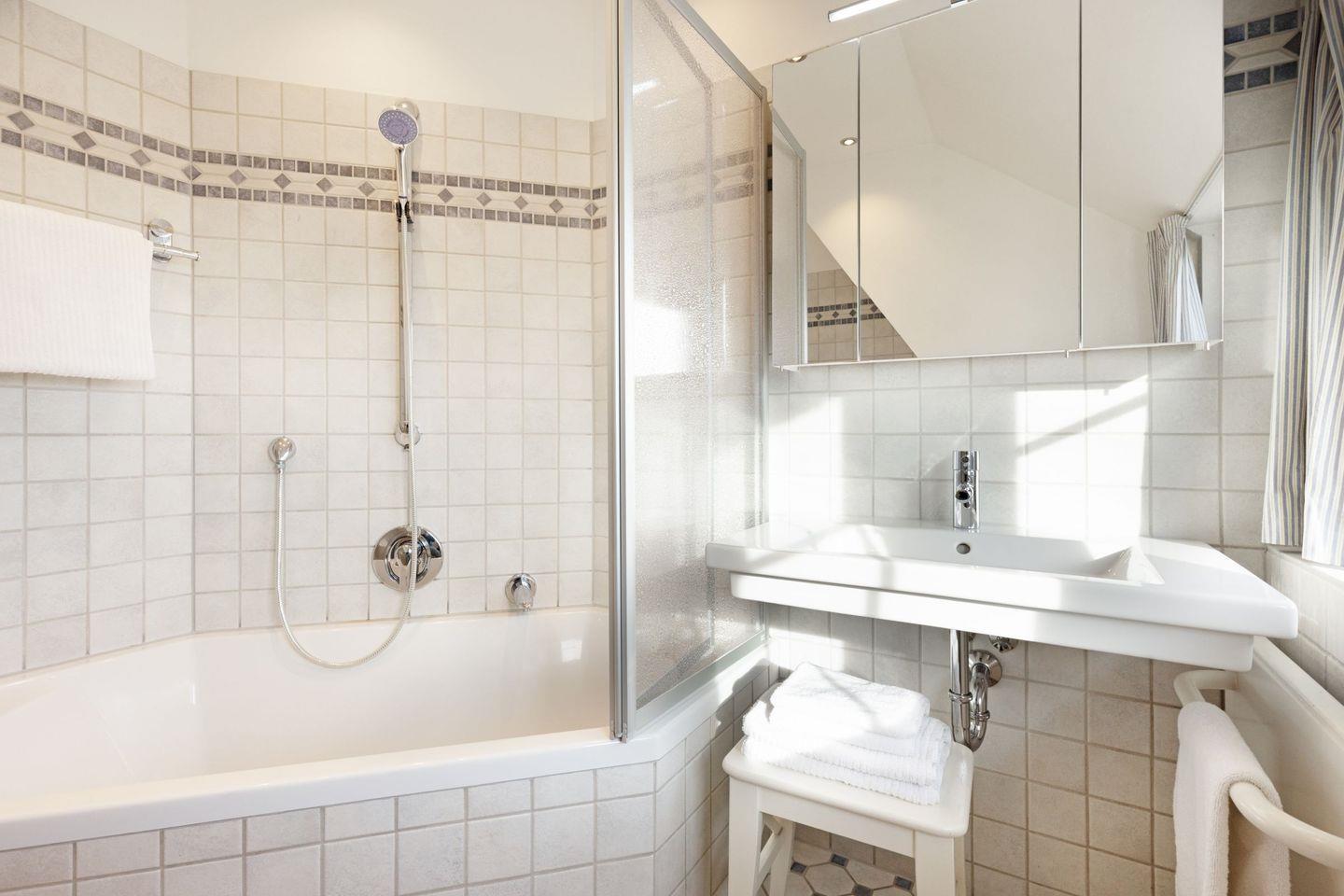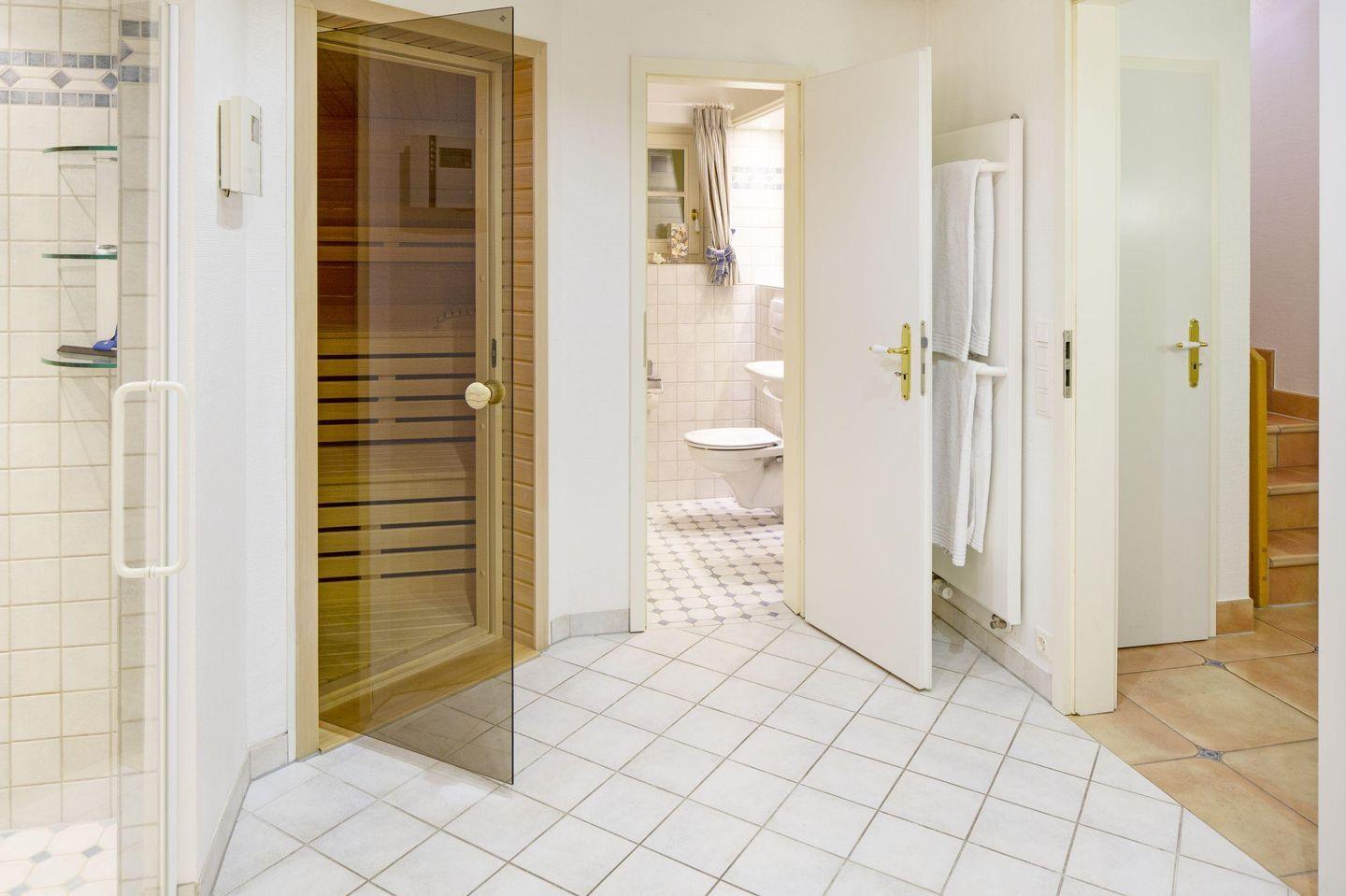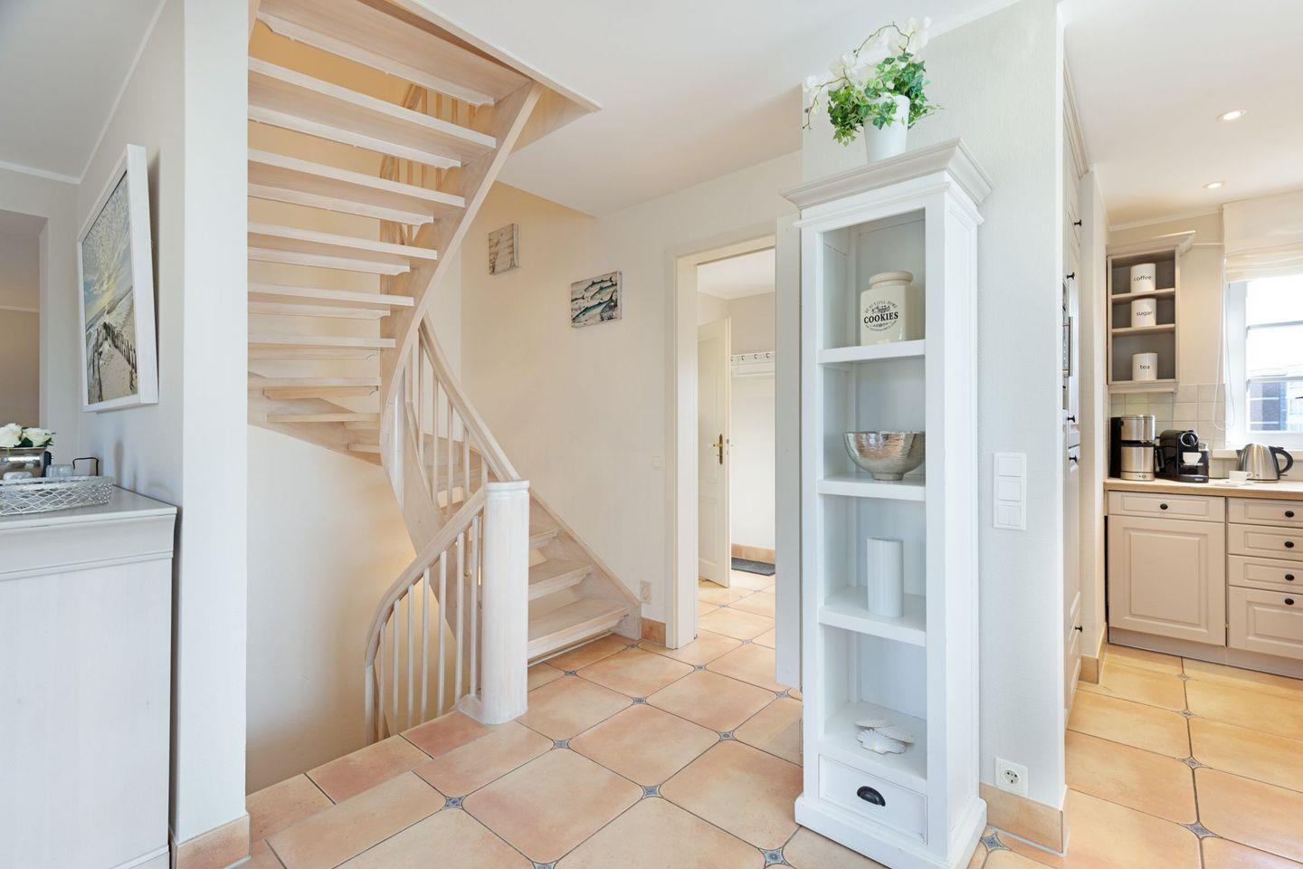 Im Obergeschoss befinden sich Ihre Schlafzimmer. Alle Schlafzimmer sind mit Bad en Suite. Das große Schlafzimmer im ersten Stock hat eine zusätzliche Sonnenterrasse mit Strandkorb.
