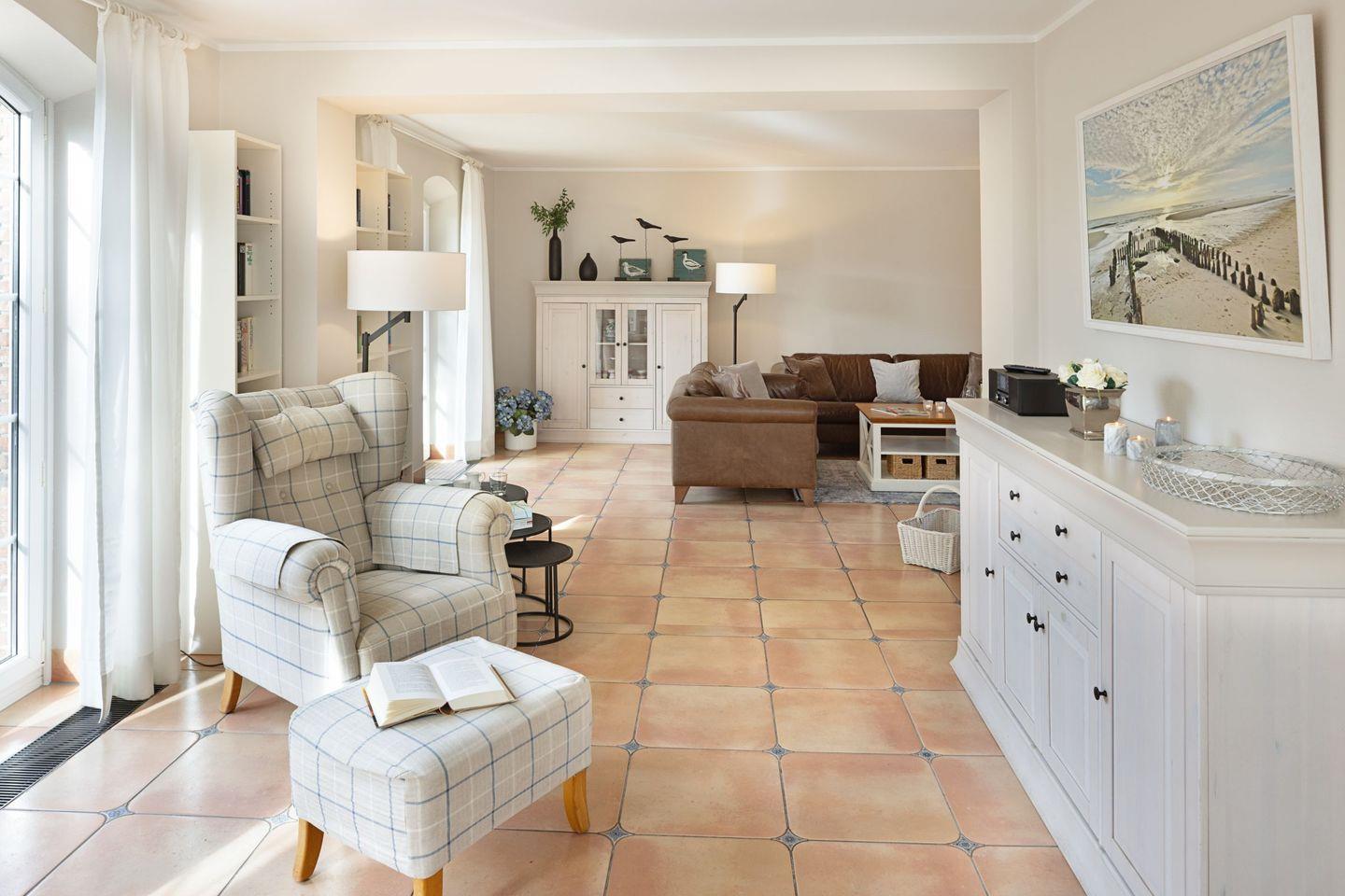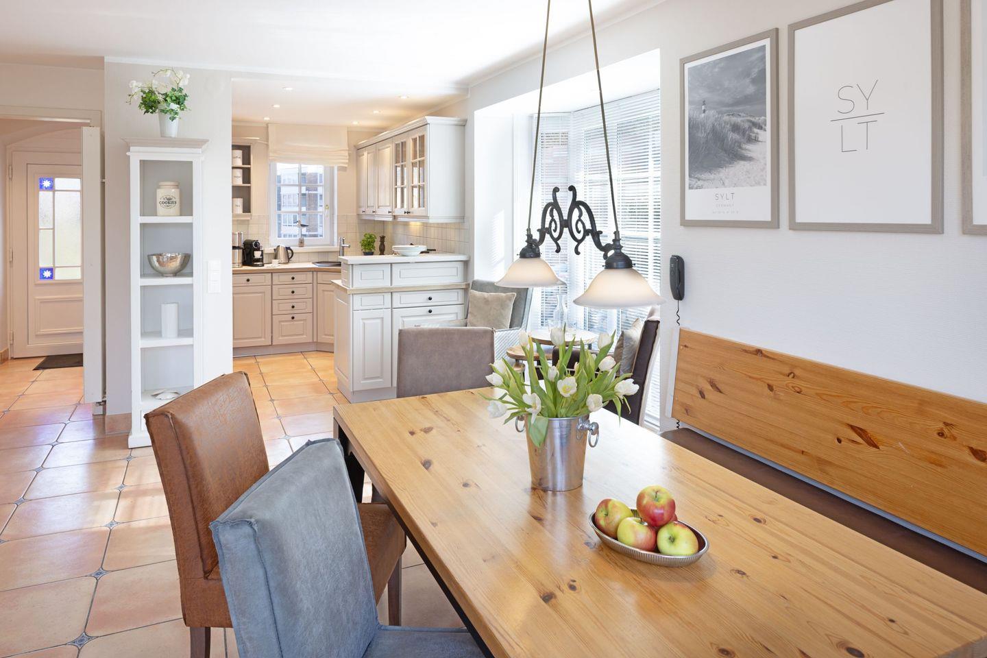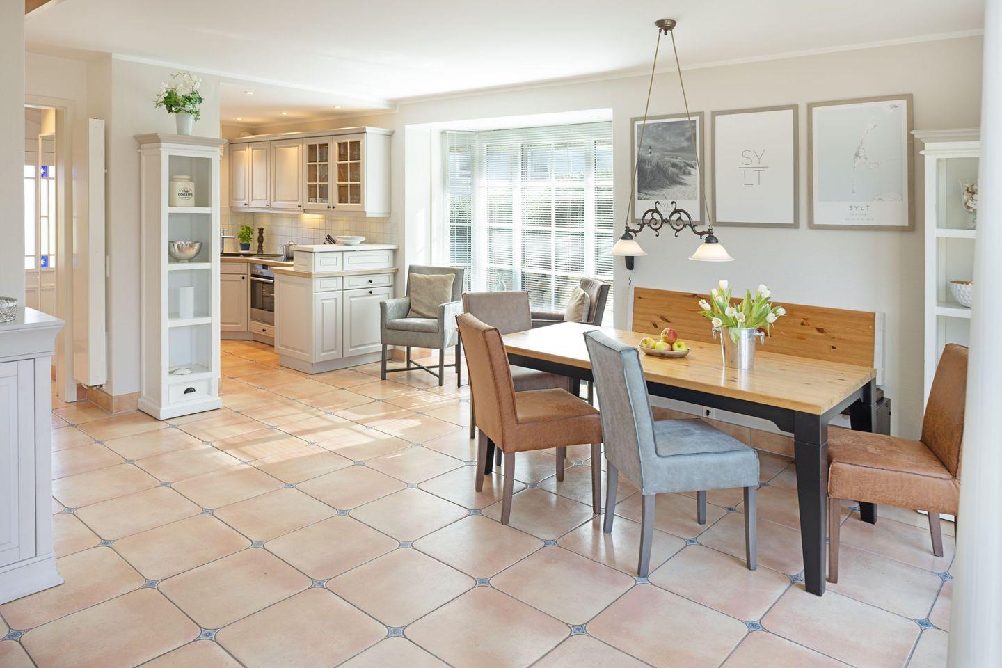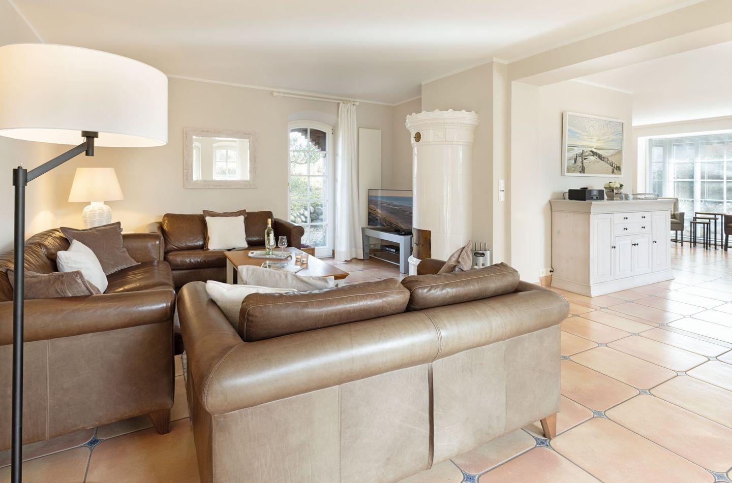 Ein exklusives, reetgedecktes Haus mit Doppelgarage in sonnenverwöhnter Lage erwartet sie. Sie haben ein großes Wohnzimmer mit Übergang zum Esszimmer mit angeschlossener Küche.