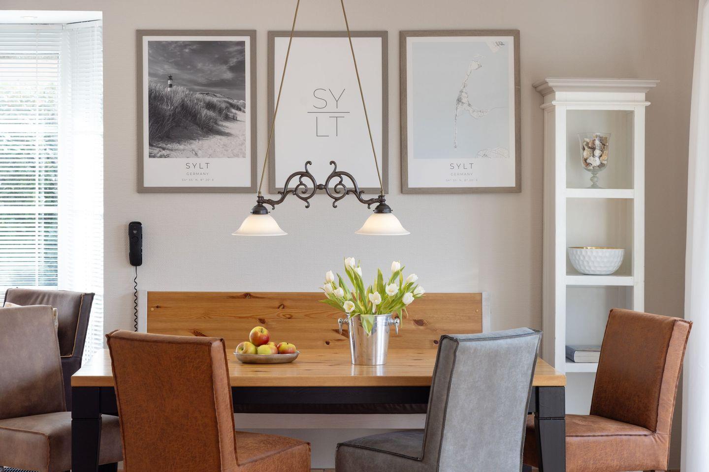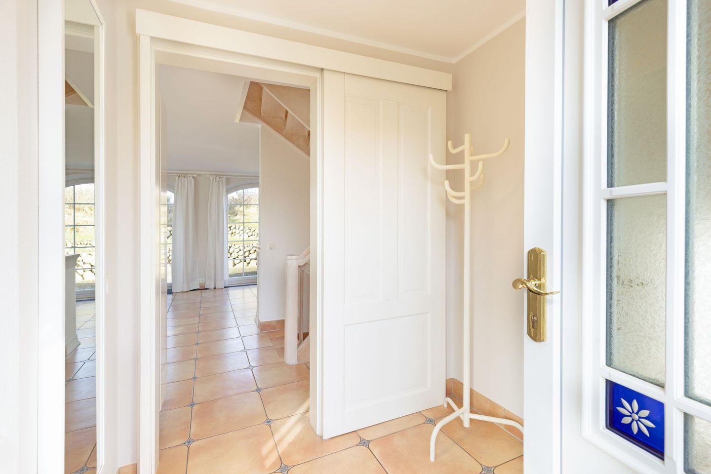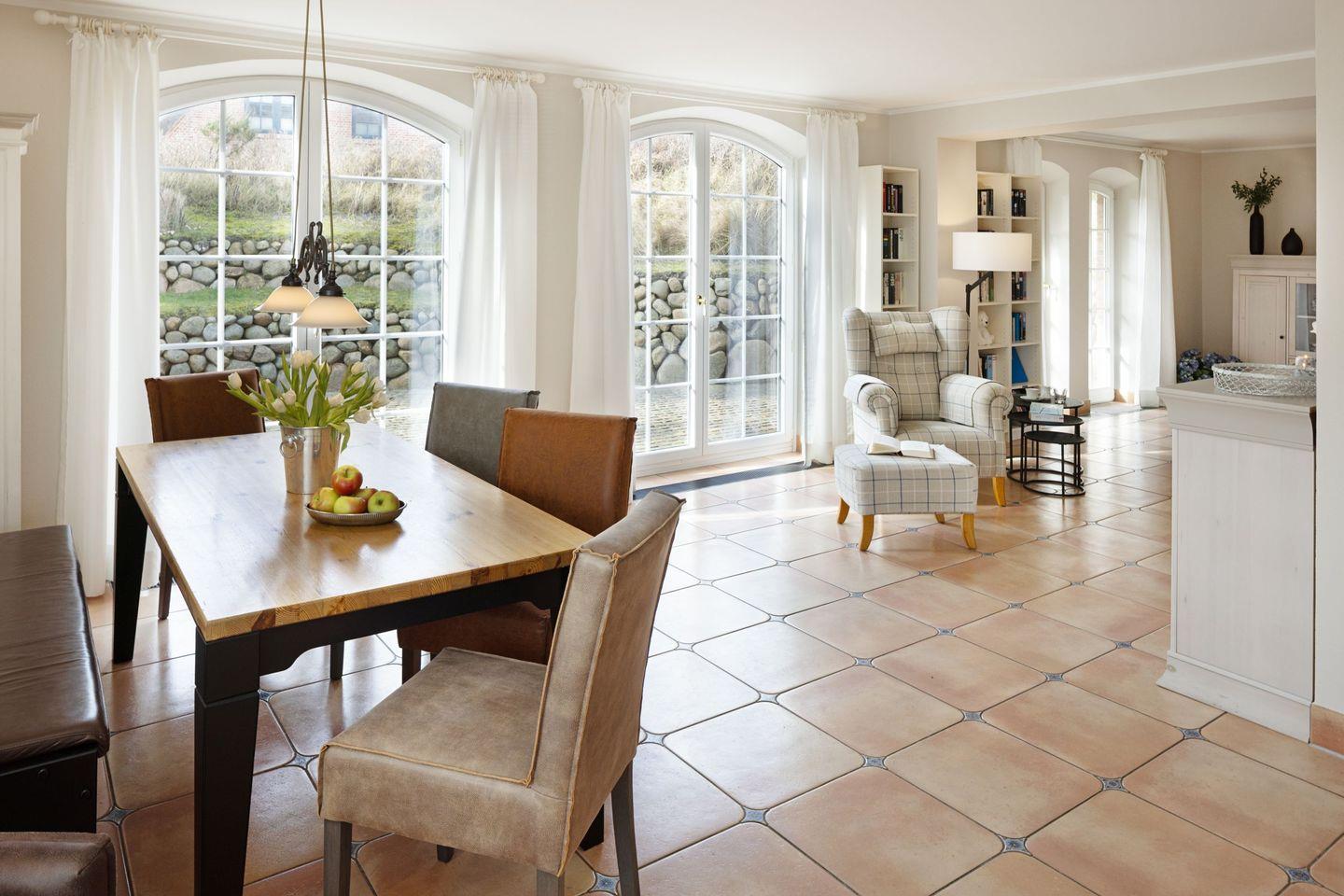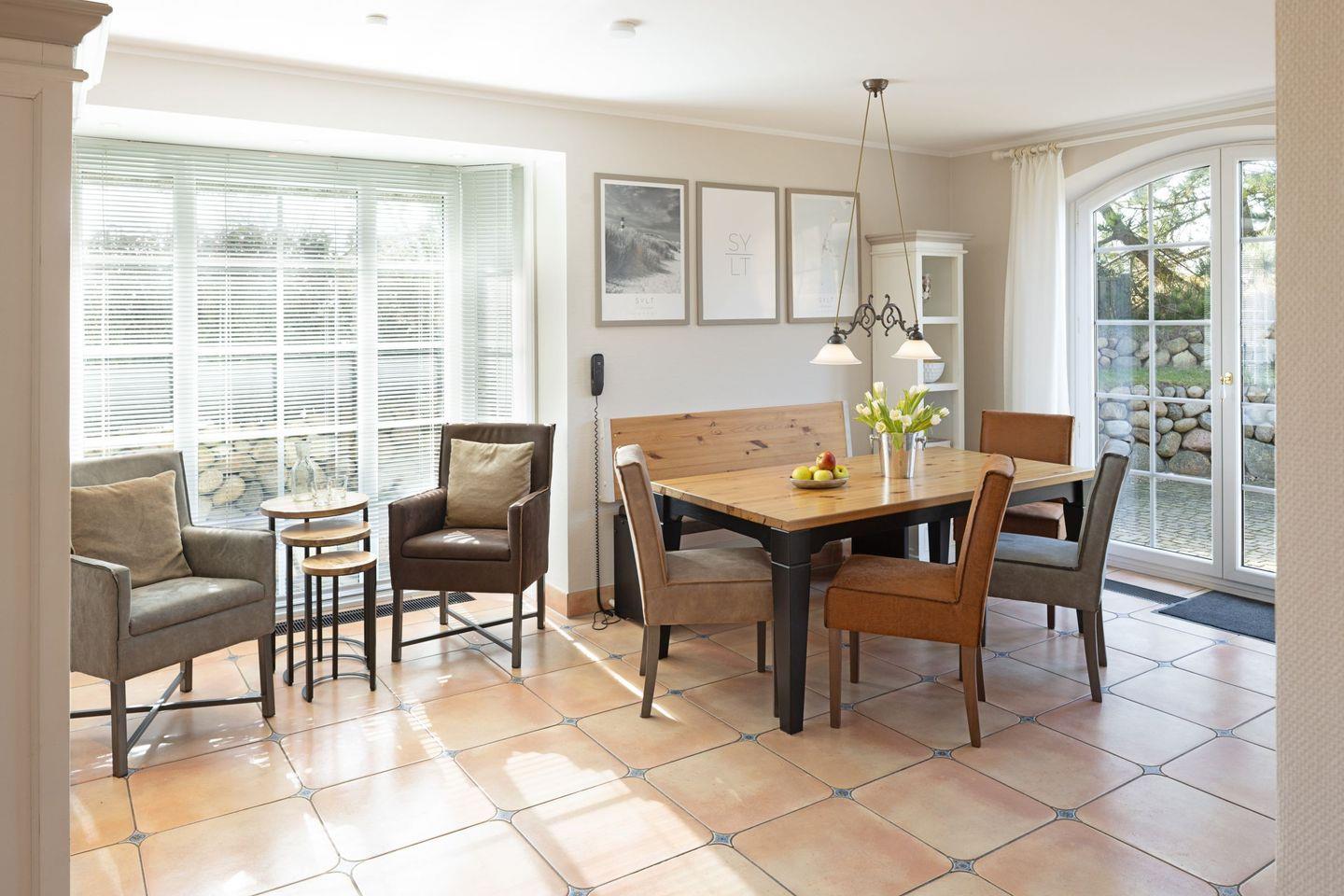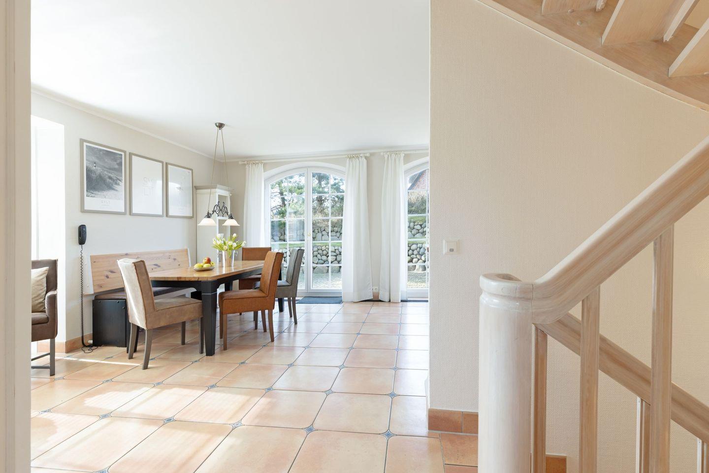 Ein exklusives, reetgedecktes Haus mit Doppelgarage in sonnenverwöhnter Lage erwartet sie. Sie haben ein großes Wohnzimmer mit Übergang zum Esszimmer mit angeschlossener Küche.
