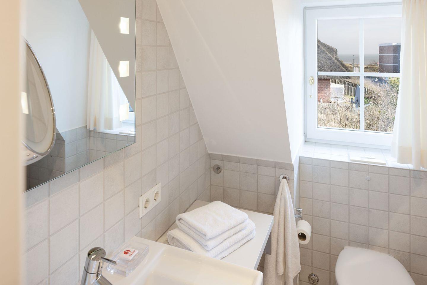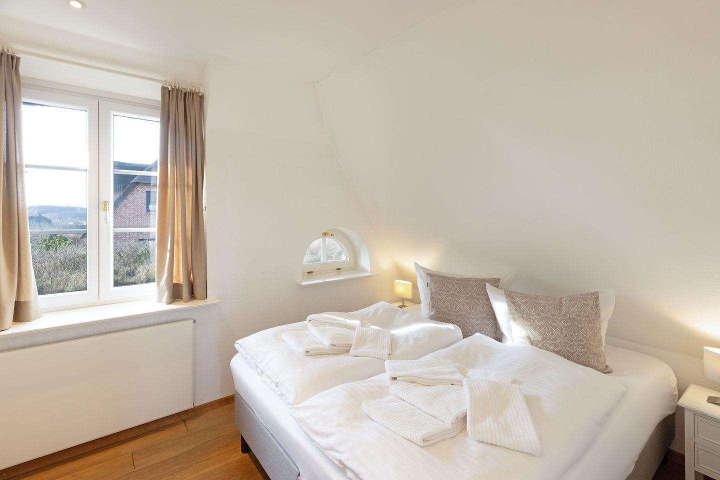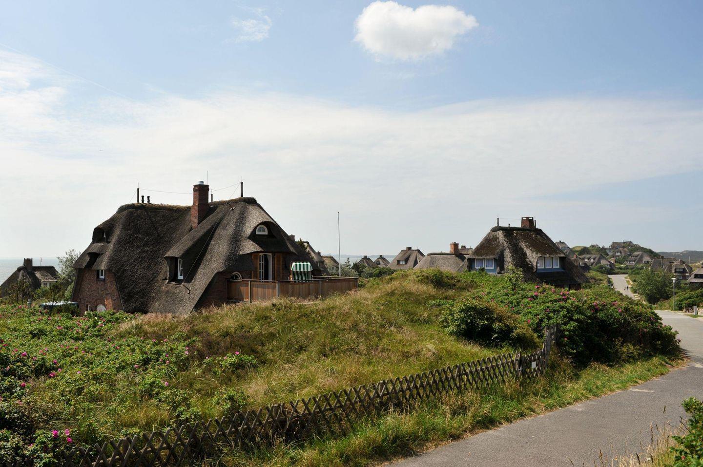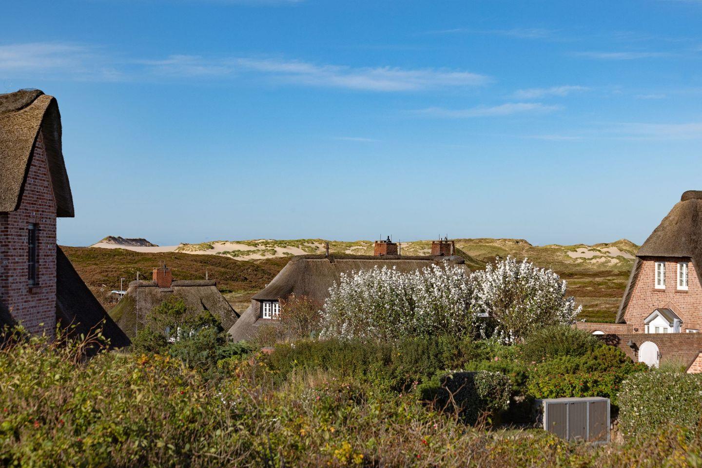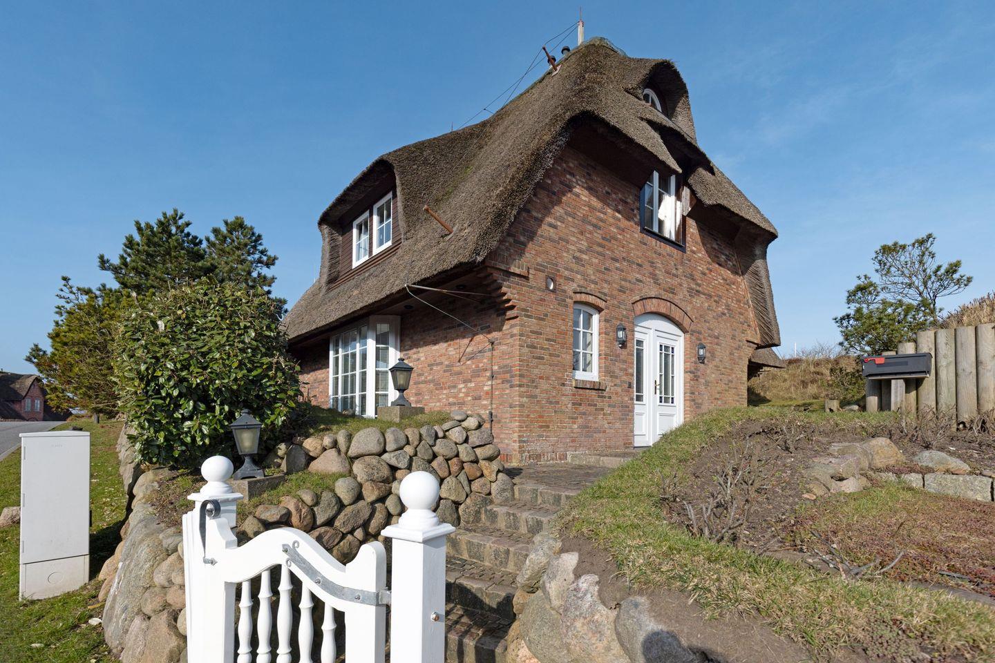 Exklusives freistehendes Haus unter Reet für bis zu sechs Personen mit Doppelgarage in sonnenverwöhnter Lage mit Meerblick 180m vom Strand entfernt.