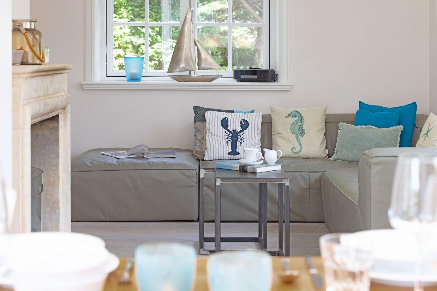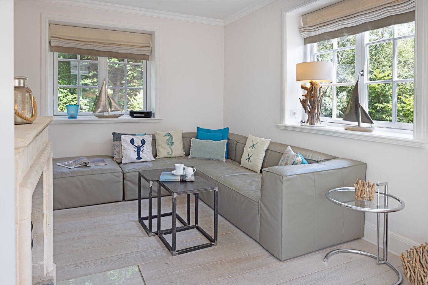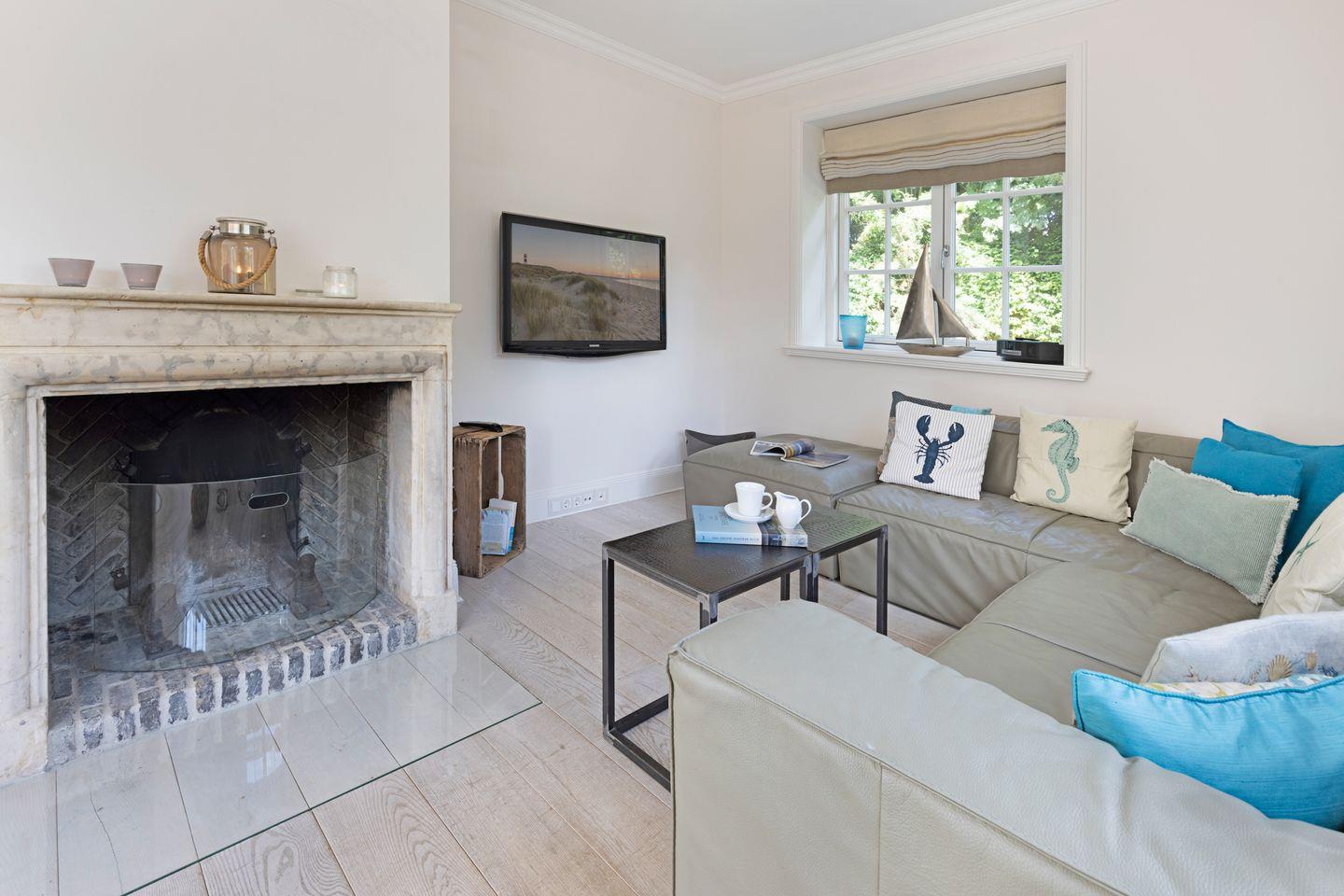 Luxuriöses familienfreundliches Traumdoppelhaus für bis zu vier Personen mit Sauna, offenem Kamin, Garten und Terrasse in Strandnähe.