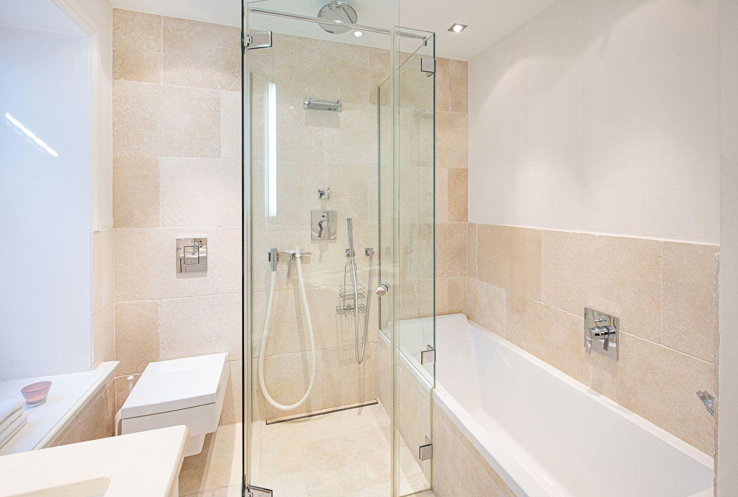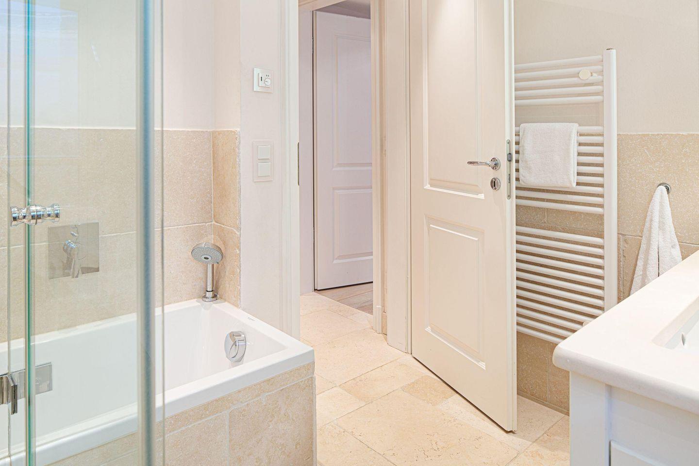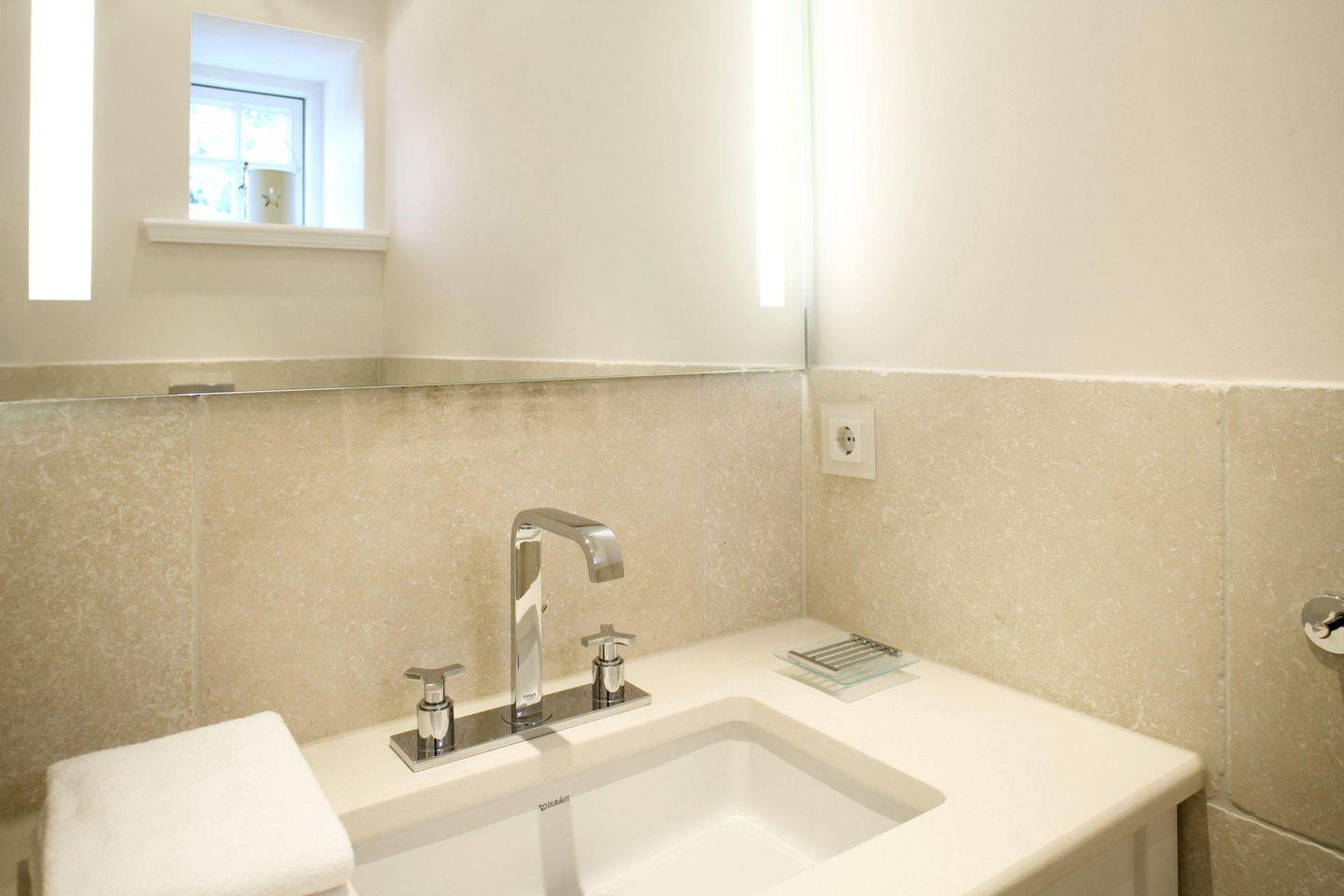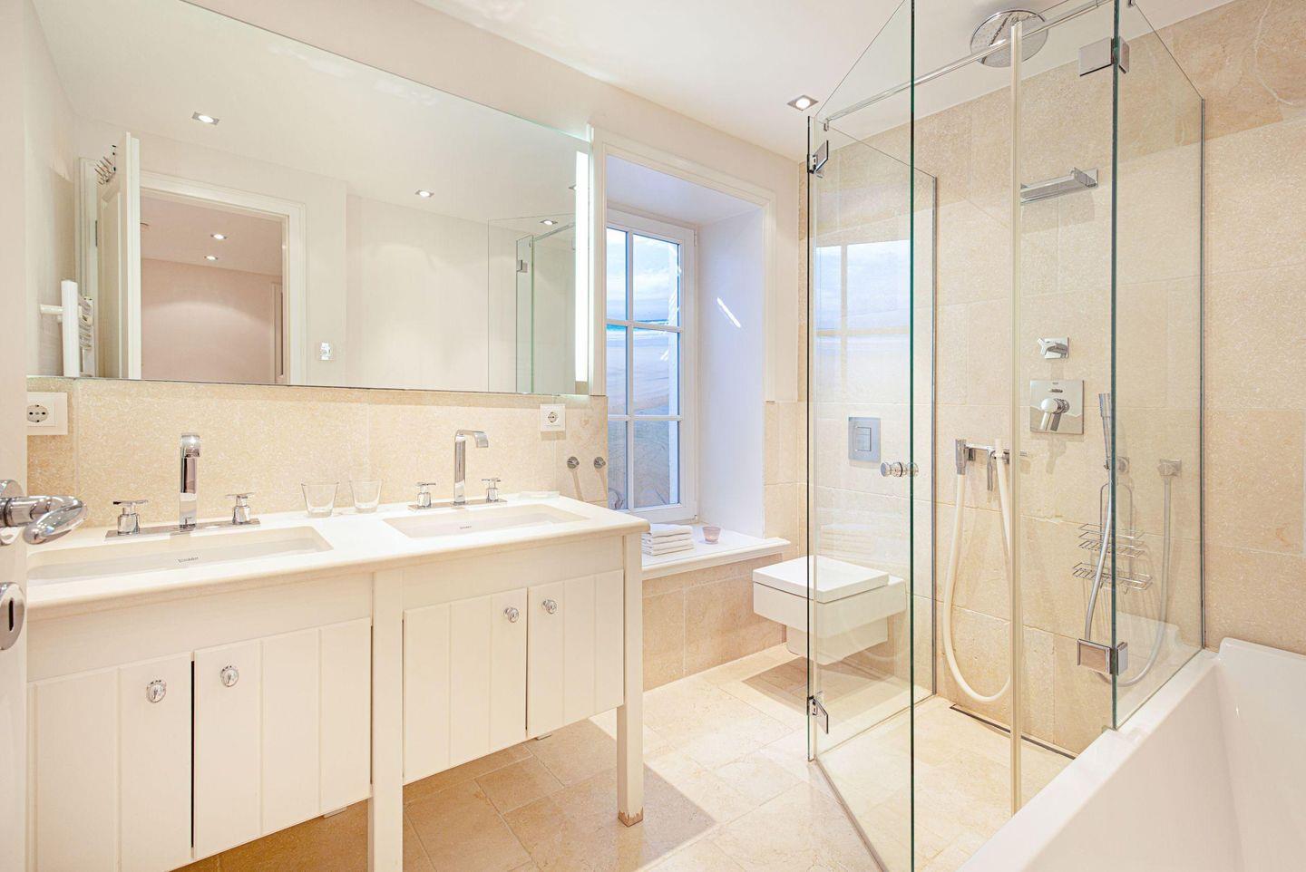 Im Souterrain befindet sich ein Badezimmer mitsamt Dusche und Badewanne sowie ein Gäste-WC.