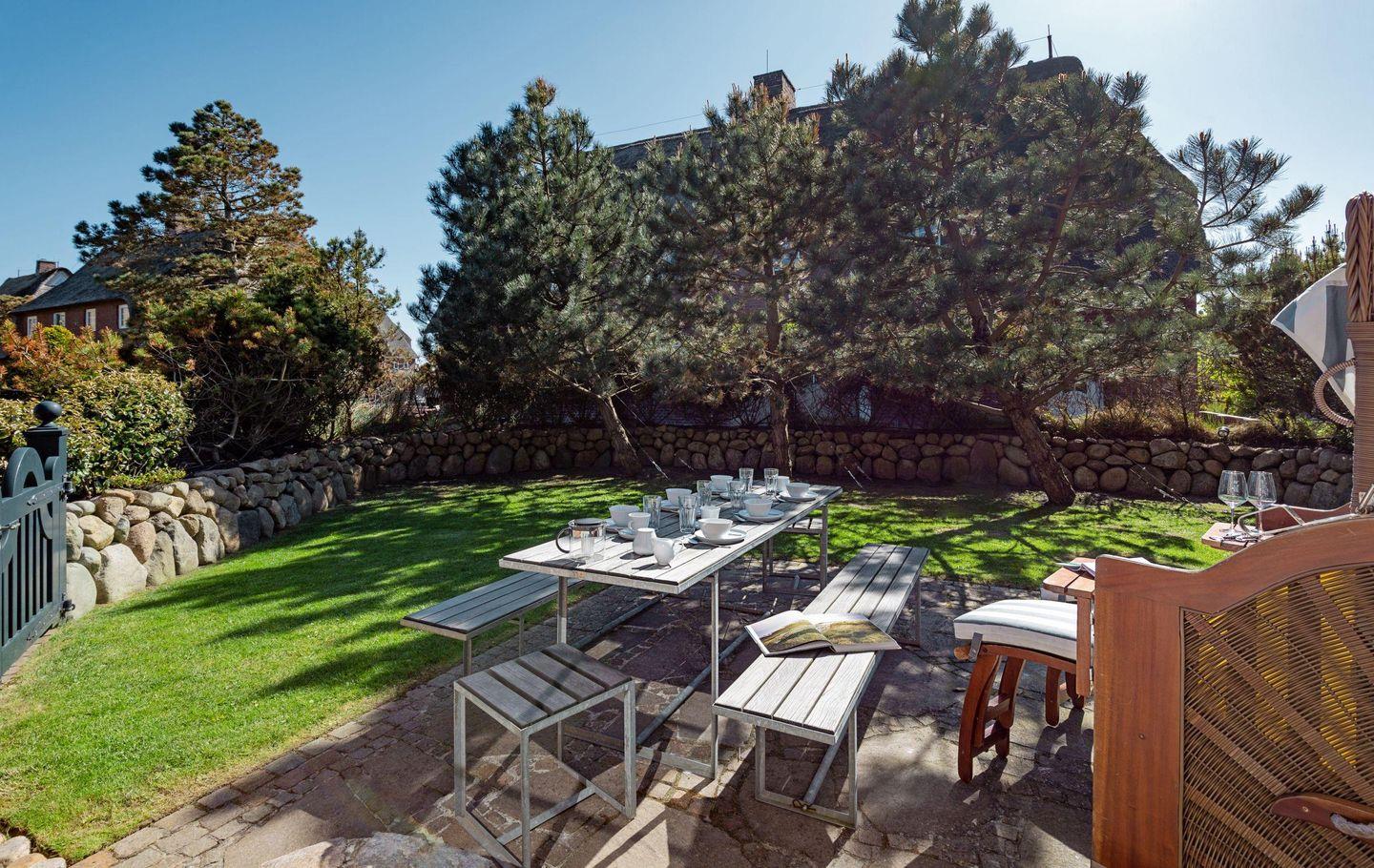 Ein Garten mit Terrasse lädt zum Verweilen und Erholen ein.