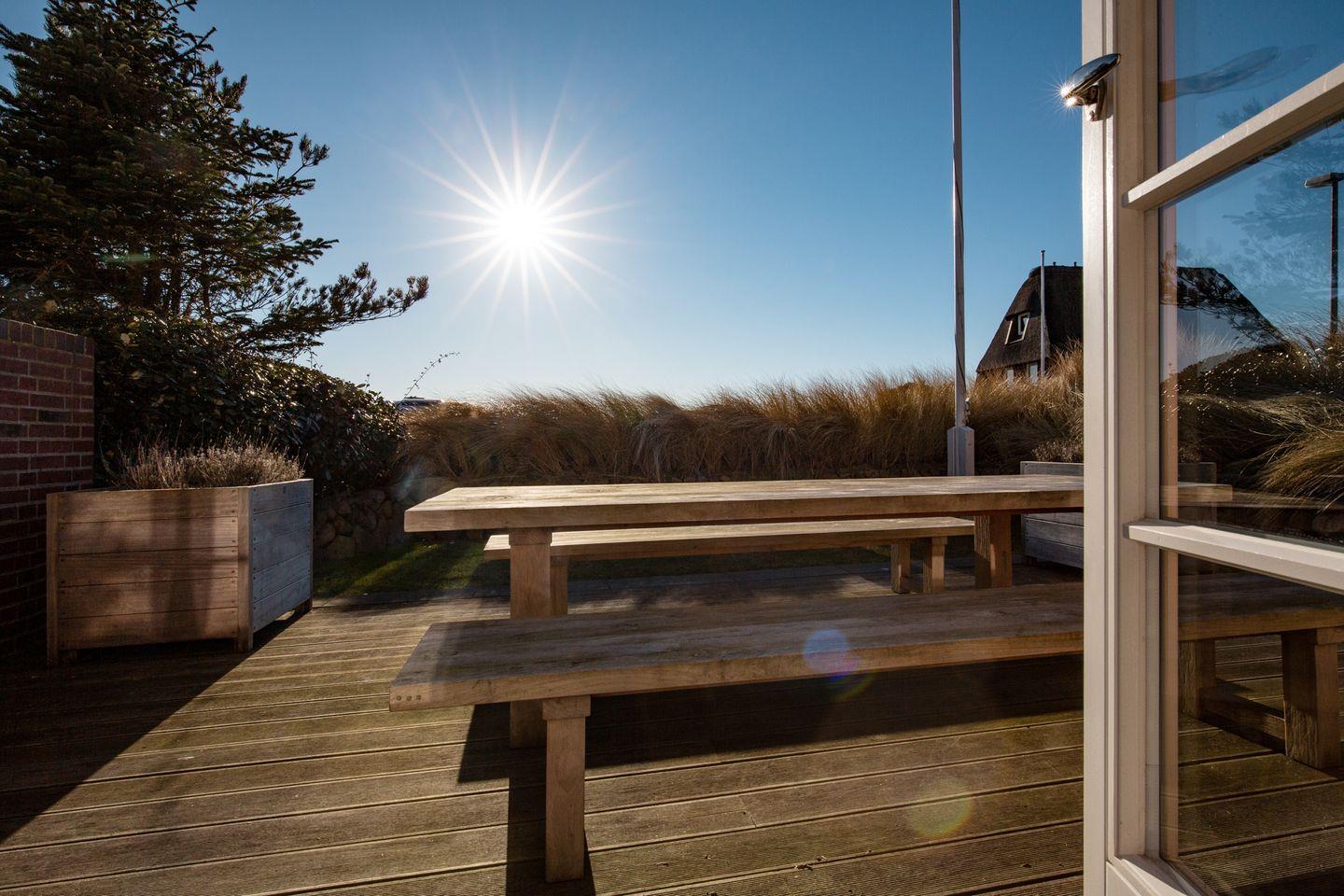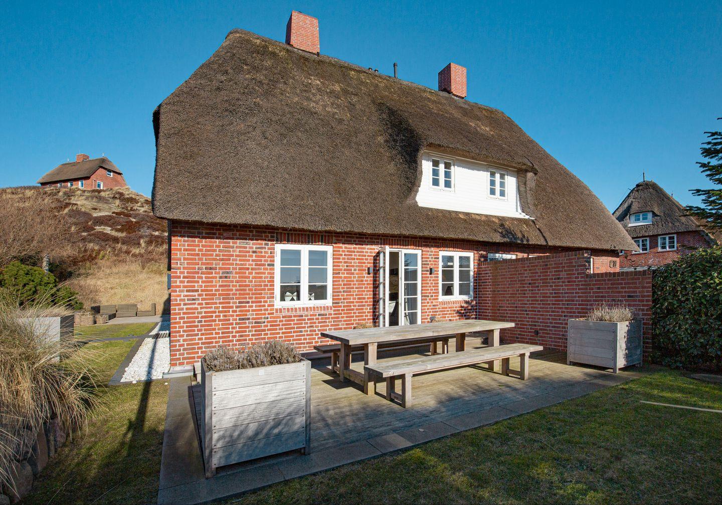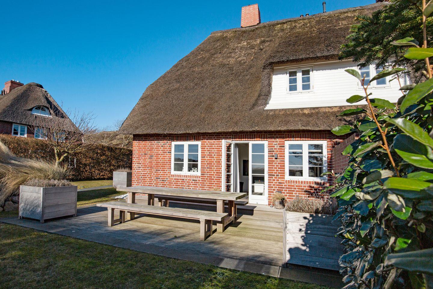 Luxuriöses Feriendoppelhaus in List auf Sylt mit Sauna, Kamin, großer Terrasse und Garten.