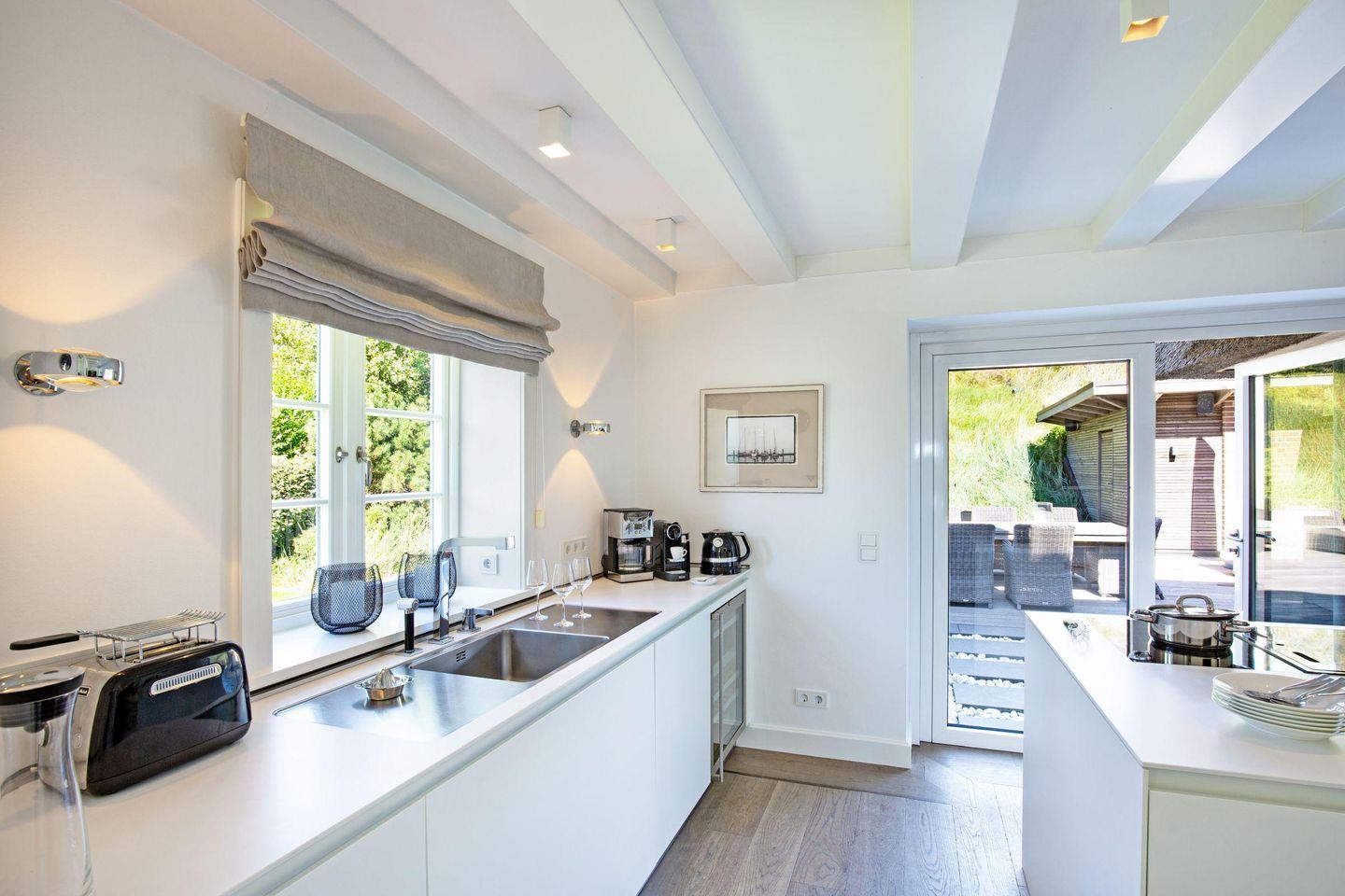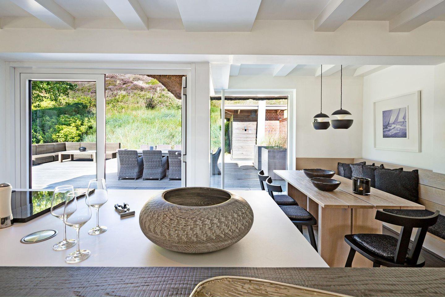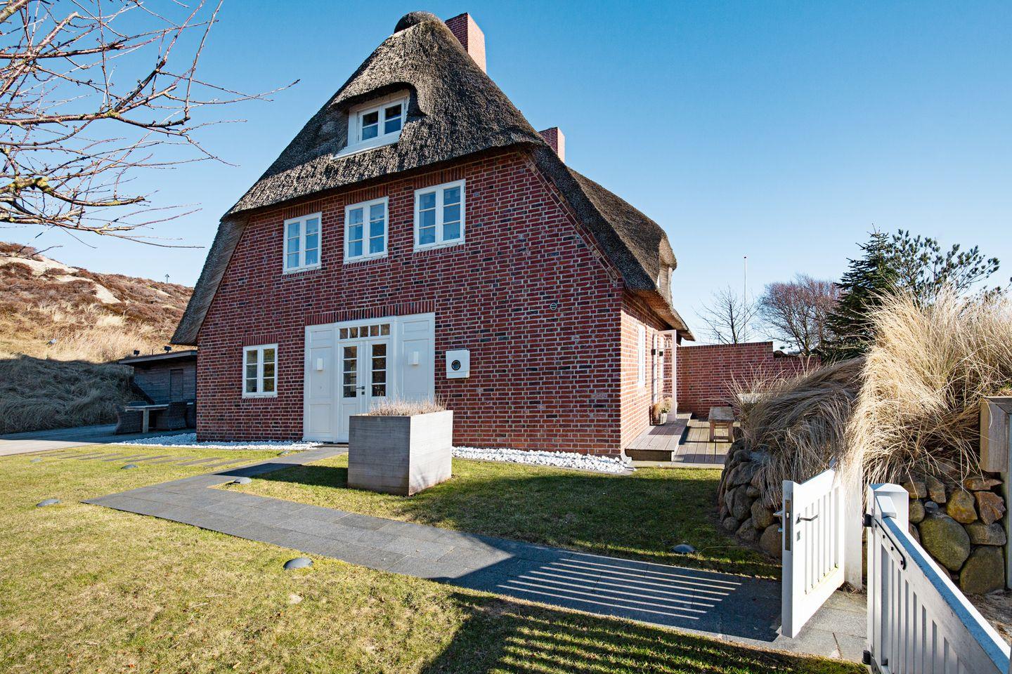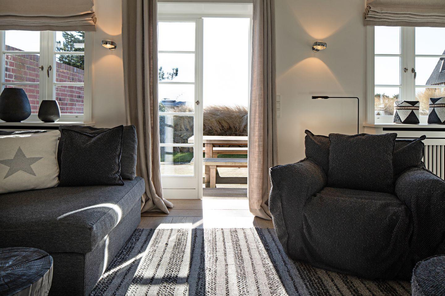 Luxuriöses Feriendoppelhaus in List auf Sylt mit Sauna, Kamin, großer Terrasse und Garten.