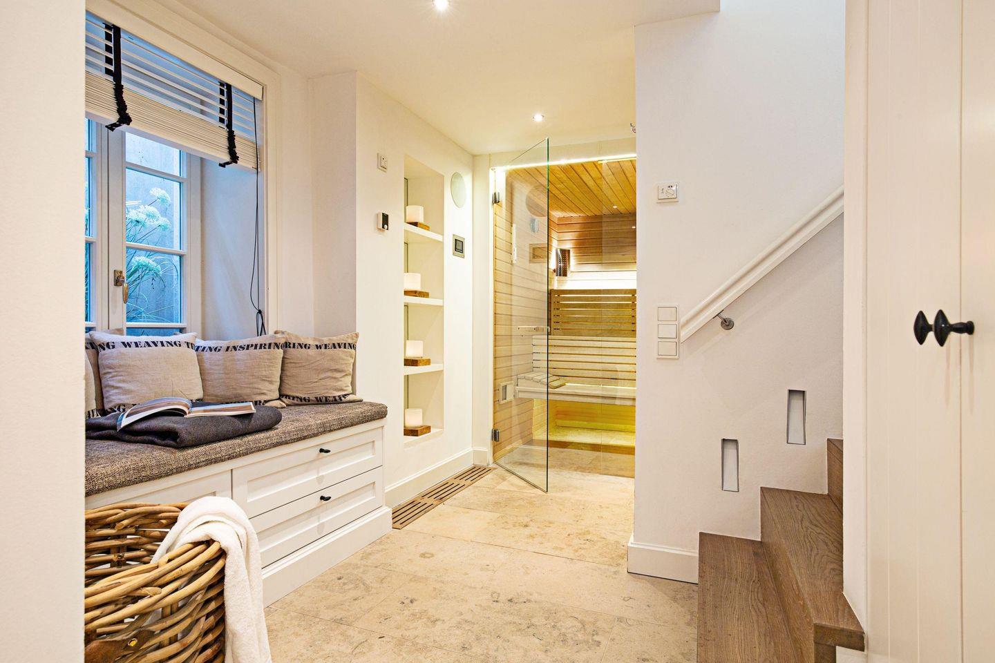 In der Sauna im UG können Sie auch an kälteren Tagen herrlich entspannen, hier steht Ihnen ein weitere Dusche und ein Gäste-WC zur Verfügung. Waschmaschine und Trockner sind vorhanden.