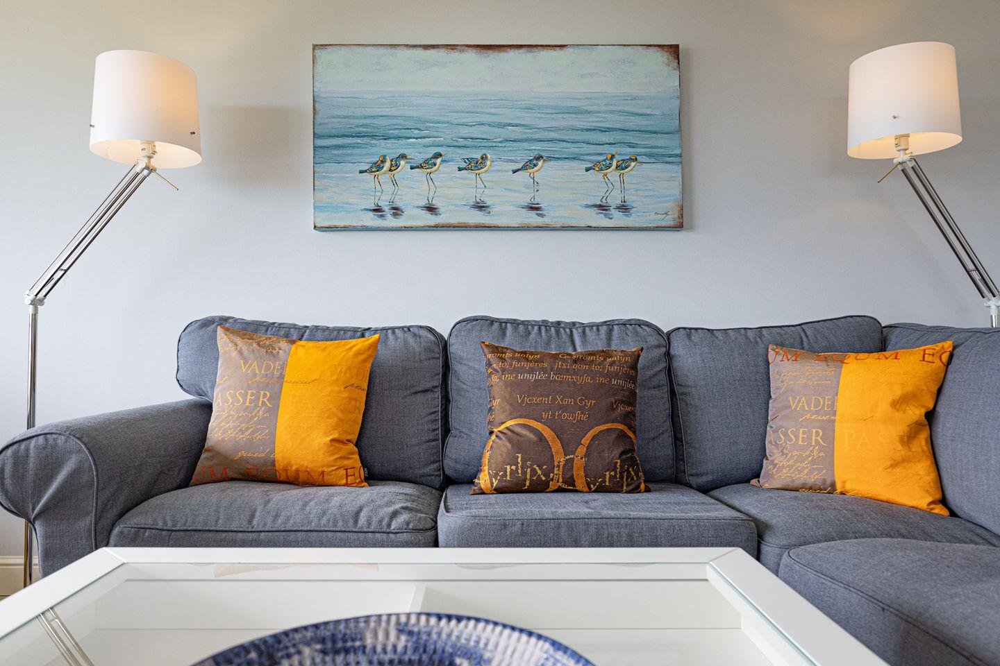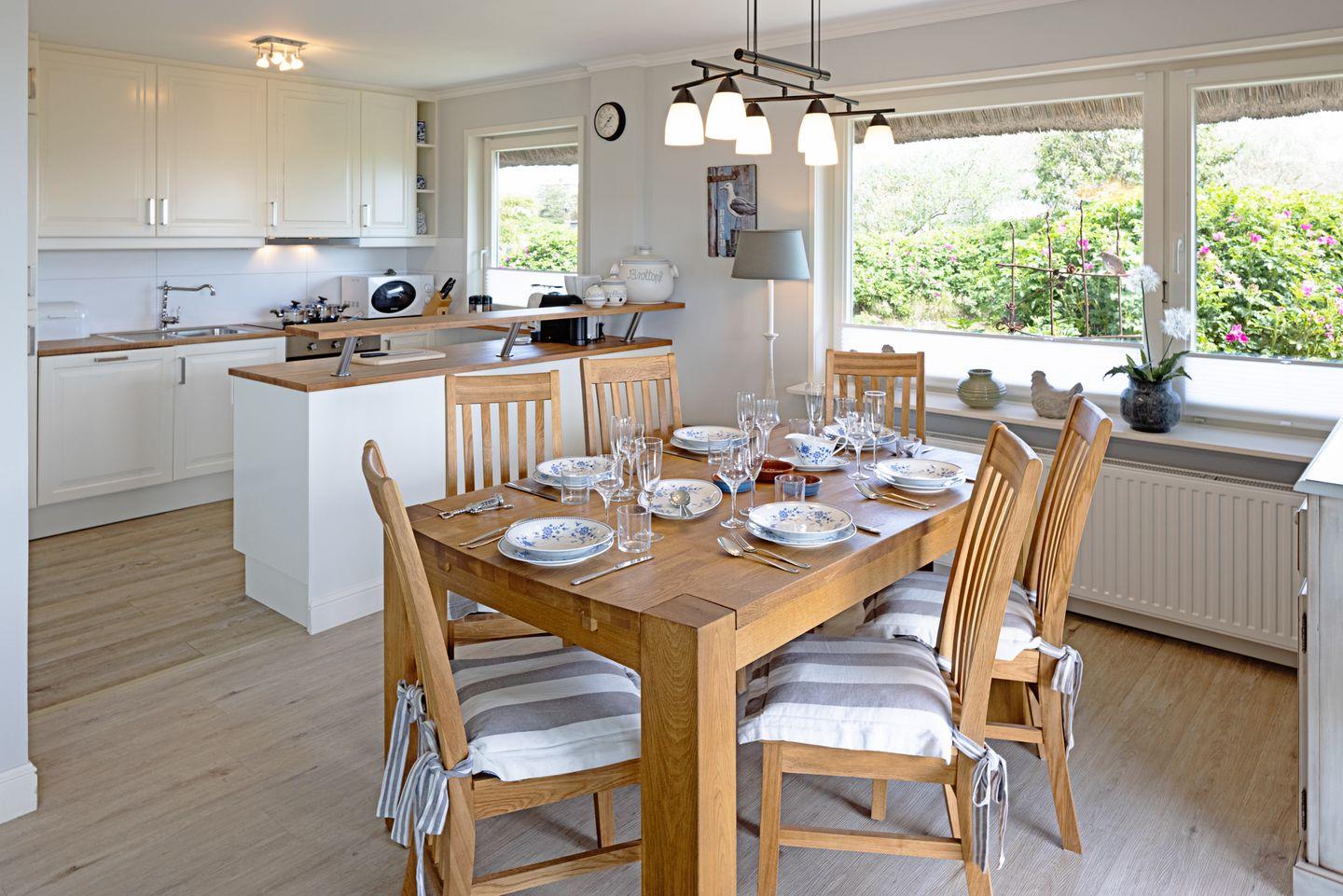 Genießen Sie den direkten Meeresblick durch das große Panoramafenster. Vom Esstisch aus können Sie Ihren Blick durch den schön angelegten Garten mit Sonnenkuhle und gemauerter Rundtischgruppe schweifen lassen.