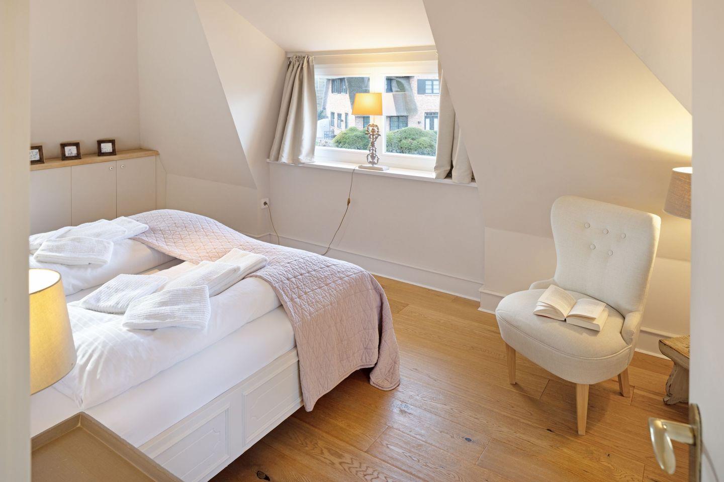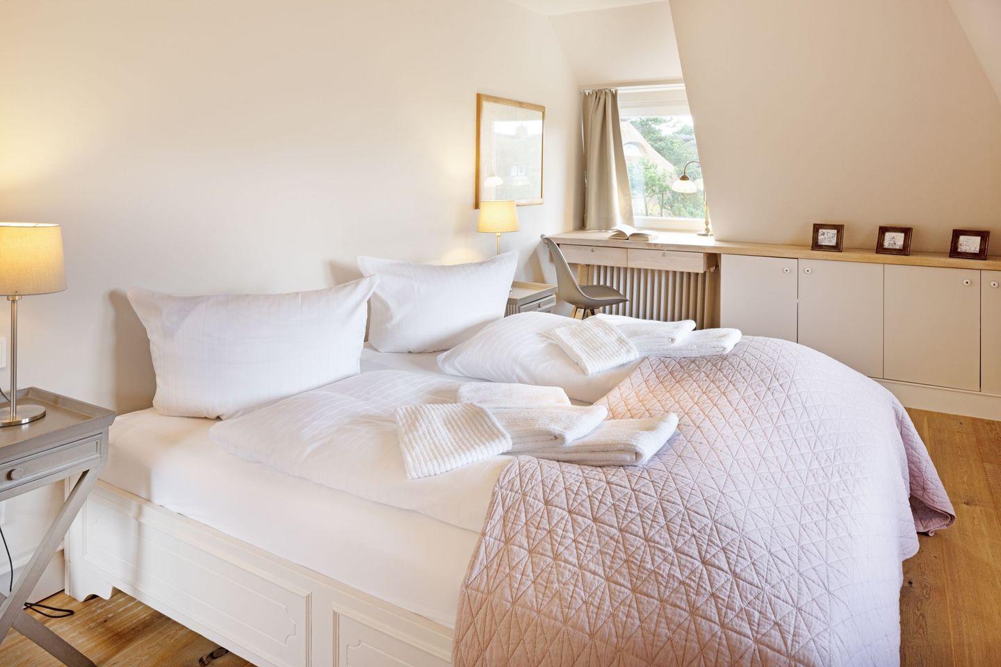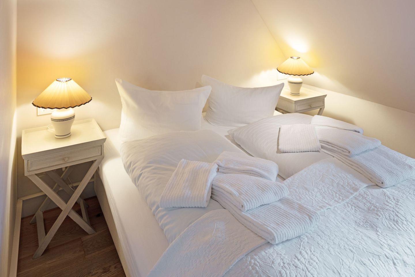 Im ersten Stock befinden sich zwei Schlafräume, beide mit Doppelbett und Ihr Wannenbad.