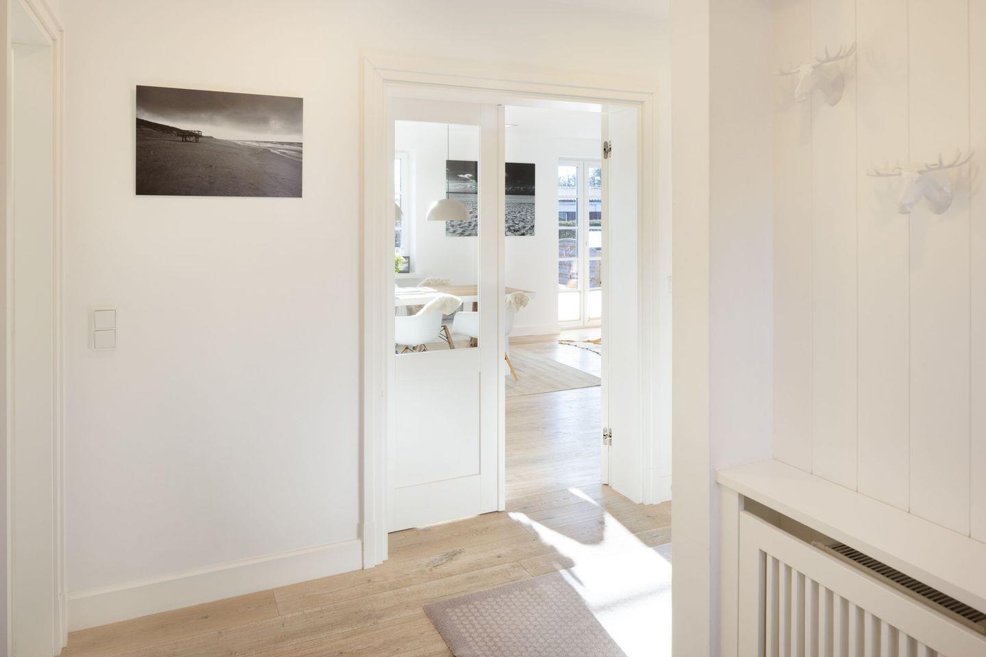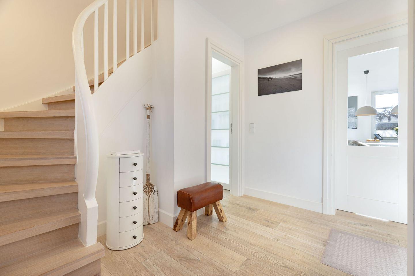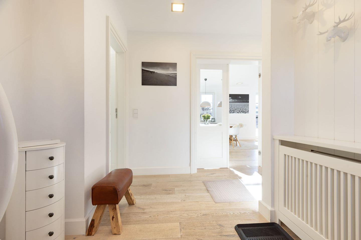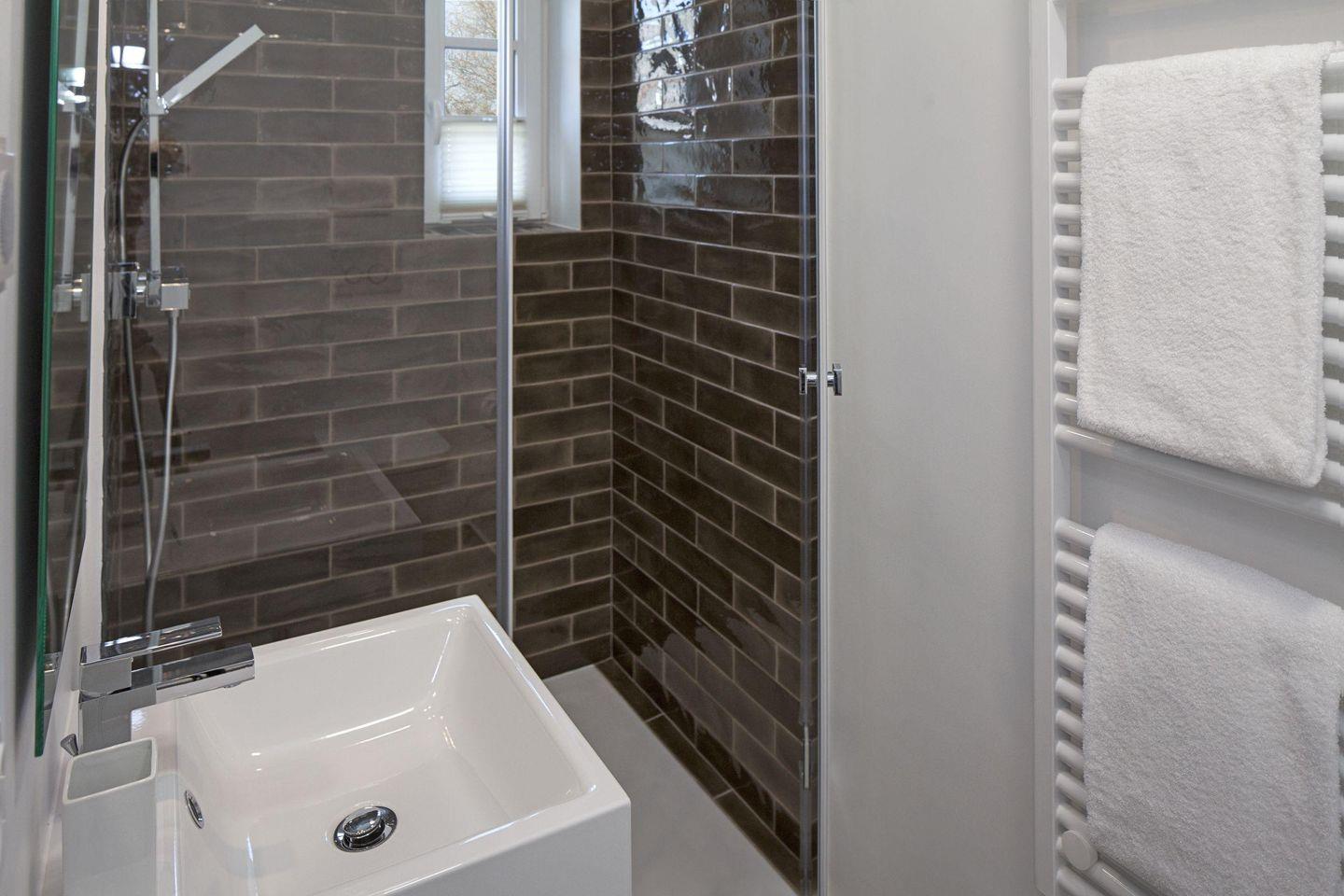 Es verfügt im 1. Stock über ein Schlafzimmer mit Doppelbett, ein Schlafzimmer mit Doppelbett und Bad en suite und einem weiteren Schlafzimmer mit Einzelbett und Etagenbett. Außerdem bietet das Bootsmanns Hüs mit ein Wannenbad, ein Duschbad und ein Gäste-WC dieses befindet sich im Erdgeschoss.