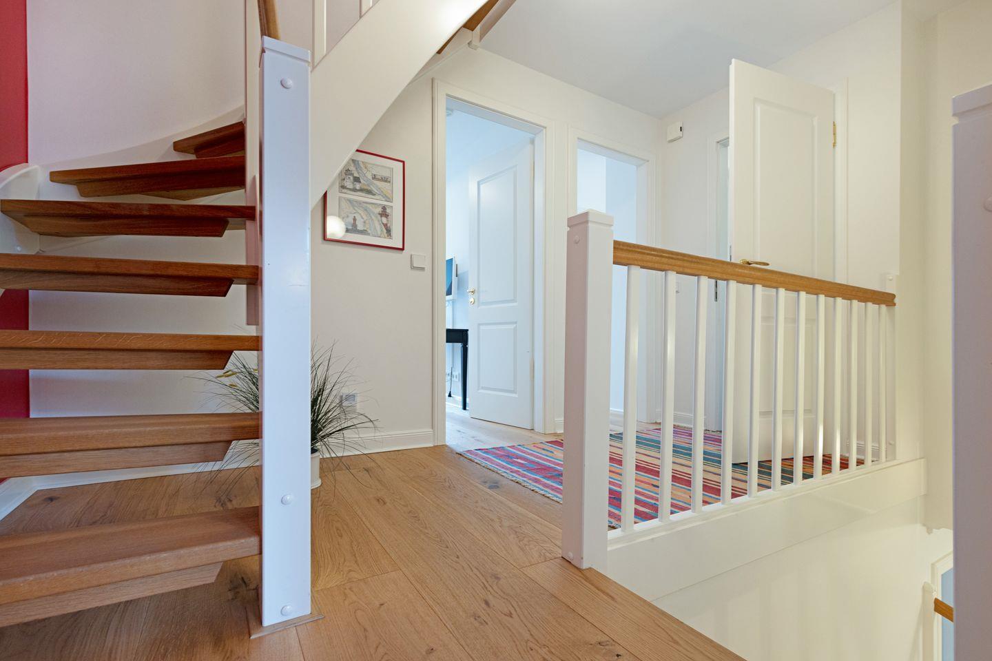 Im Dachgeschoss (stark ansteigende Treppe) befindet sich ein Schlafzimmer mit Doppelbett und ein Gäste-WC. Ein zusätzliches Bad gibt es im EG.