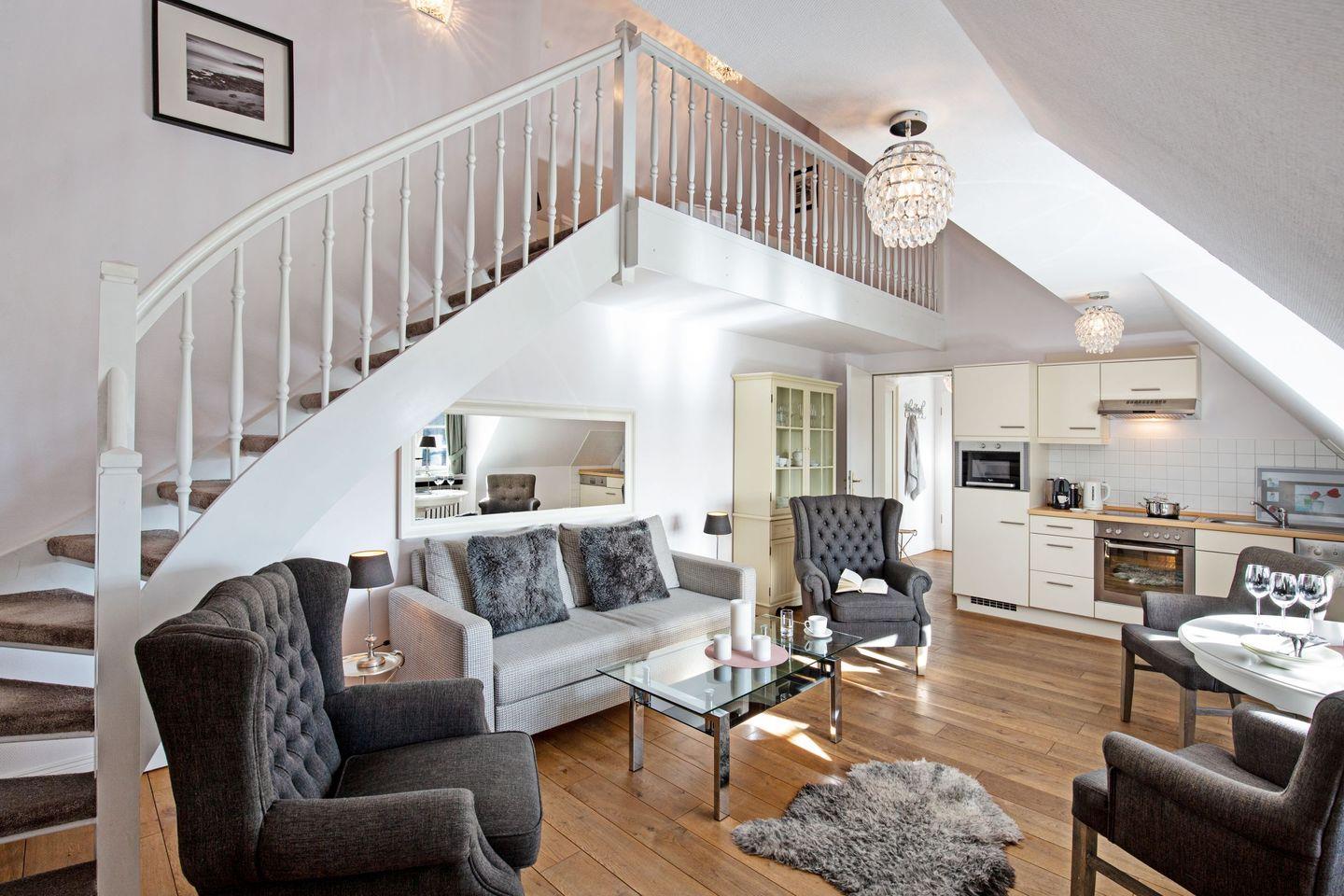 Stilvolles Dachgeschoss-Appartement in List mit Terrasse und eigenem Parkplatz, ideal für 2 Personen und nah am Strand gelegen.