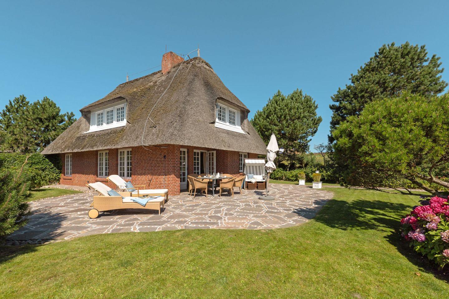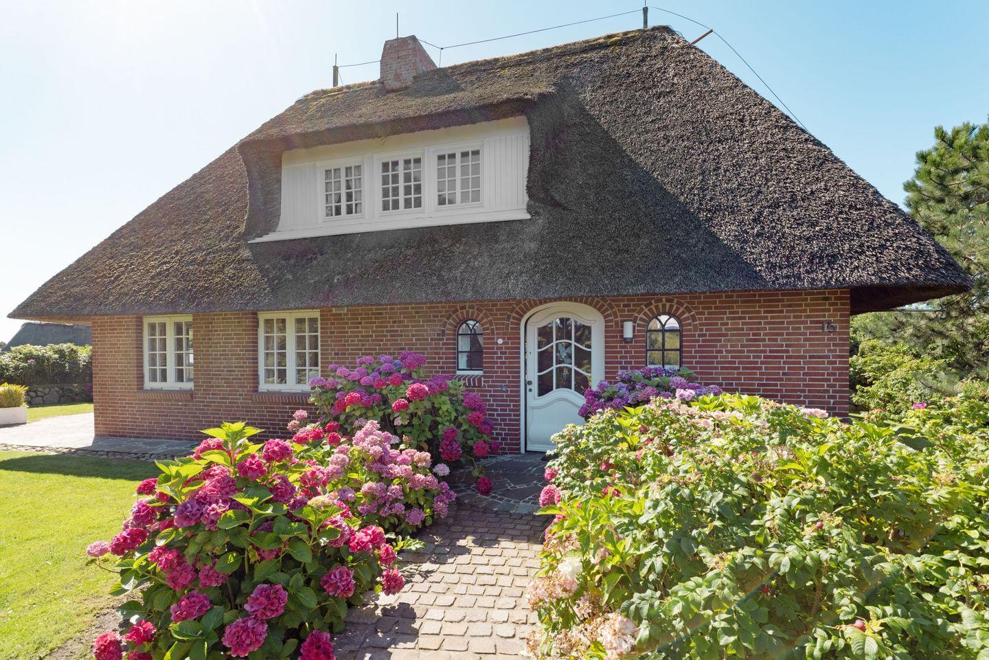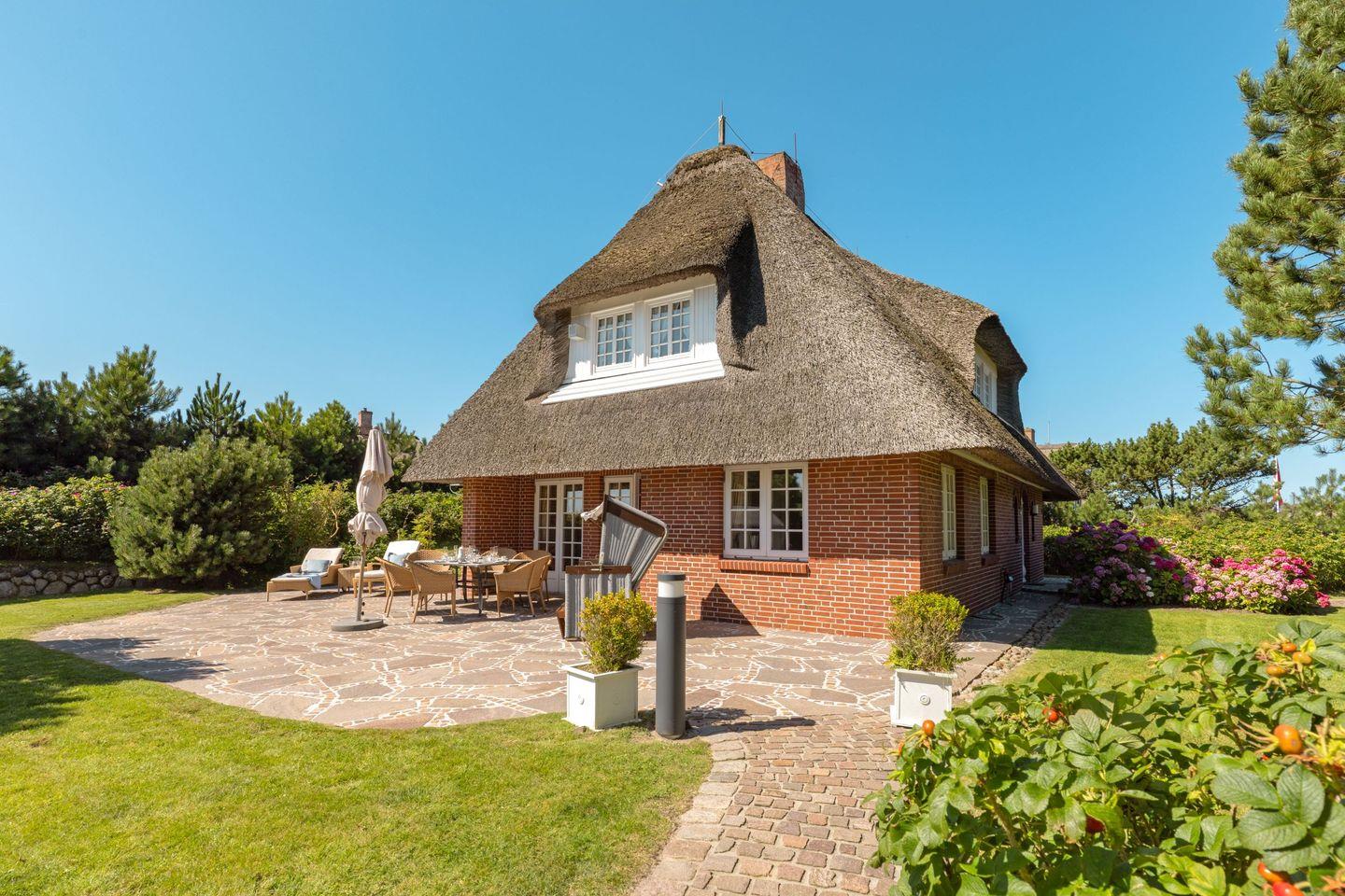 Das im Süderheidetal in List auf Sylt gelegene Ferienhaus "Odu" unter Reet bietet auf 140 m² Platz für bis zu sechs Personen.
