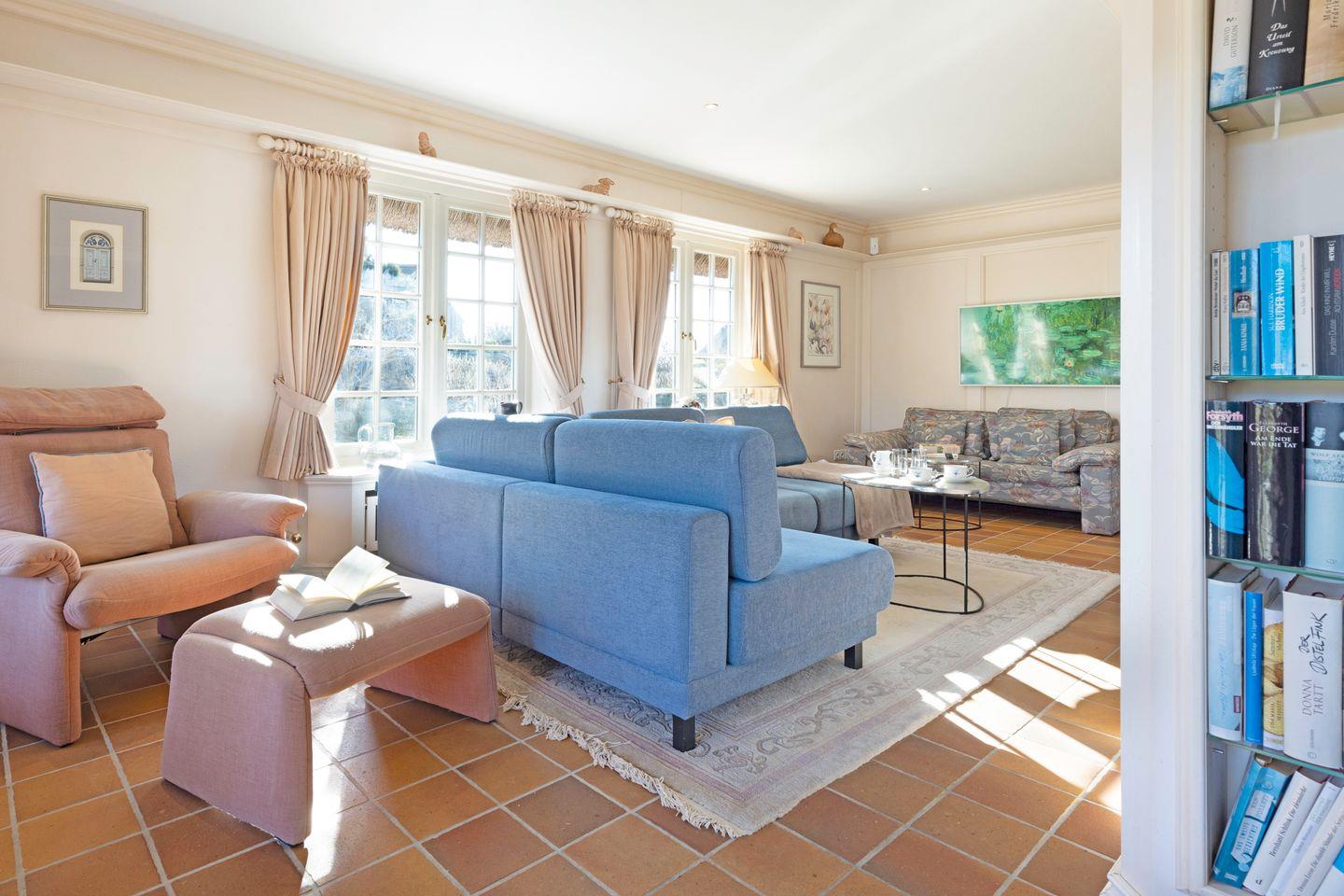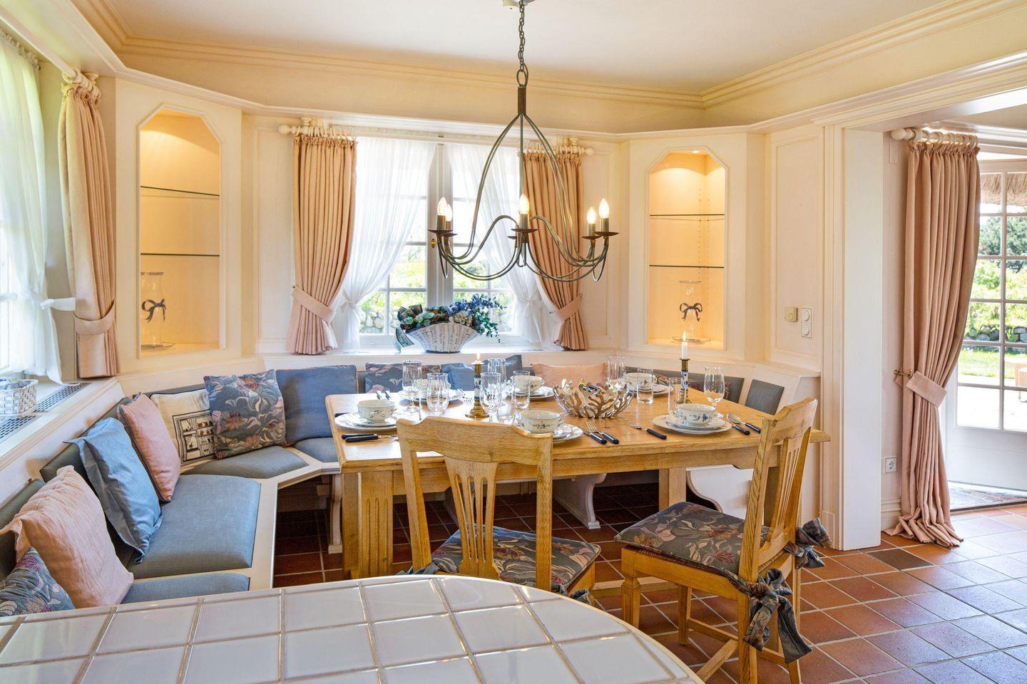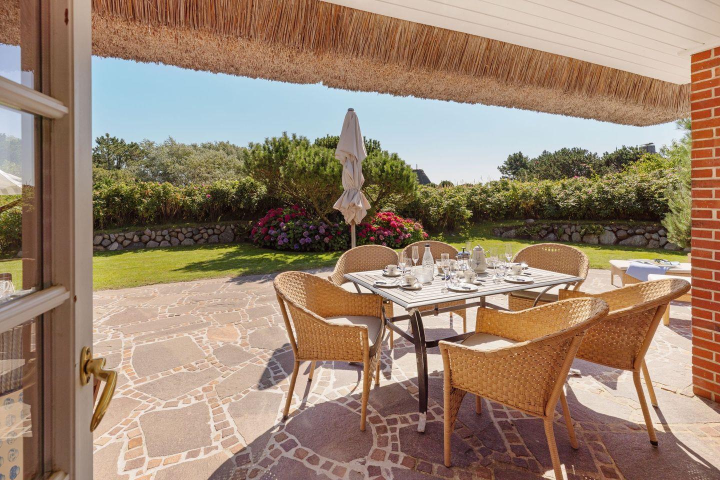 Das im Süderheidetal in List auf Sylt gelegene Ferienhaus "Odu" unter Reet bietet auf 140 m² Platz für bis zu sechs Personen.