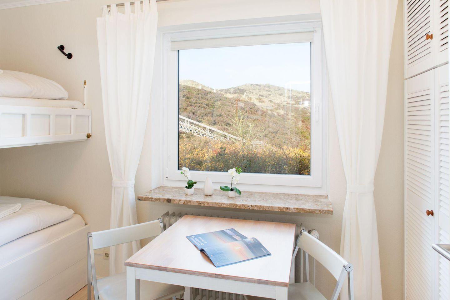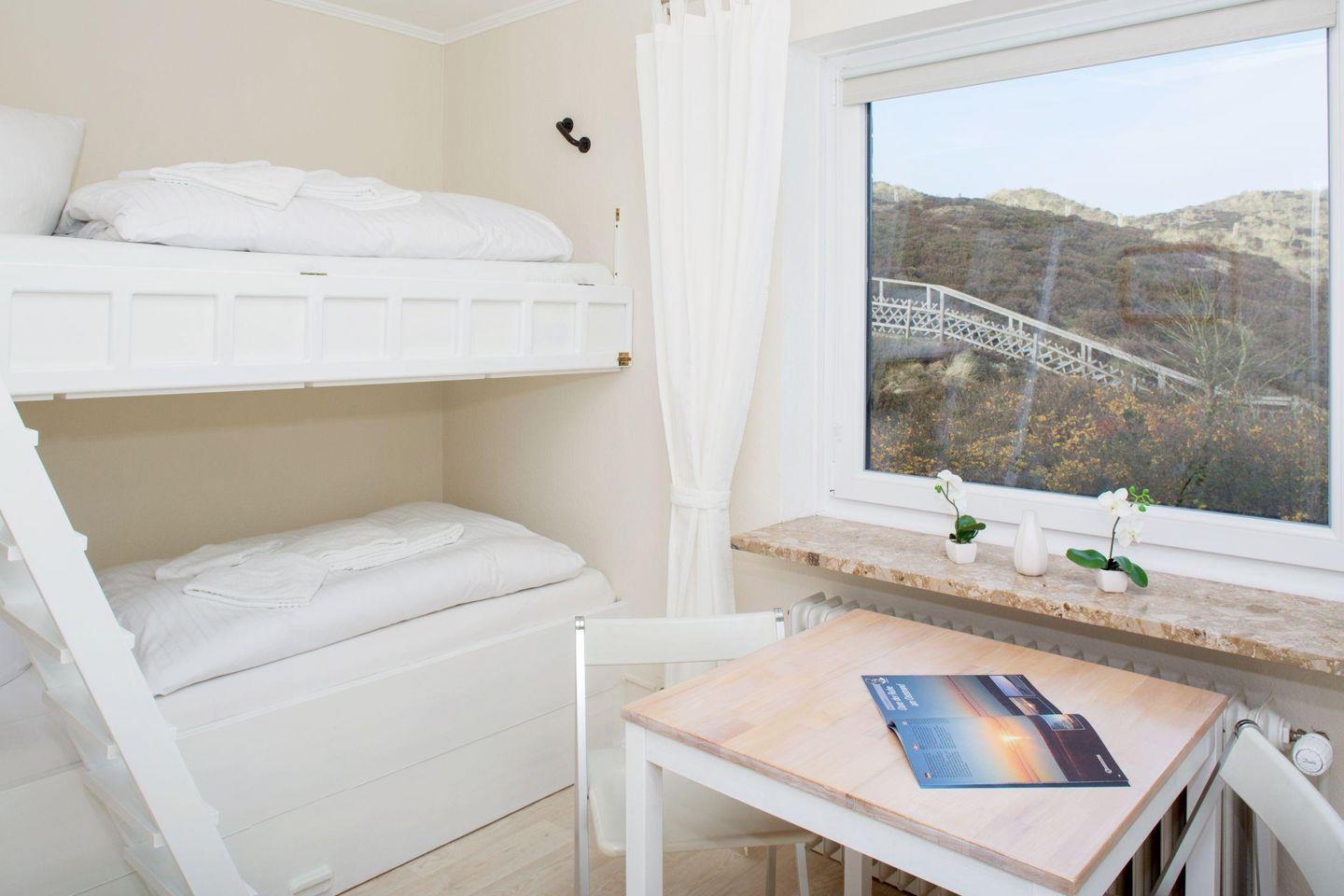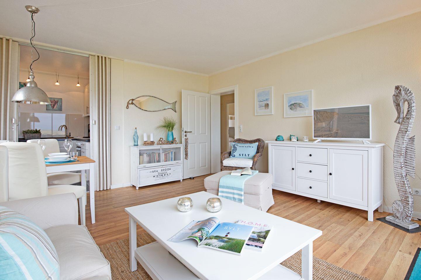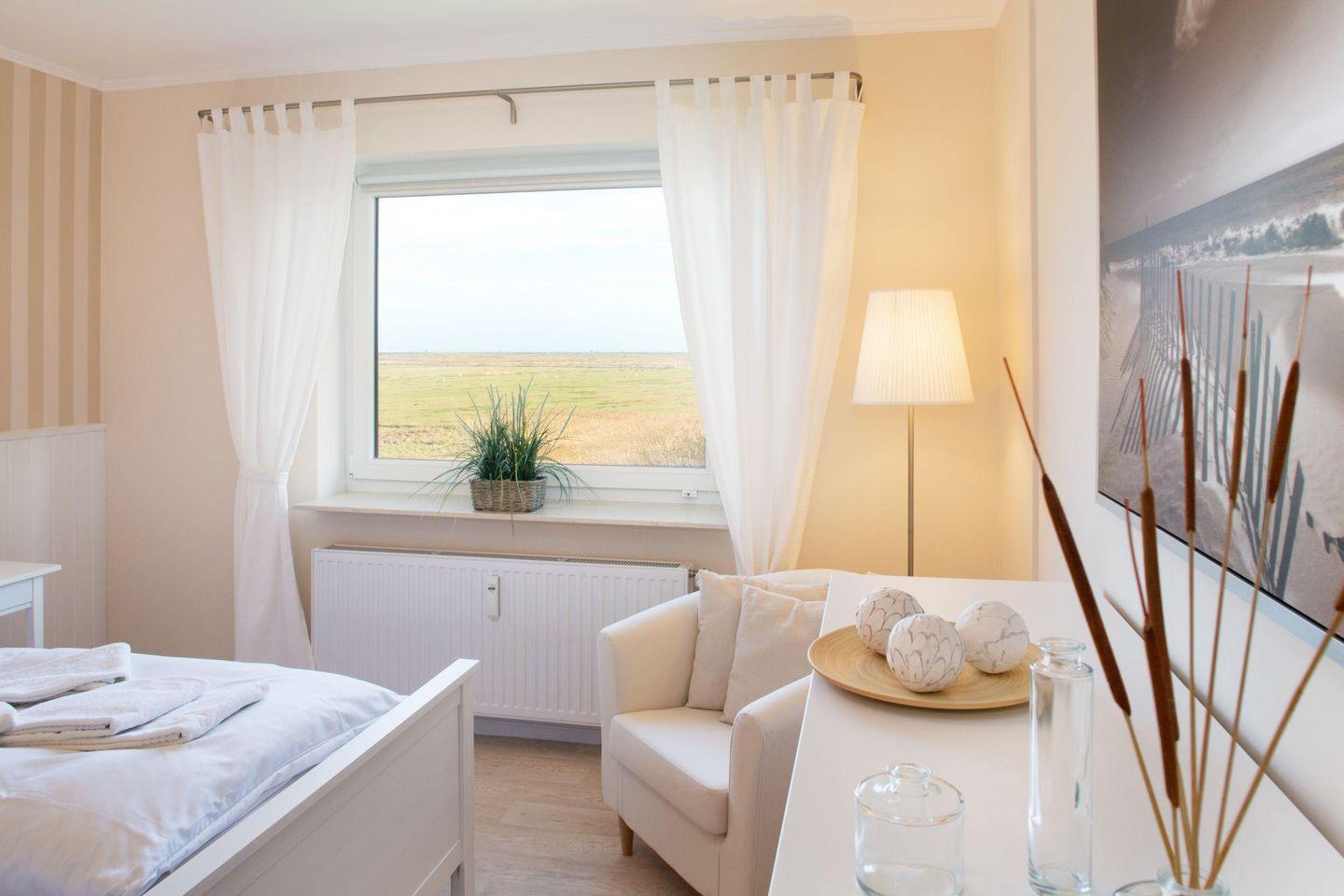 Willkommen im Ferienappartement "Sommer" direkt am Naturschutzgebiet Königshafen. Das im ersten Obergeschoss liegende 60m² große Appartement für 4 Personen hat zwei separate Schlafzimmer mit Doppelbett und Etagenbett. Vom Wohnzimmer kommen Sie auf den Balkon mit Blick über den Königshafen.