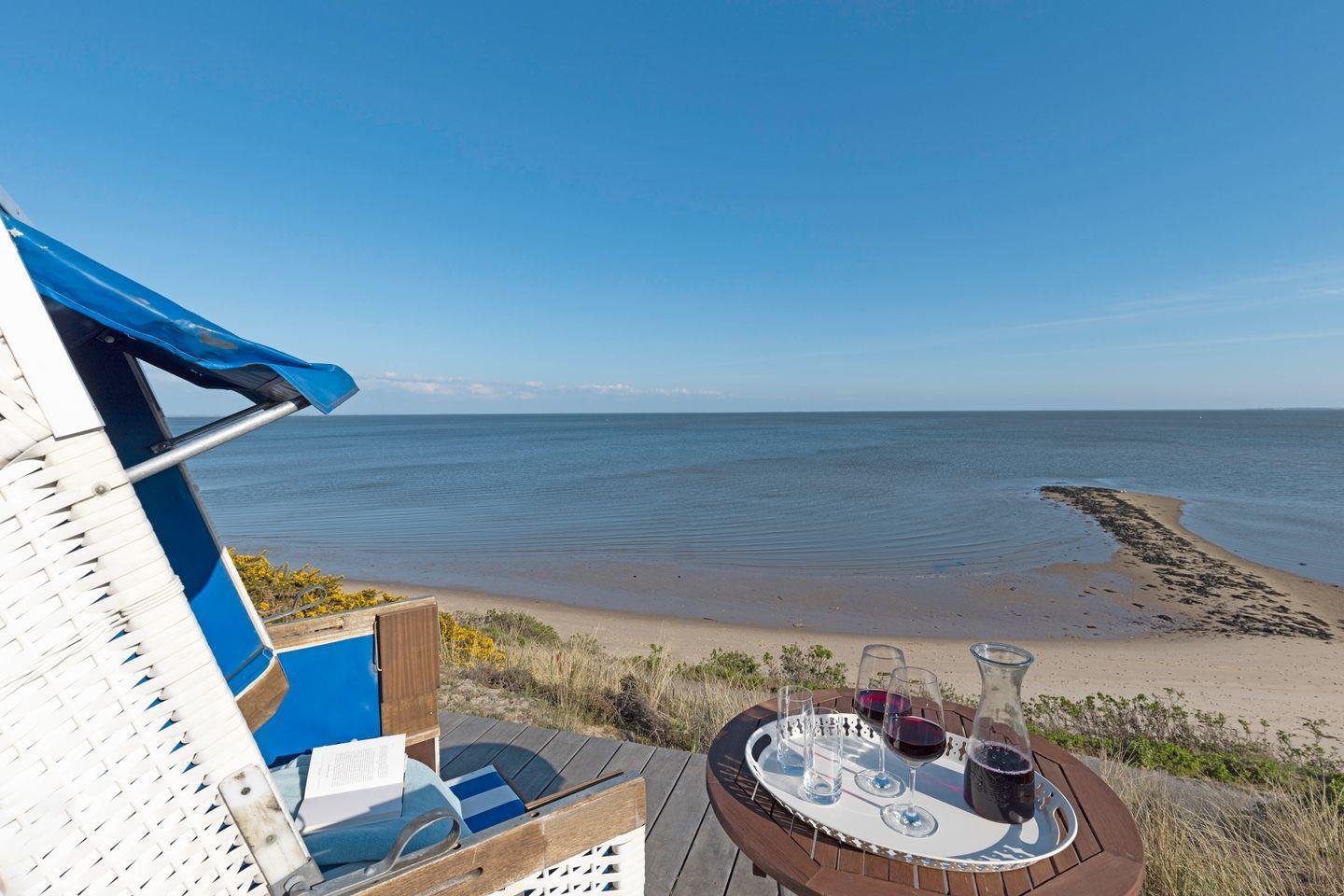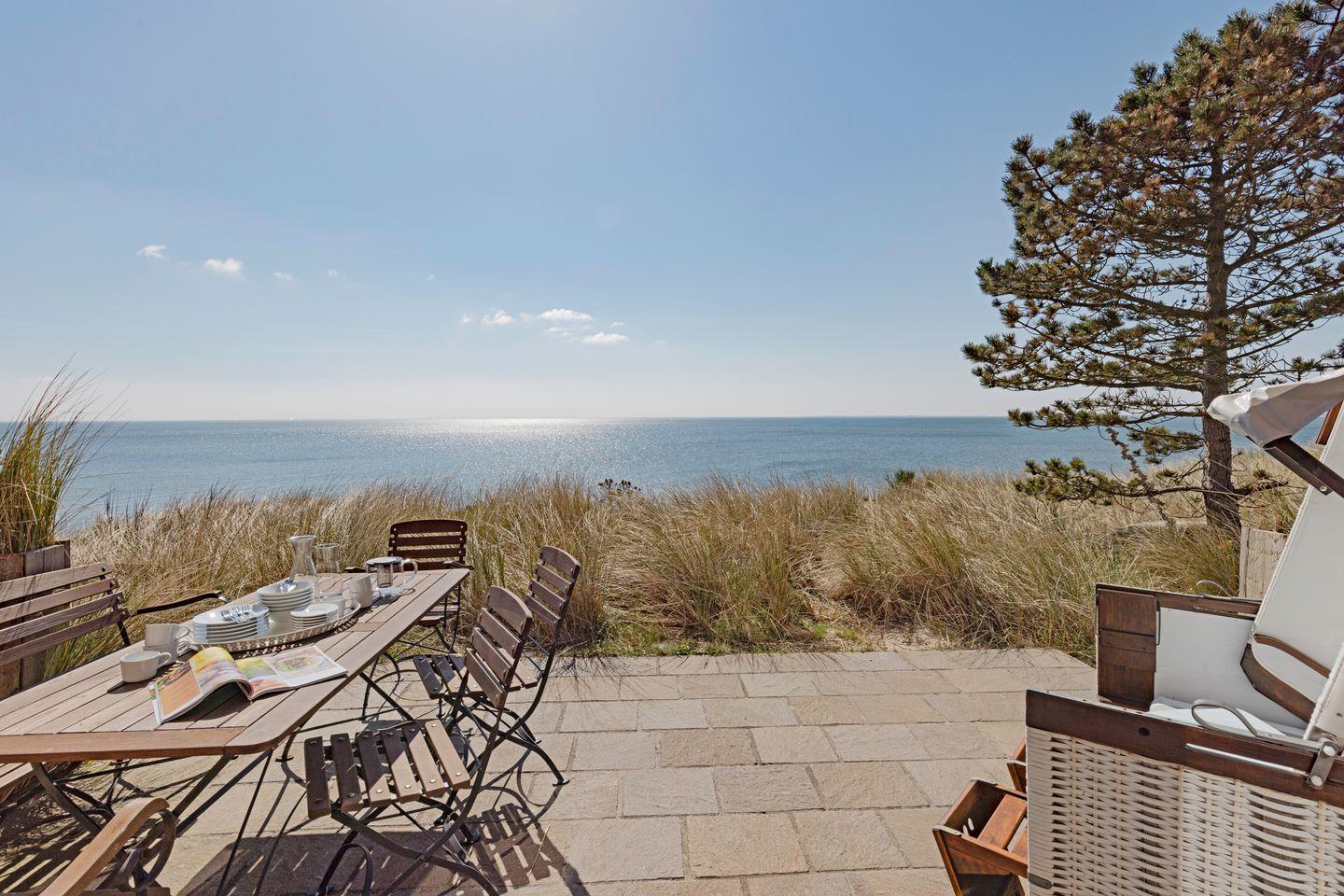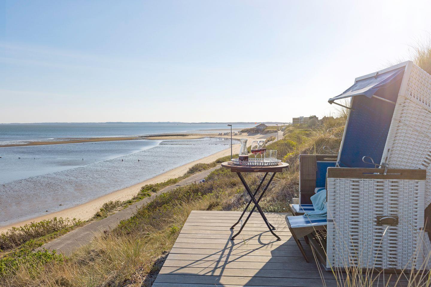 Traumhaftes Appartement mit Sauna, Kamin und direktem Zugang zur Meerterrasse – genießen Sie den unvergleichlichen Blick über den Lister Oststrand.