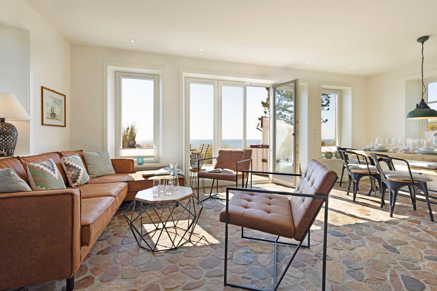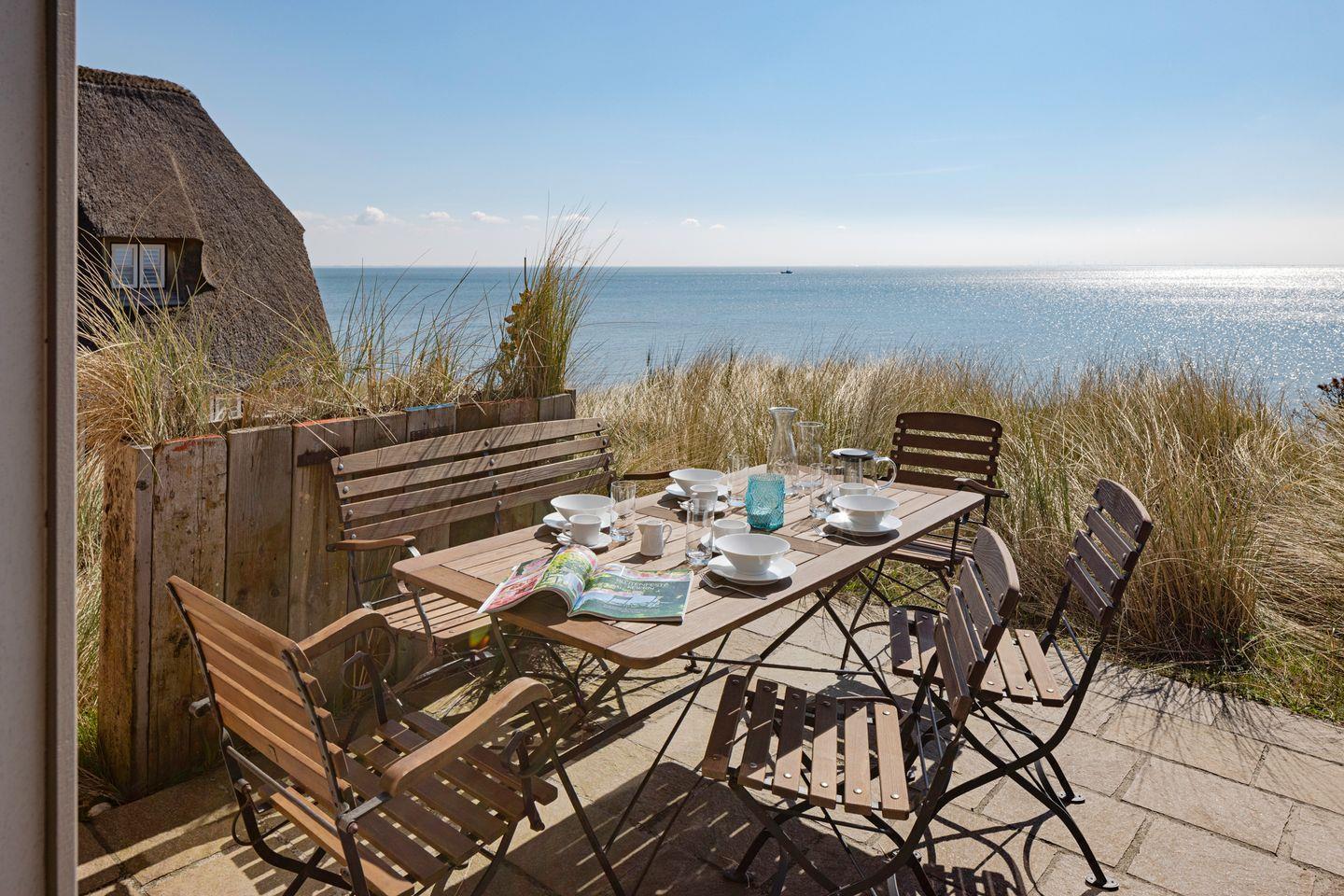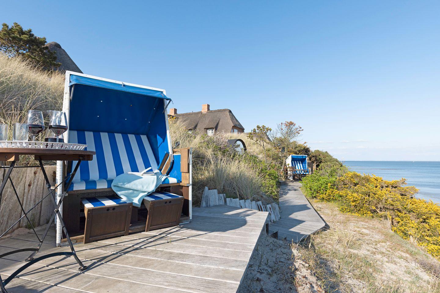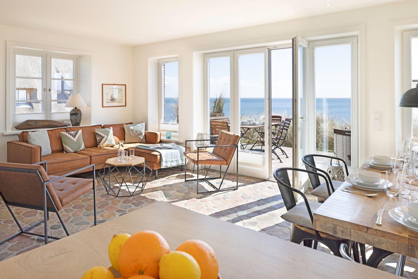 Traumhaftes Appartement mit Sauna, Kamin und direktem Zugang zur Meerterrasse – genießen Sie den unvergleichlichen Blick über den Lister Oststrand.