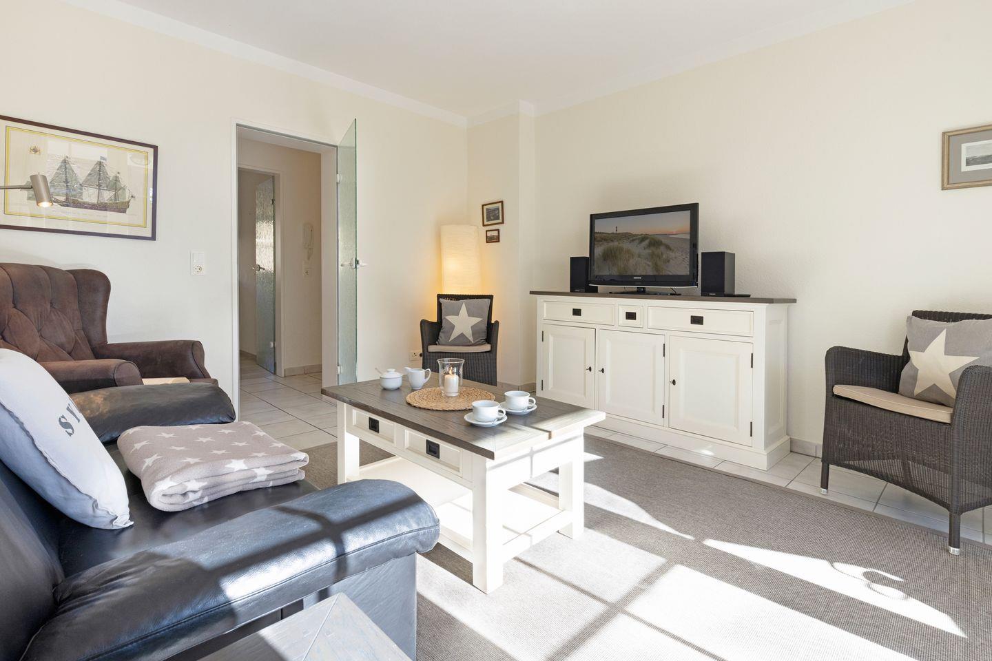 Sie haben einen direkten Terrassenzugang und saisonal Gartenmöbel und einen eigenen Strandkorb im ruhigen Garten.