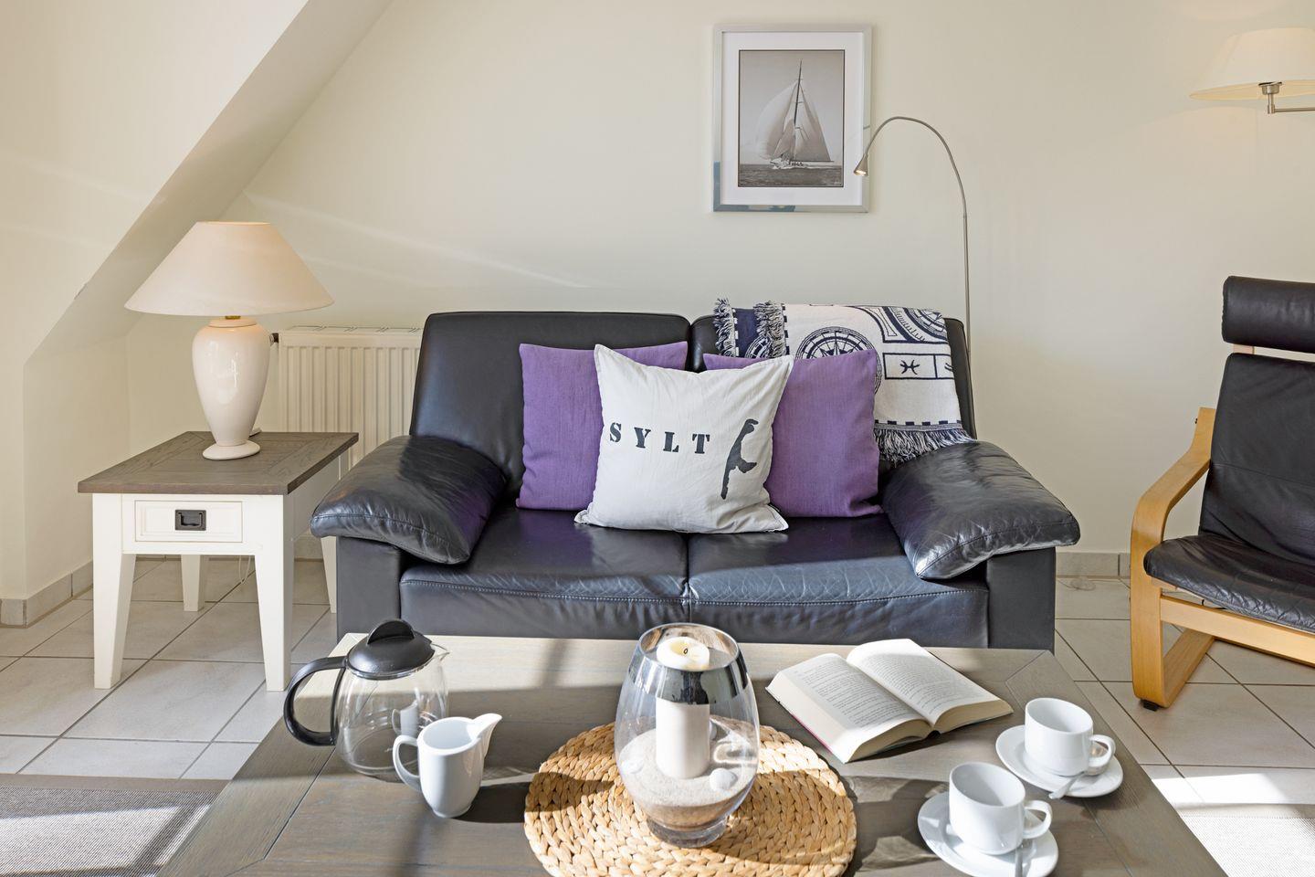 Familienfreundliches Dachgeschoss-Apartment mit großem Balkon, Garten und privatem Strandkorb in ruhiger Lage nahe der Lister Dünenlandschaft.