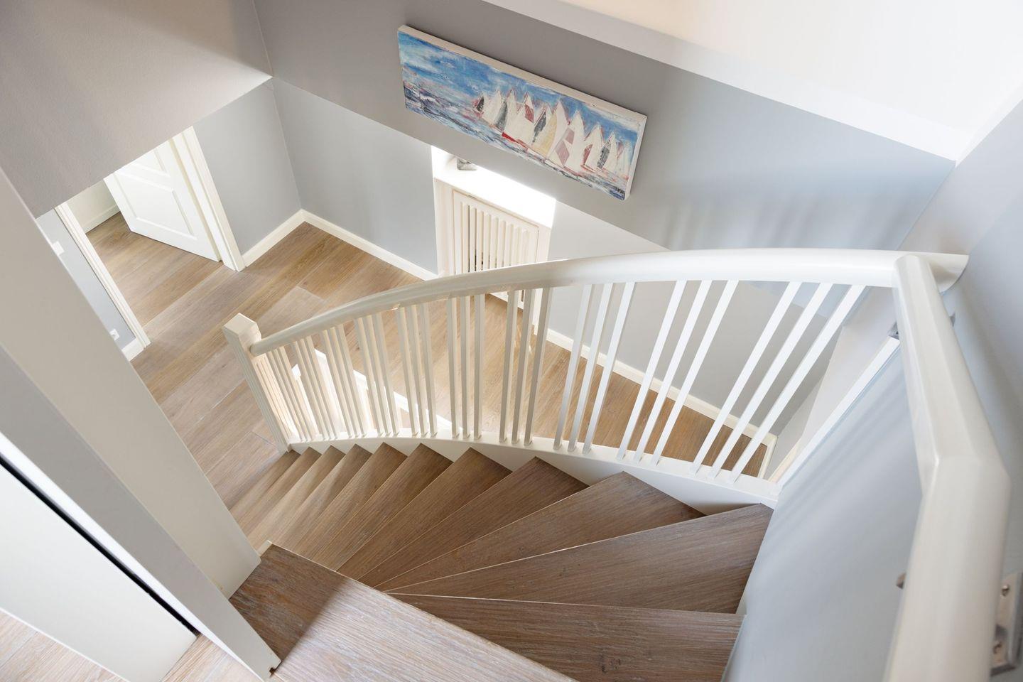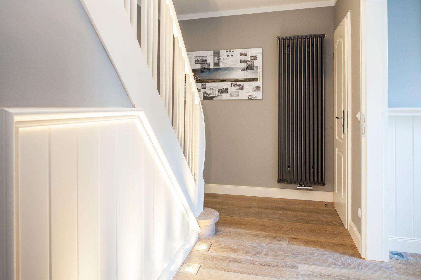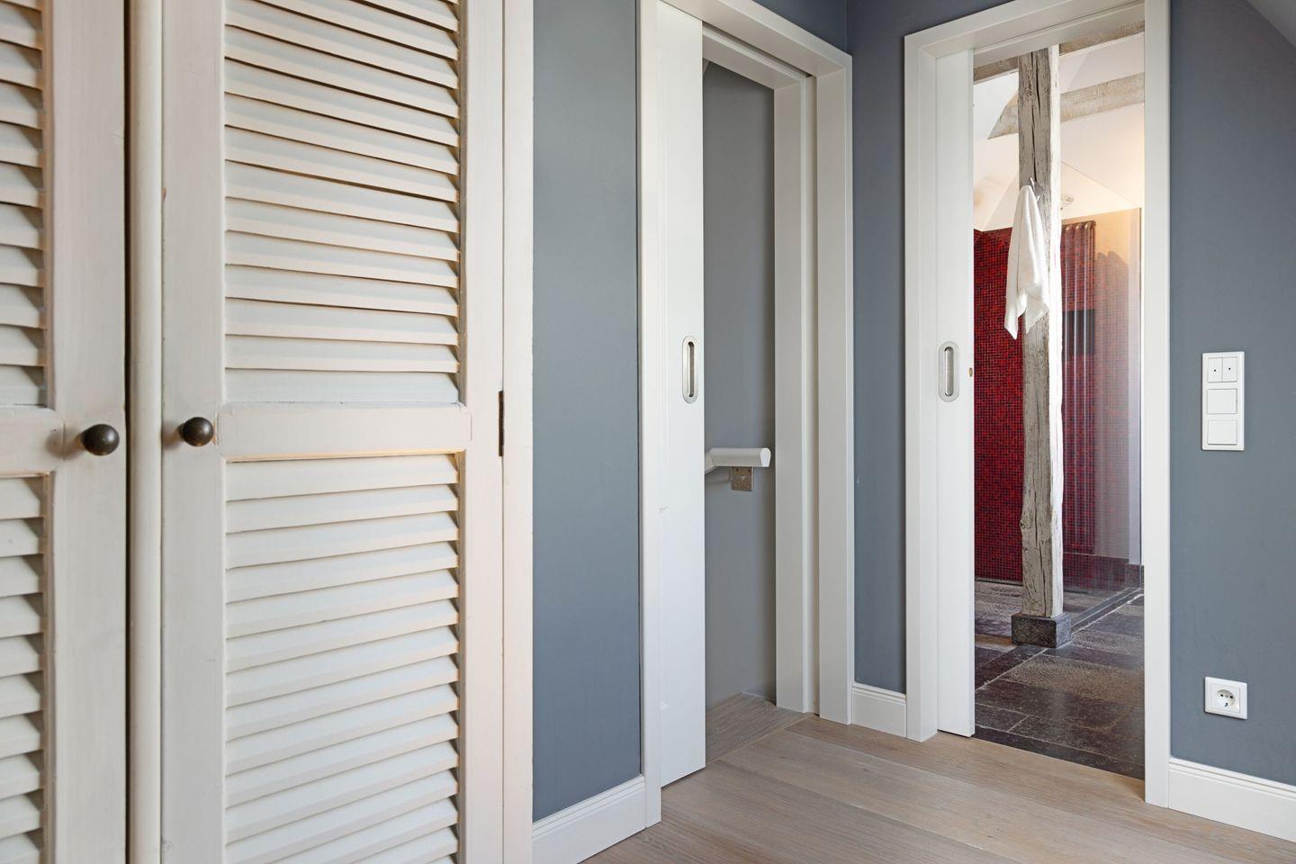 Im 1.Stock befinden sich ein großes Badezimmer mit Dusche und Wanne sowie zwei Schlafzimmer mit Doppelbetten. Von einem dieser Schlafzimmer gelangt man in ein weiteres Schlafzimmer mit Etagenbett für zwei Personen. Im Dachgeschoss befindet sich noch ein Schlafzimmer mit Doppelbett und Duschbad.
