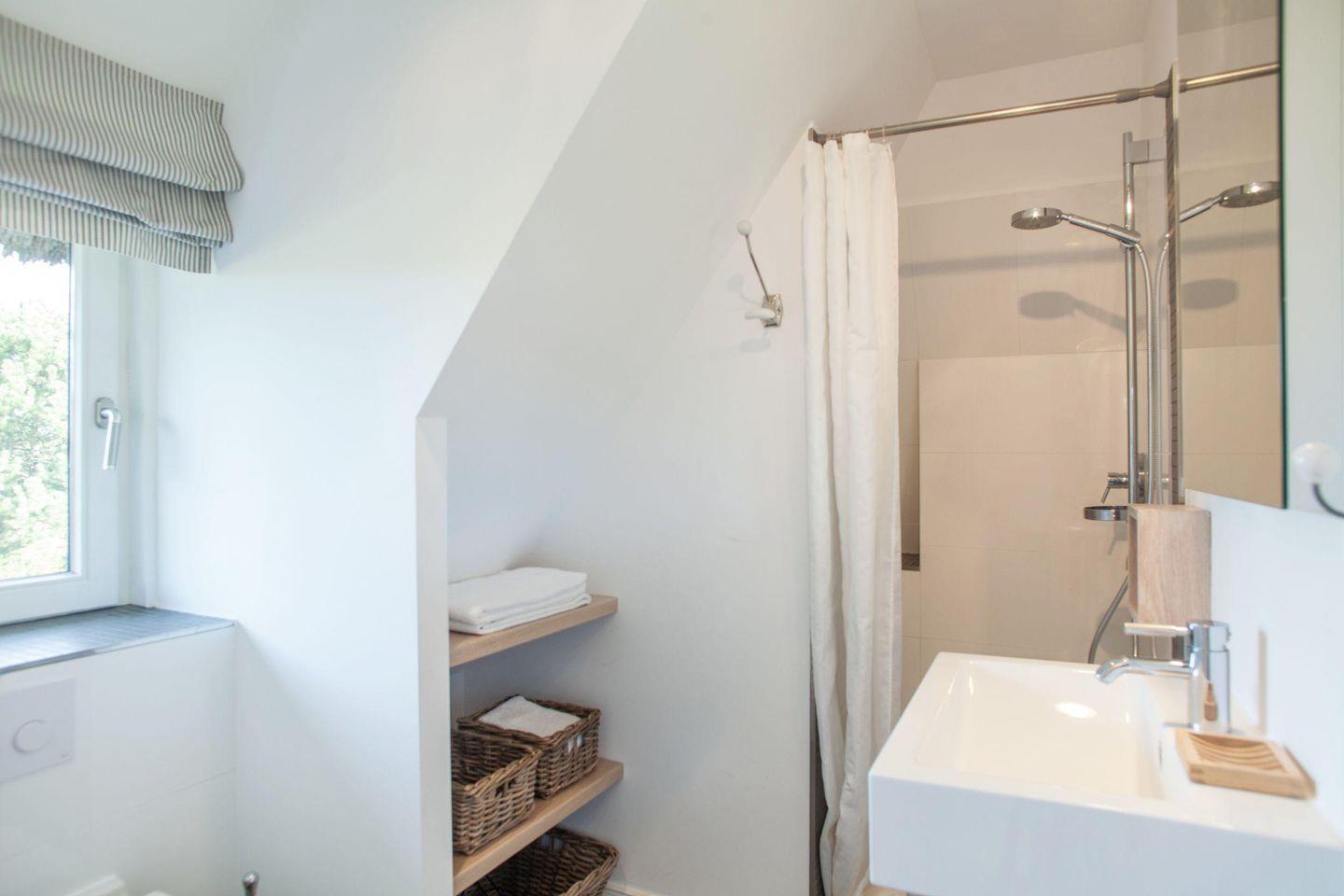 Über eine Wendeltreppe erreichen Sie zwei Schlafräume (jeweils Doppelbett) und das Duschbad.