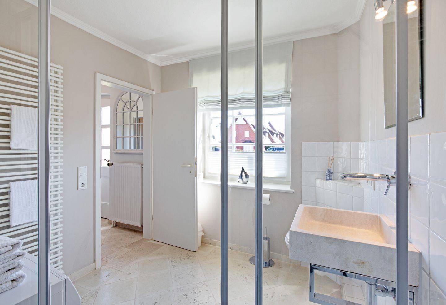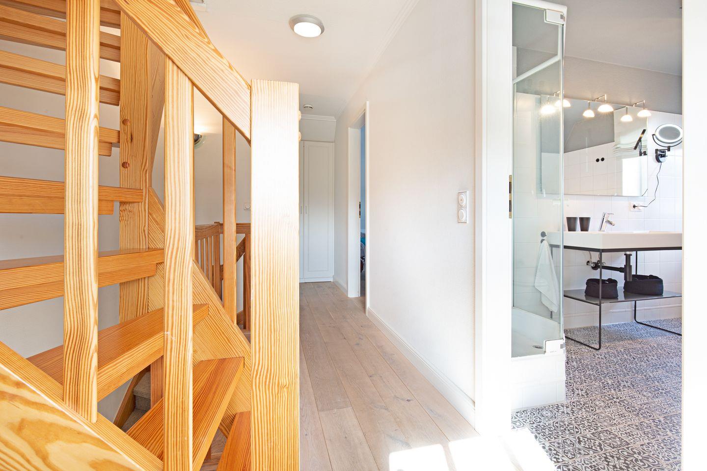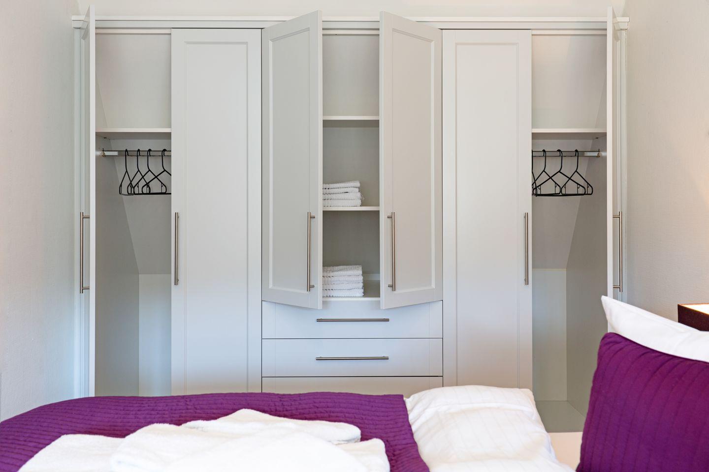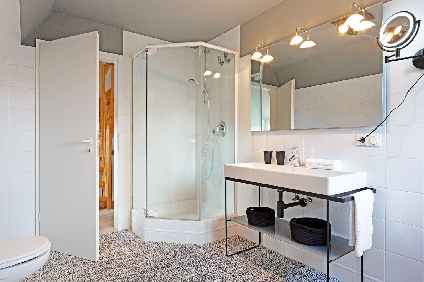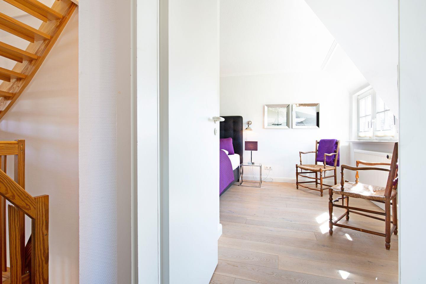 Im ersten Stock befindet sich ein Badezimmer mit Dusche und Badewanne und zwei Schlafzimmer, jeweils mit Doppelbett. Im zweiten Stock befindet sich weiteres Schlafzimmer mit zwei Einzelbetten. Ein zusätzliches Bad mit Dusche befindet sich im EG.