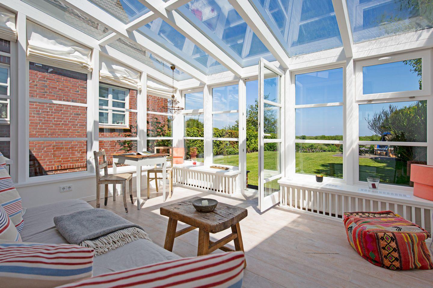 Das stilvolle Ferienhaus Hyggebo in List bietet Komfort, Wintergarten und Naturblick für entspannte Familienferien.